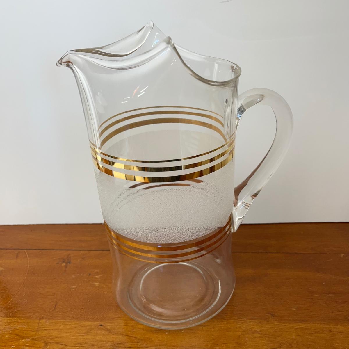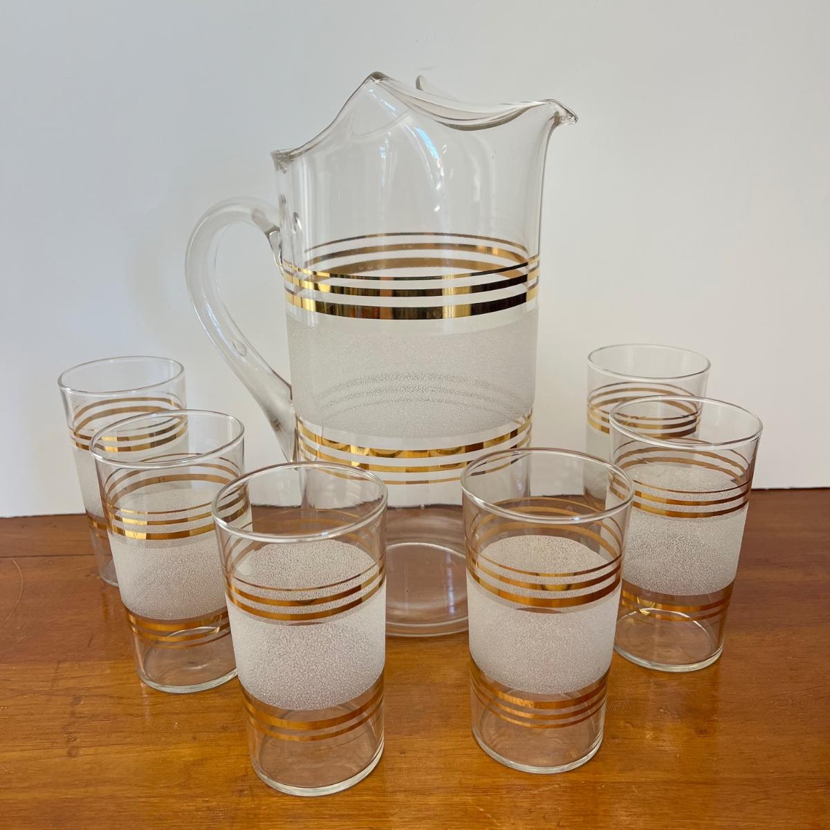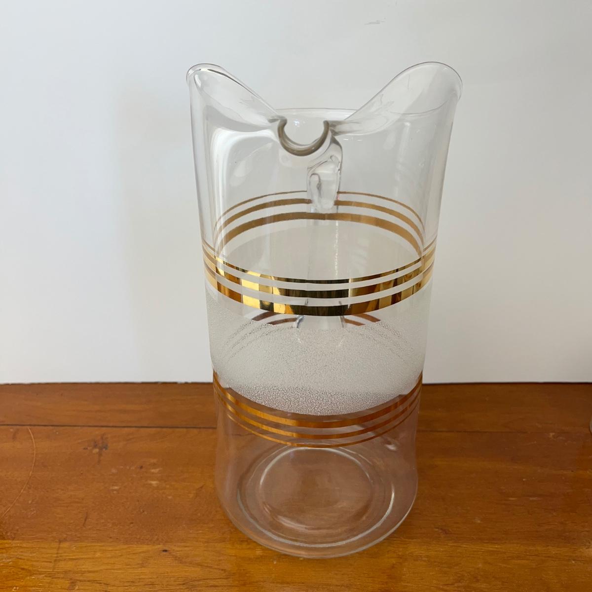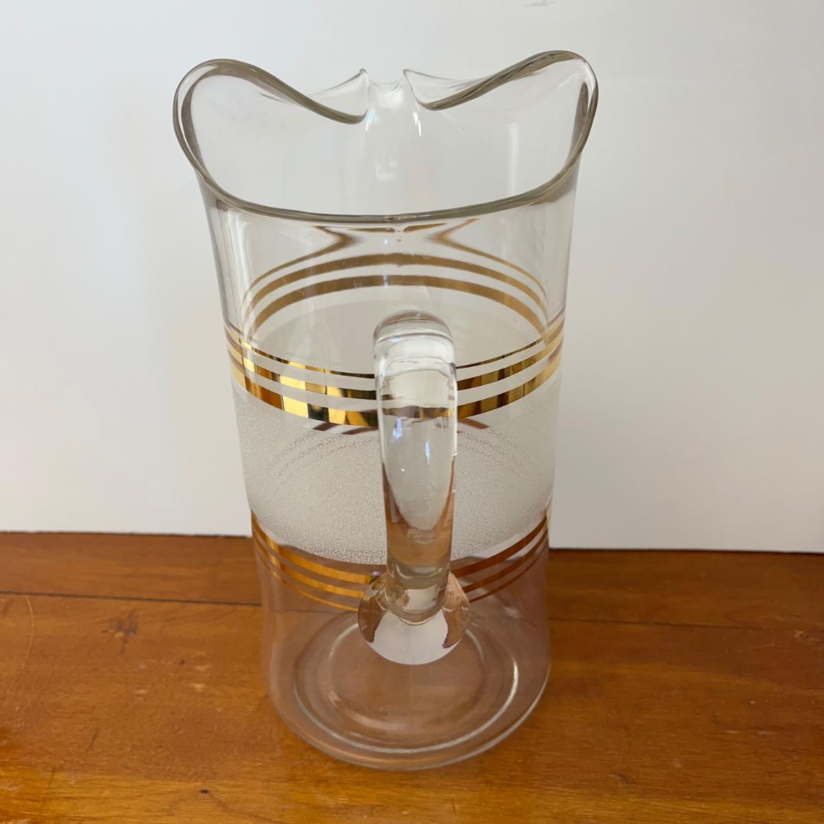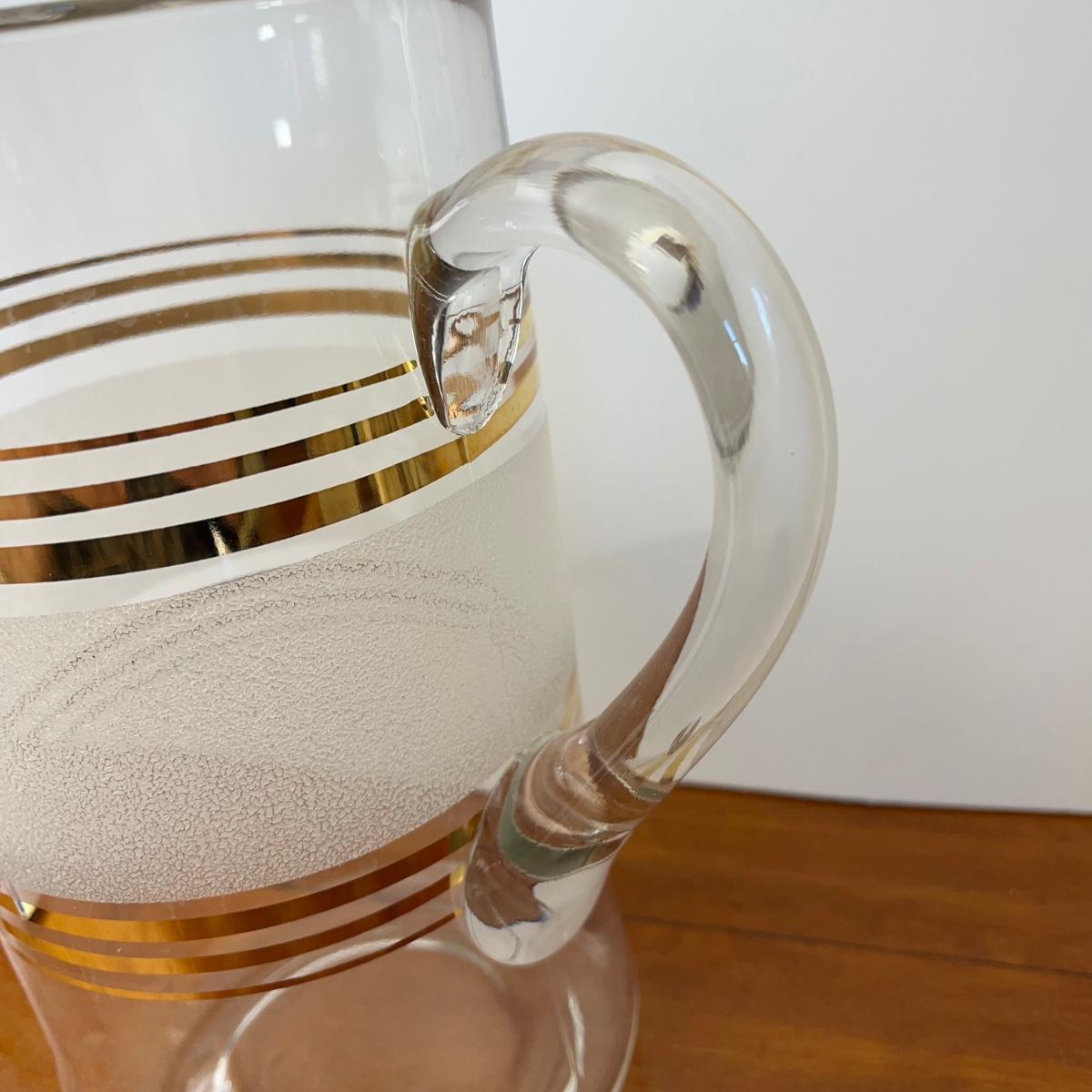 LOT 29L: Vintage Mid-Century Modern Gold Accented and Frosted Glass Pitcher & Glass Set MCM