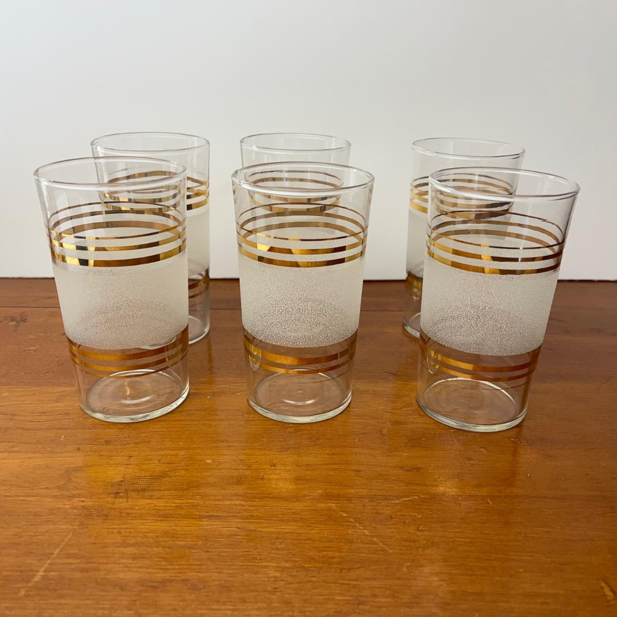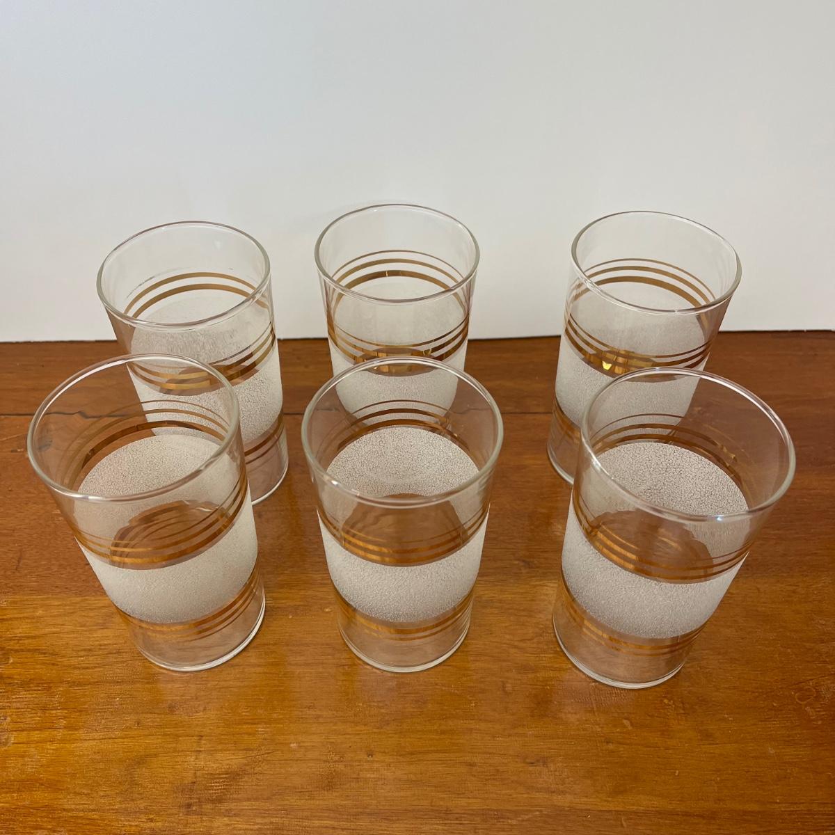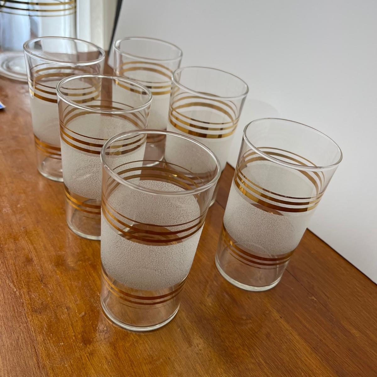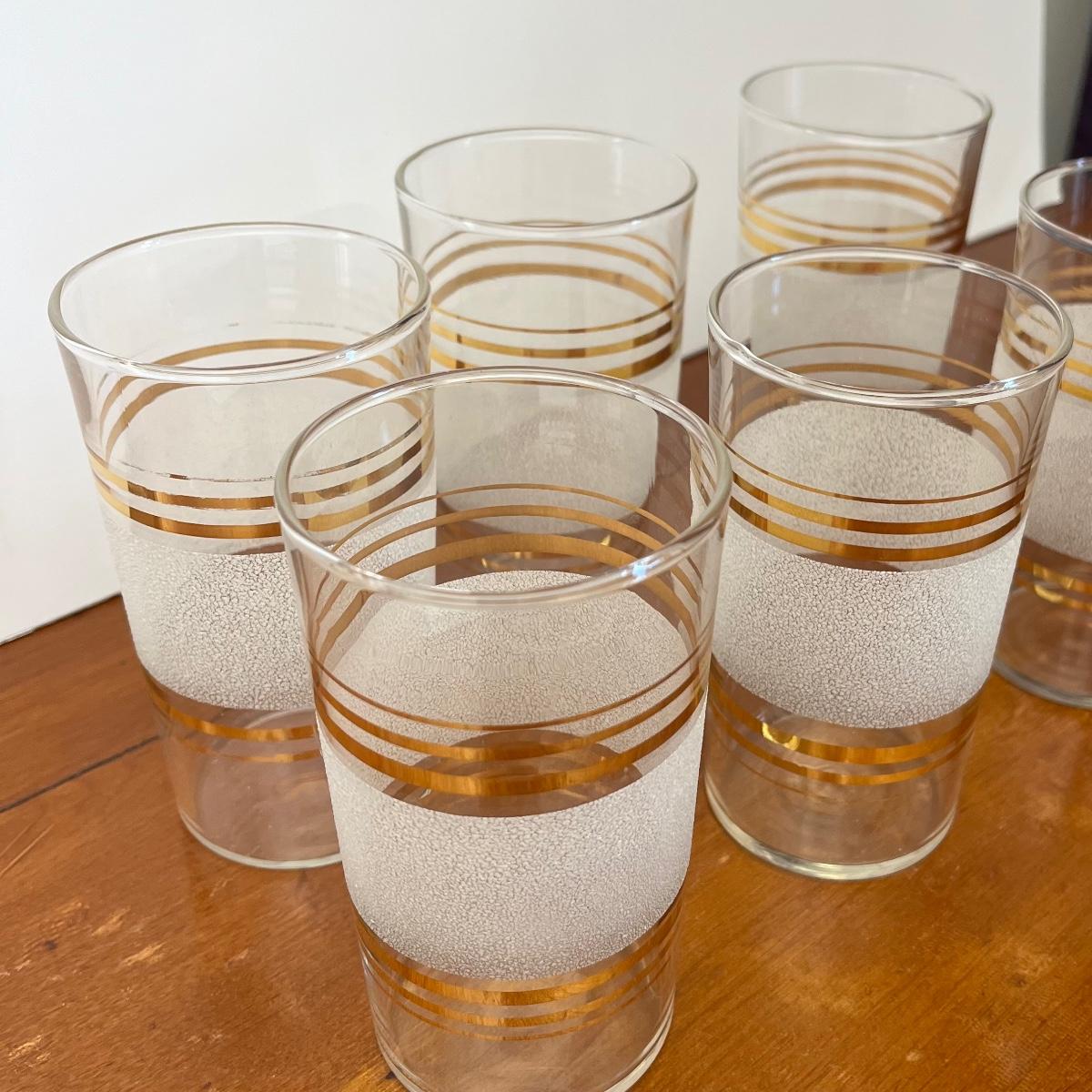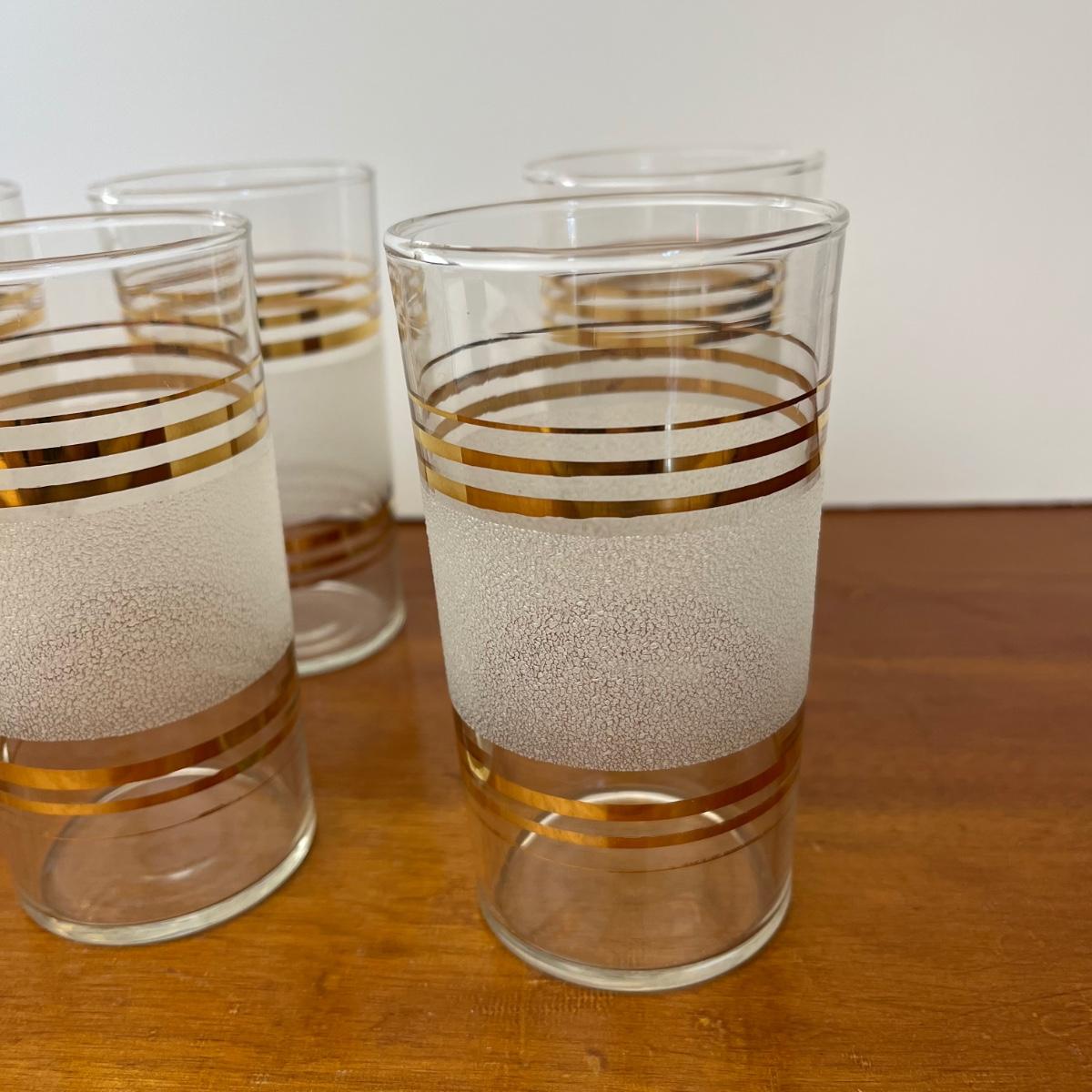 LOT 29L: Vintage Mid-Century Modern Gold Accented and Frosted Glass Pitcher & Glass Set MCM
