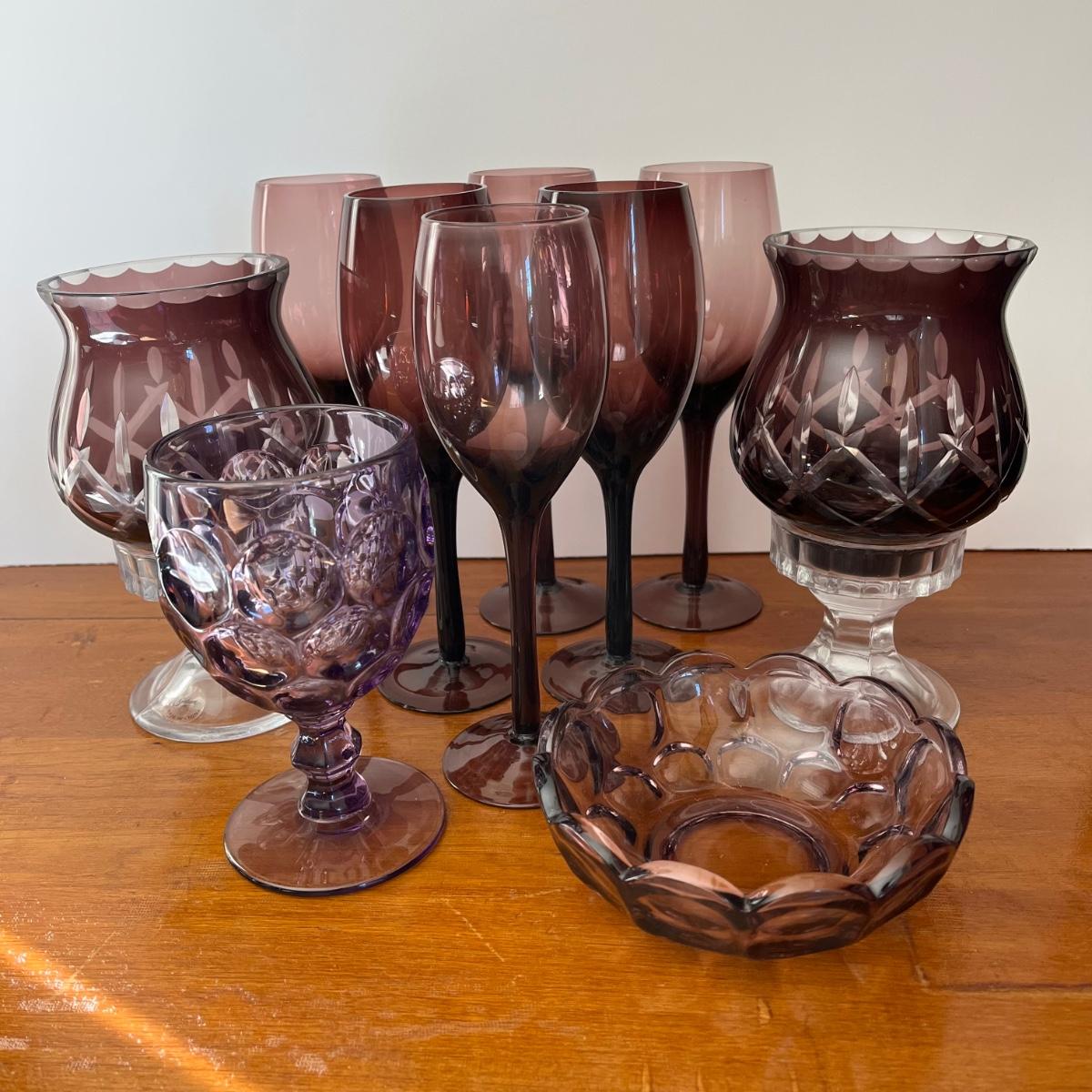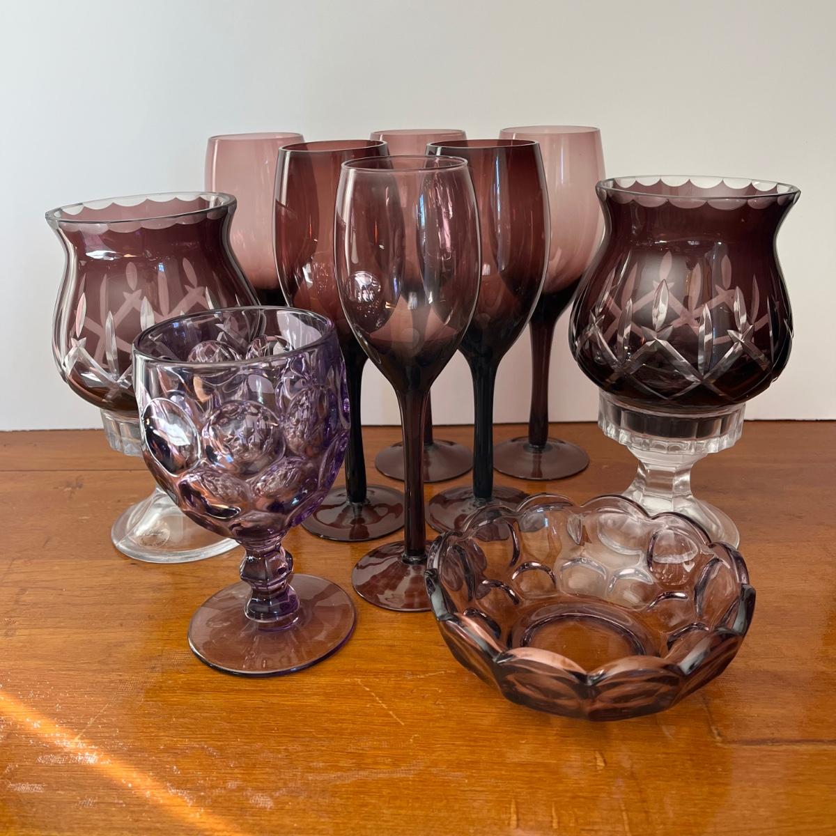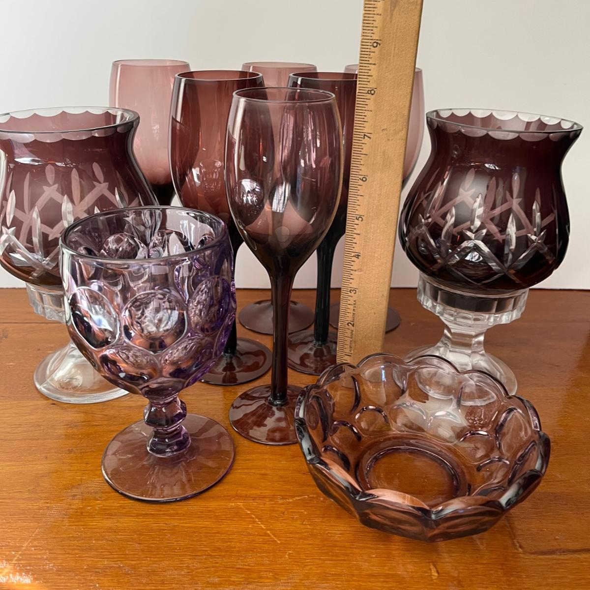 LOT 31L: Purple Glass Home Decor - Stemware, Candle Holders