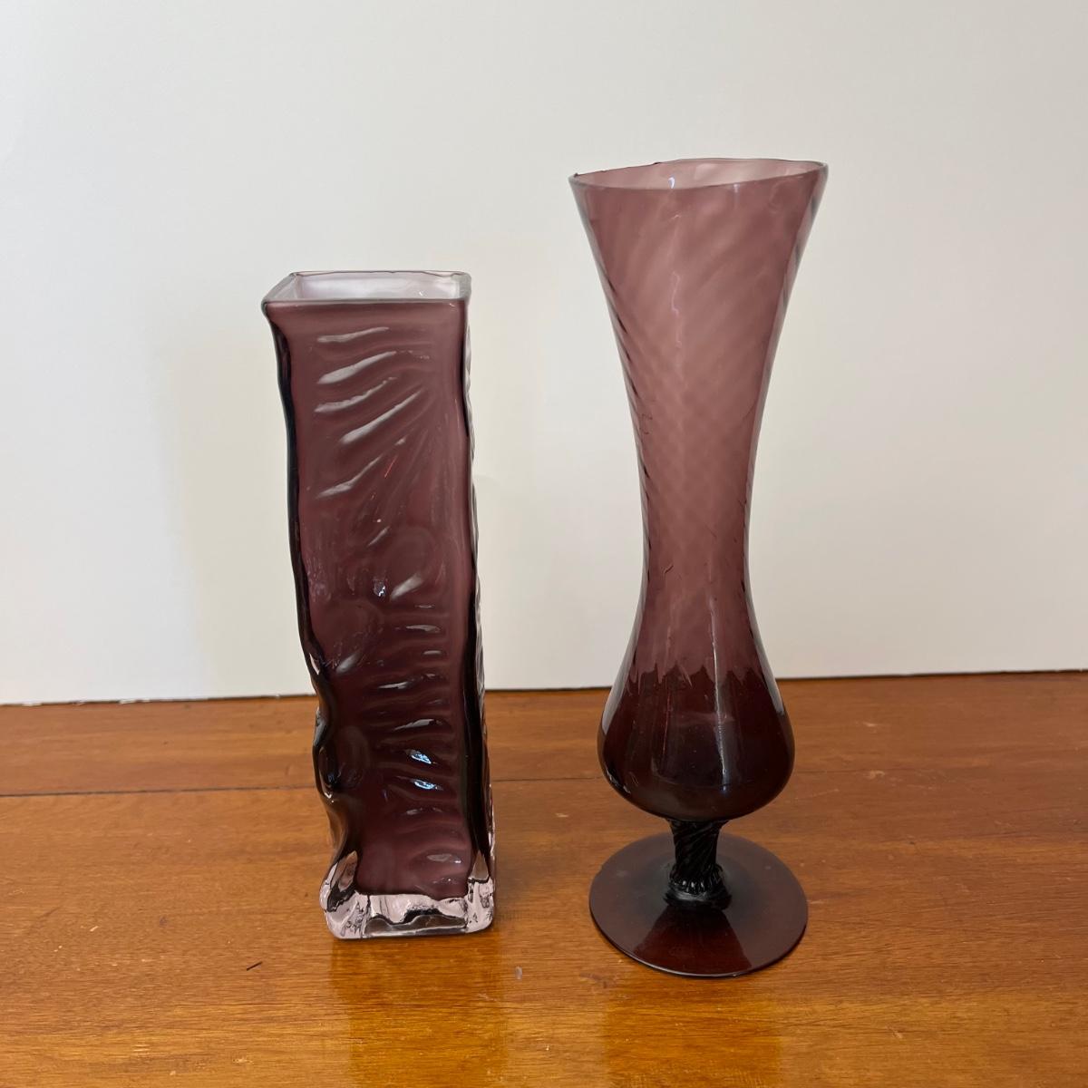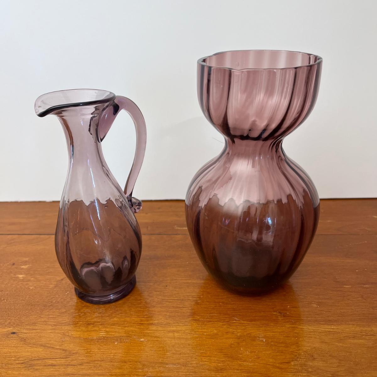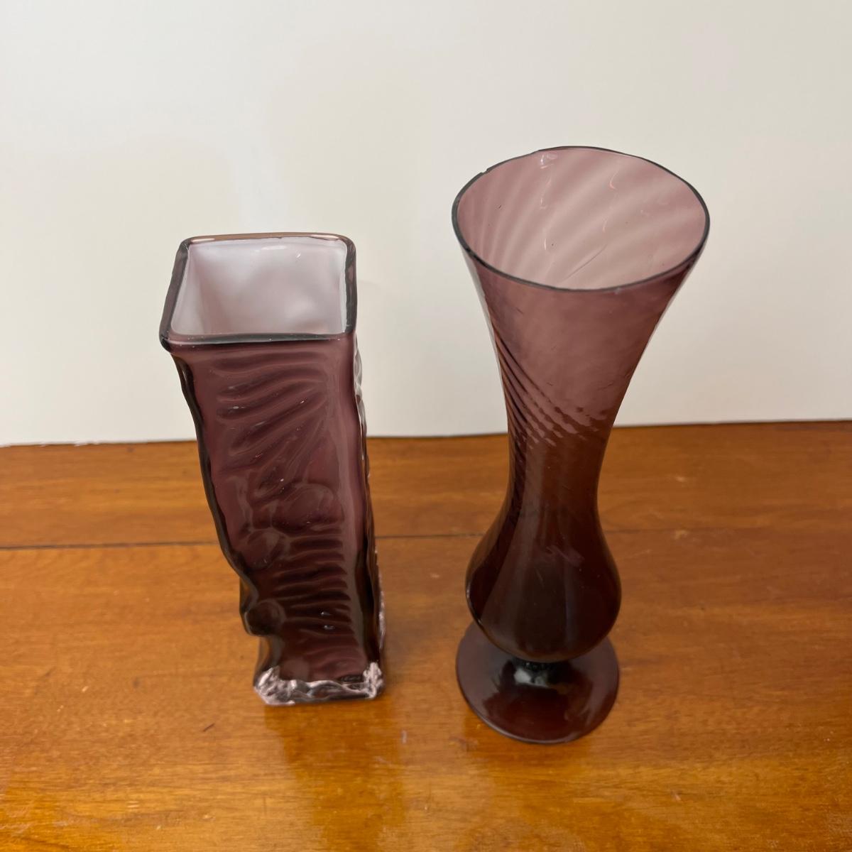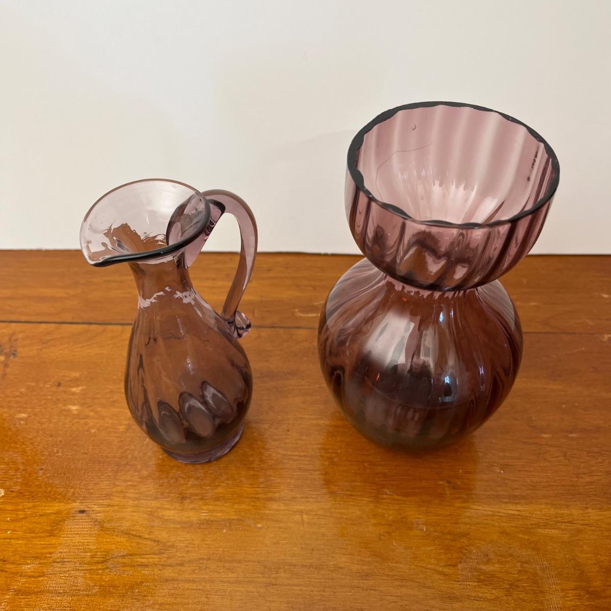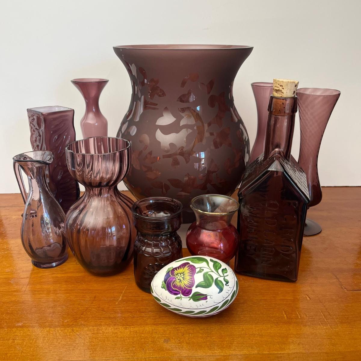 LOT 38L: Purple Glass Home Decor - Vases, Wheaton Bottle