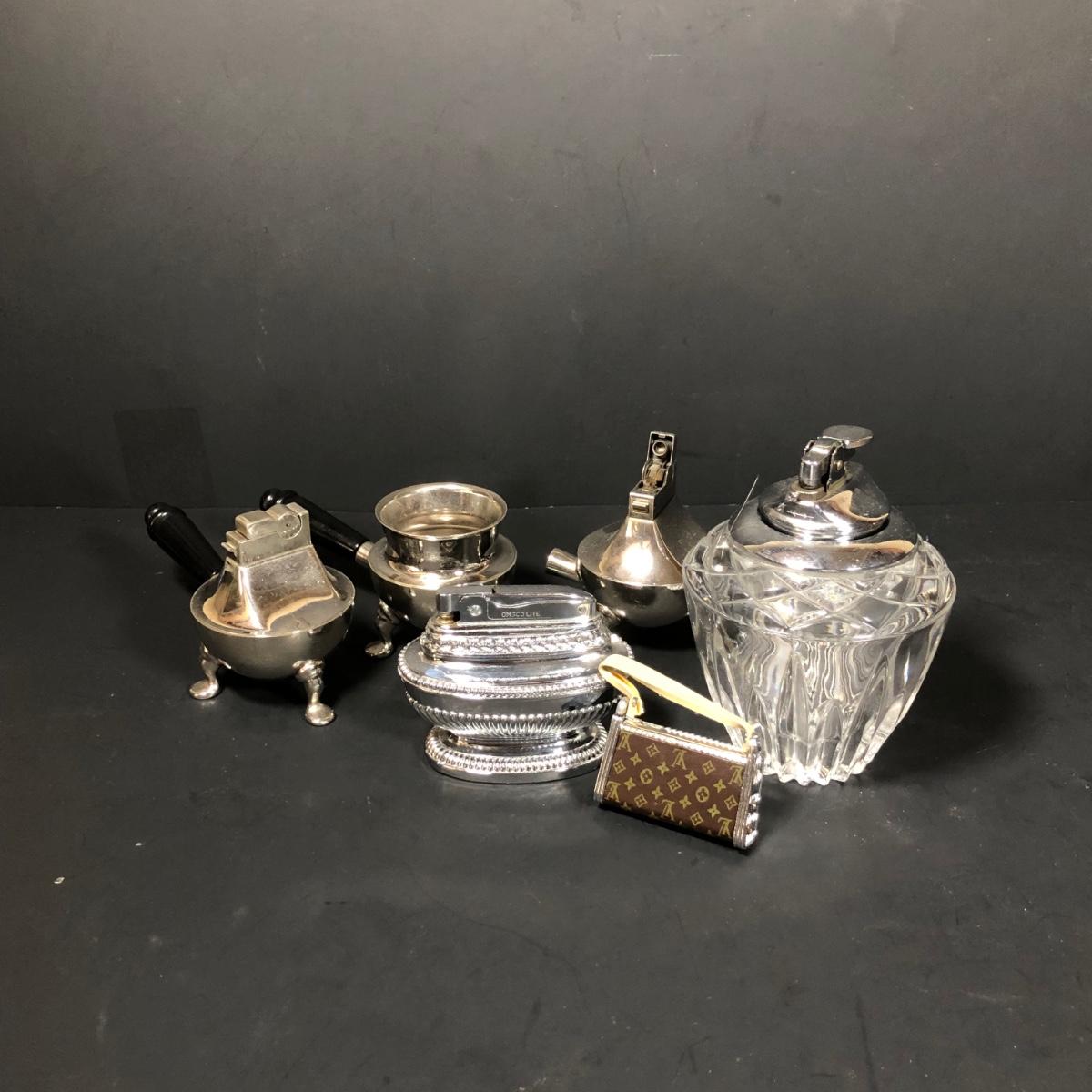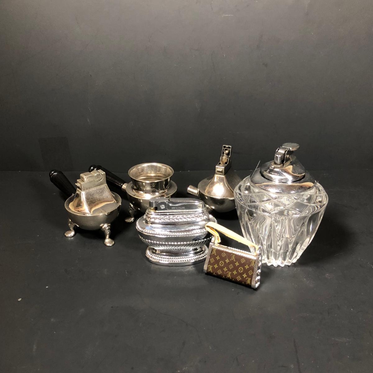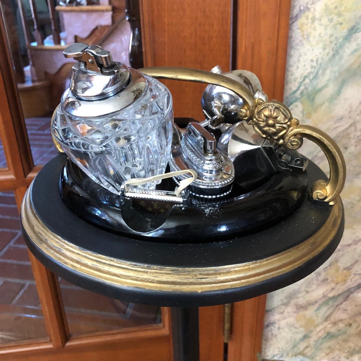 LOT 63L: Vintage Ash Tray Stand w/ Vintage Lighters - Omscolite, Crystal, Louis Vuitton, ASR & More
