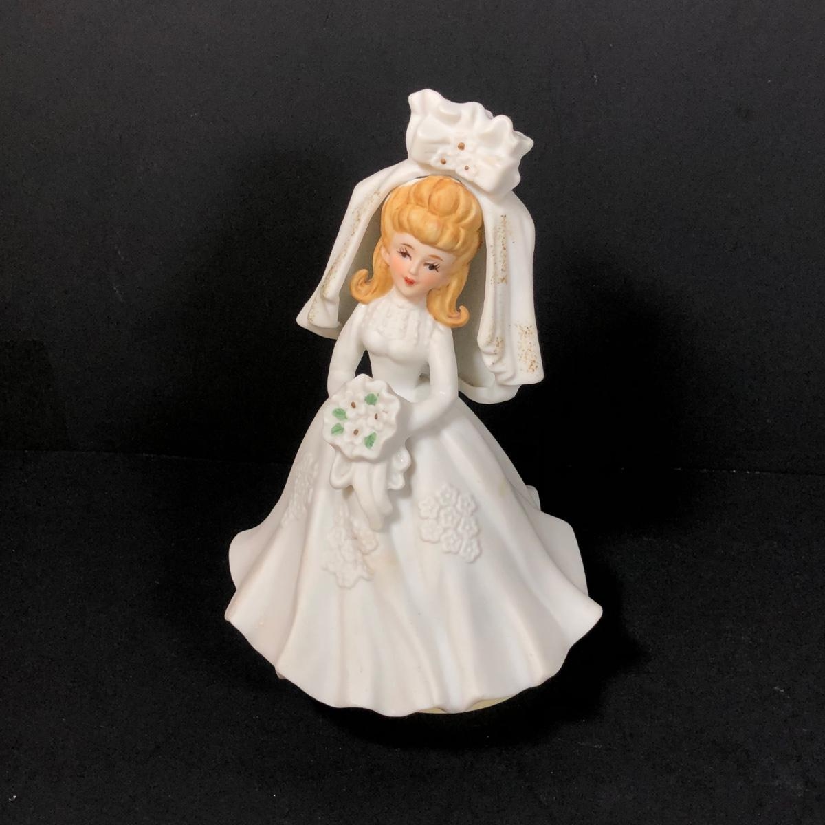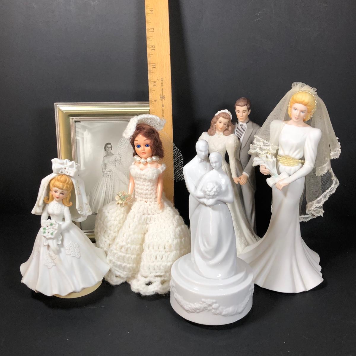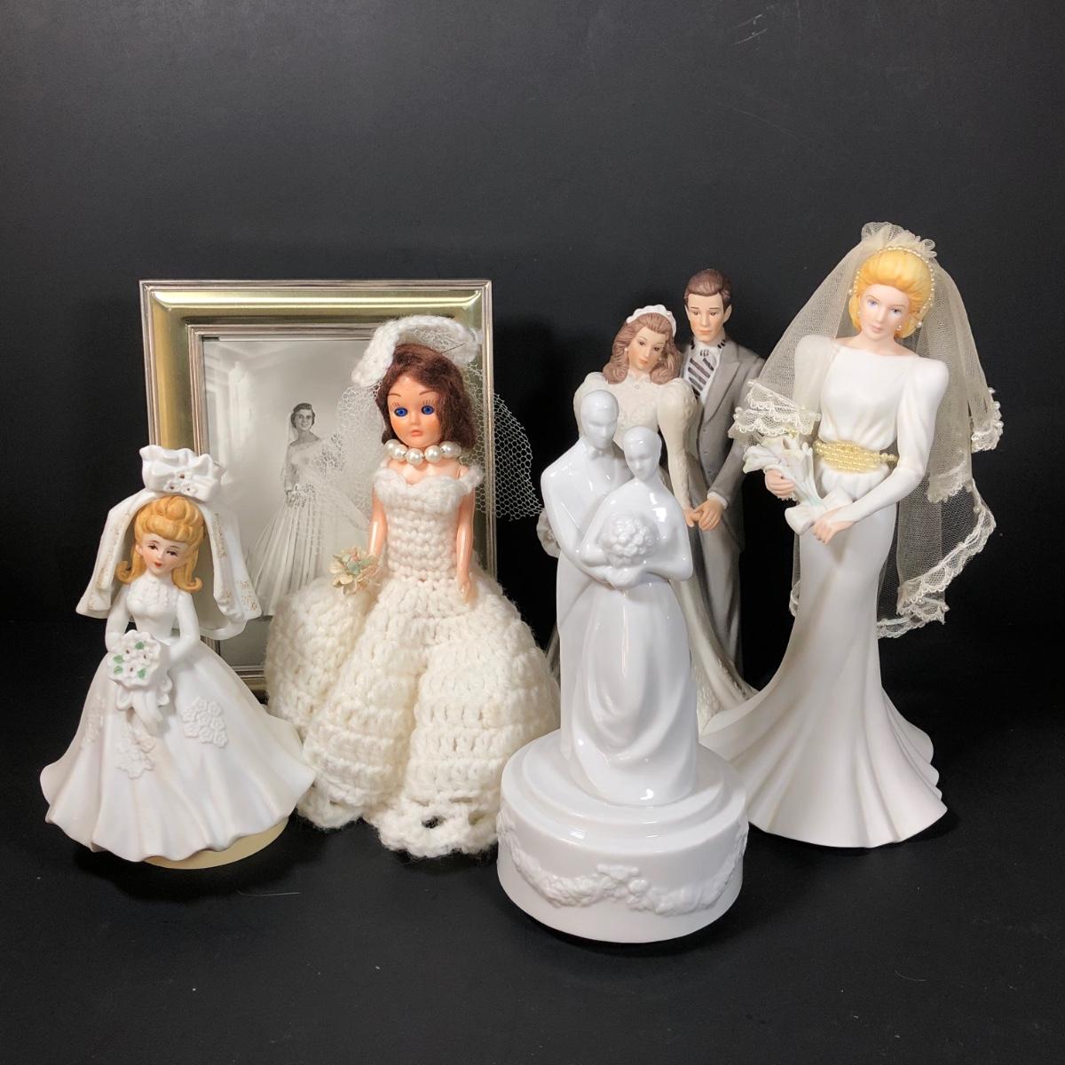 LOT 66K: 1988 EHW Classic Brides of the Century Margaret (1940s Bride #415/5000), Hallmark Bride & Groom Musical Figure, Vintage Bride Photo & Bride Doll