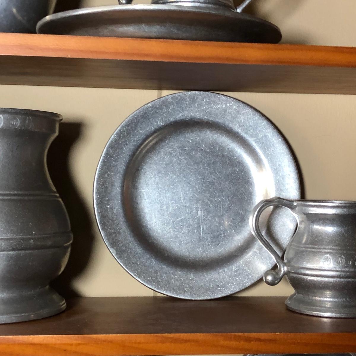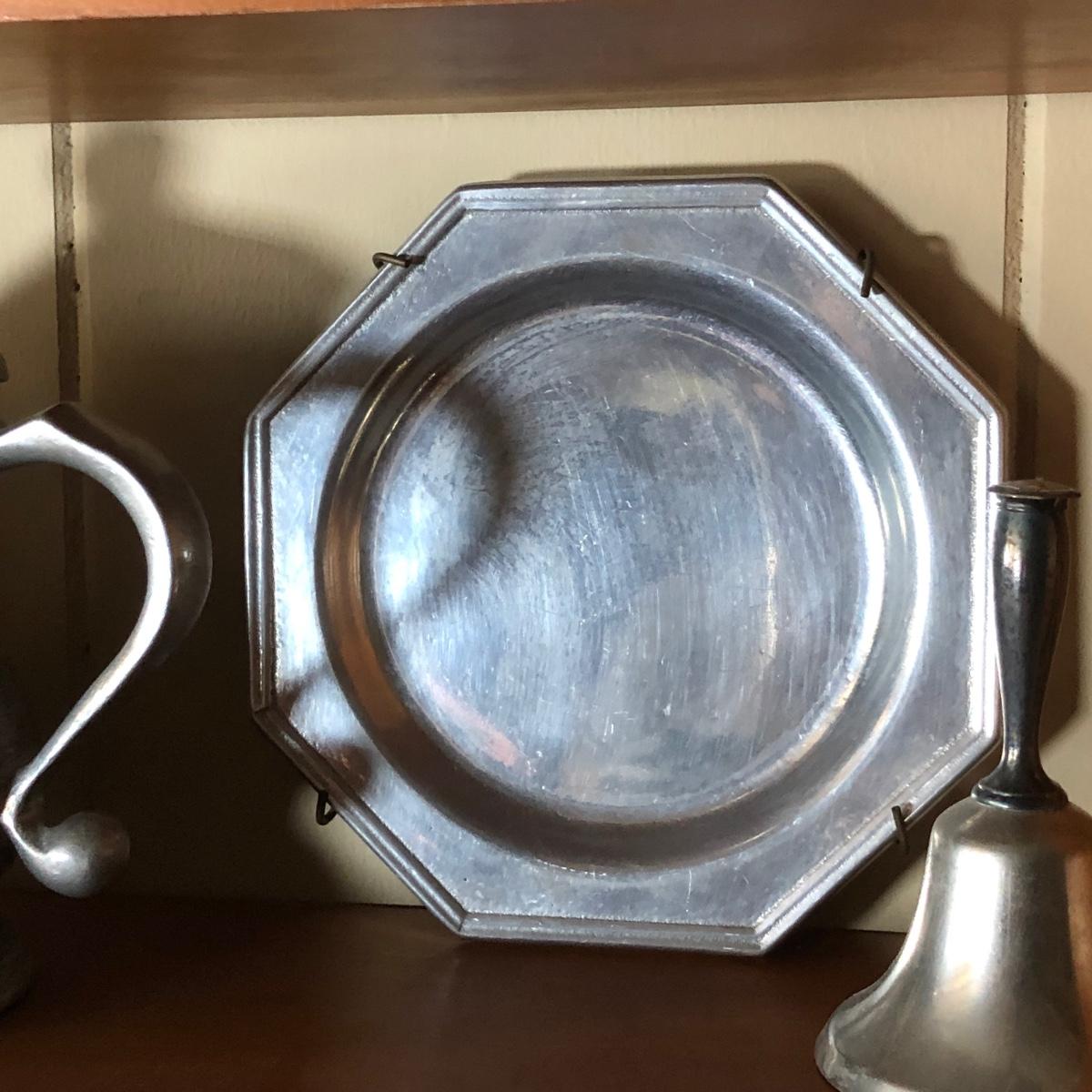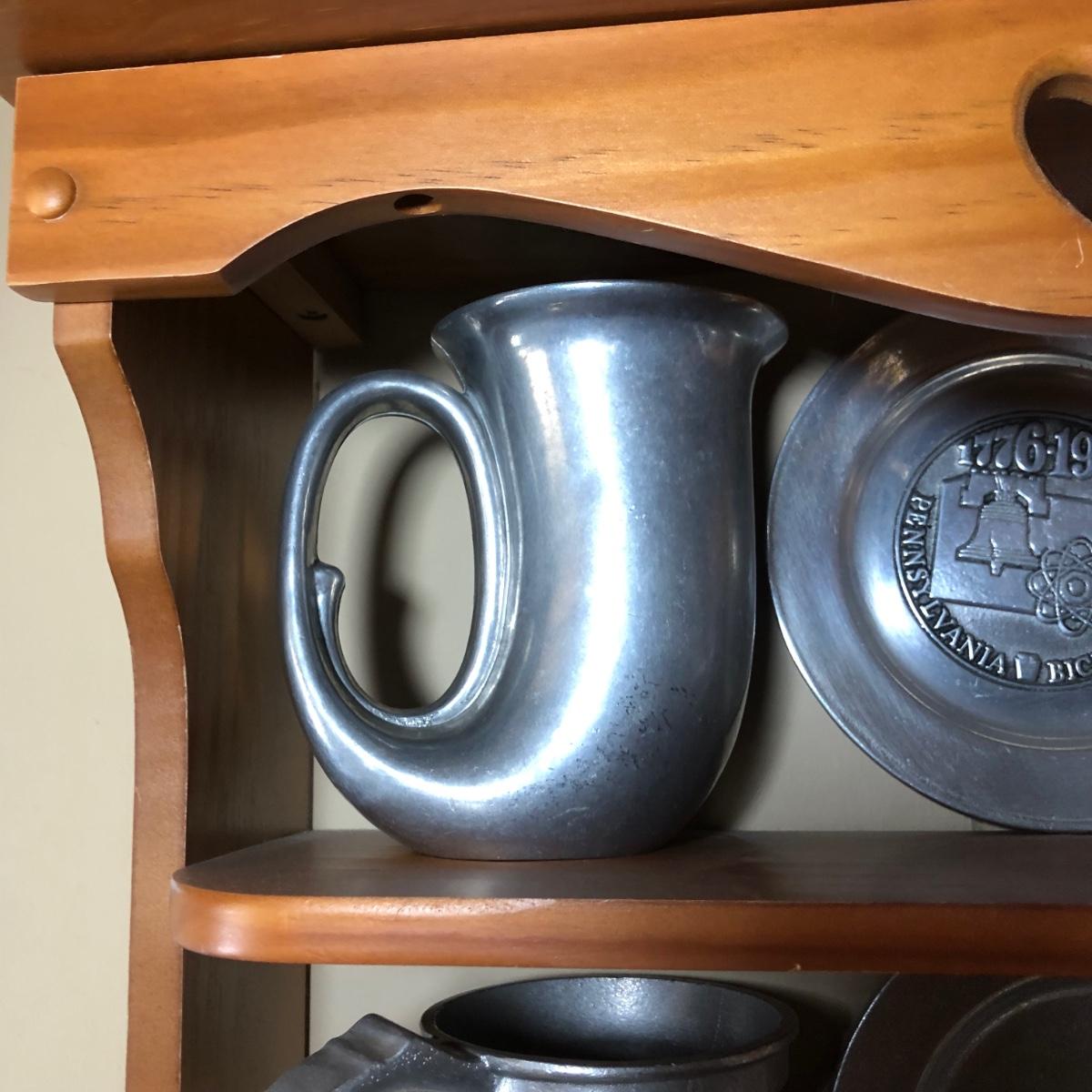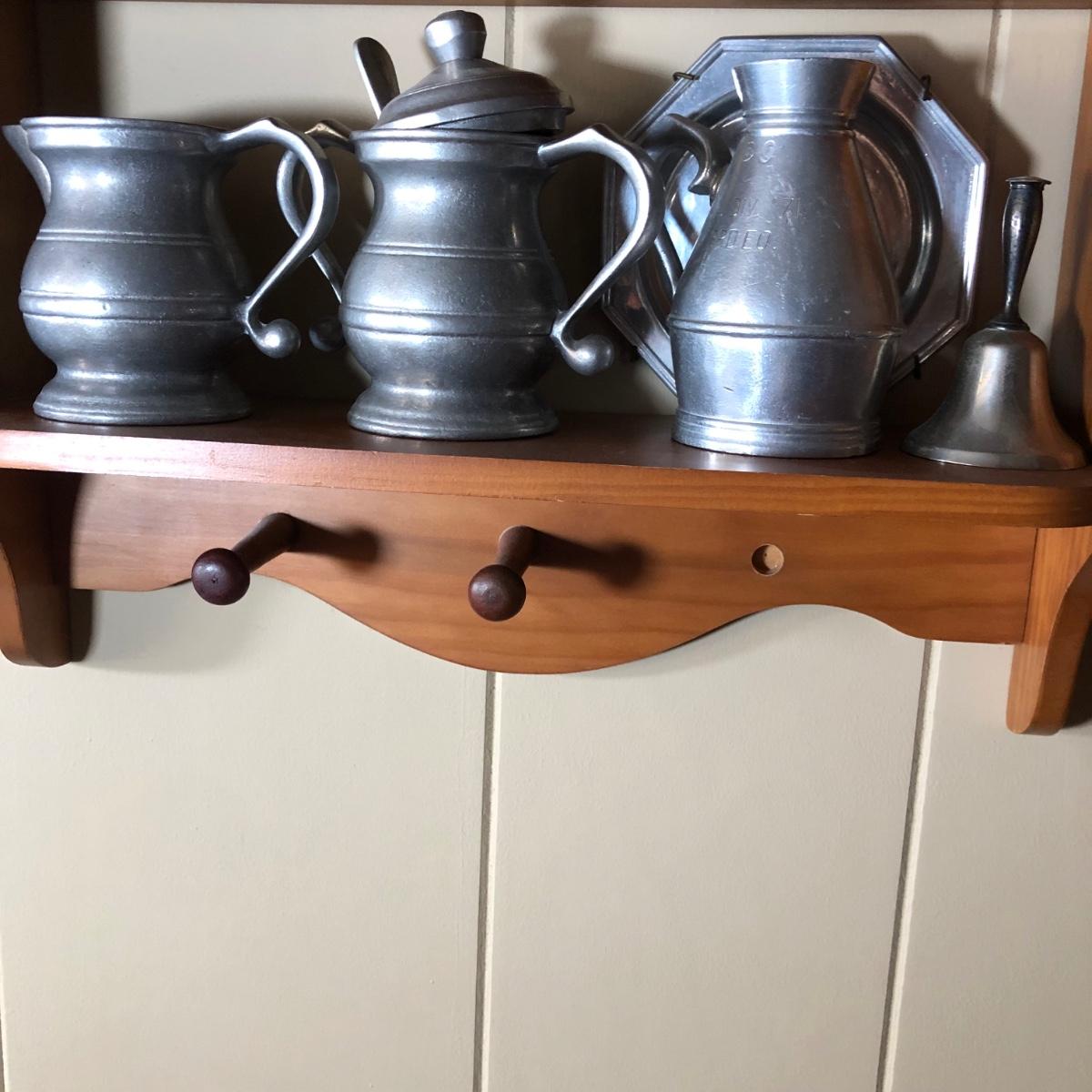 LOT 72F: Wooden Display Shelf w/ Metal Decor - Ourtale by Leonard (Italy), RWP, Bicentennial Plate & More