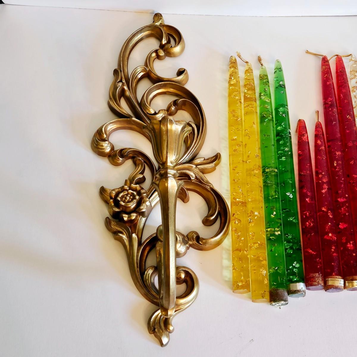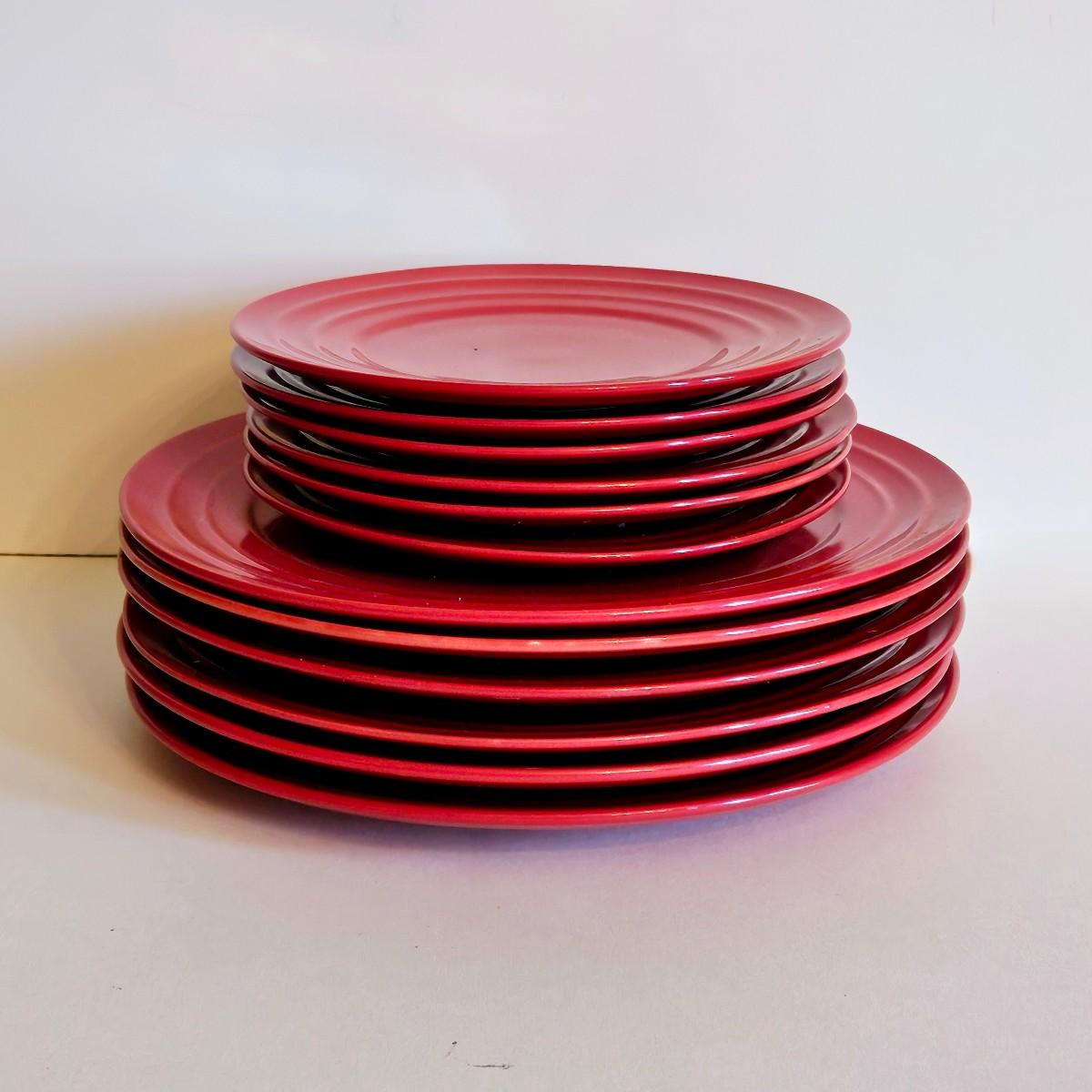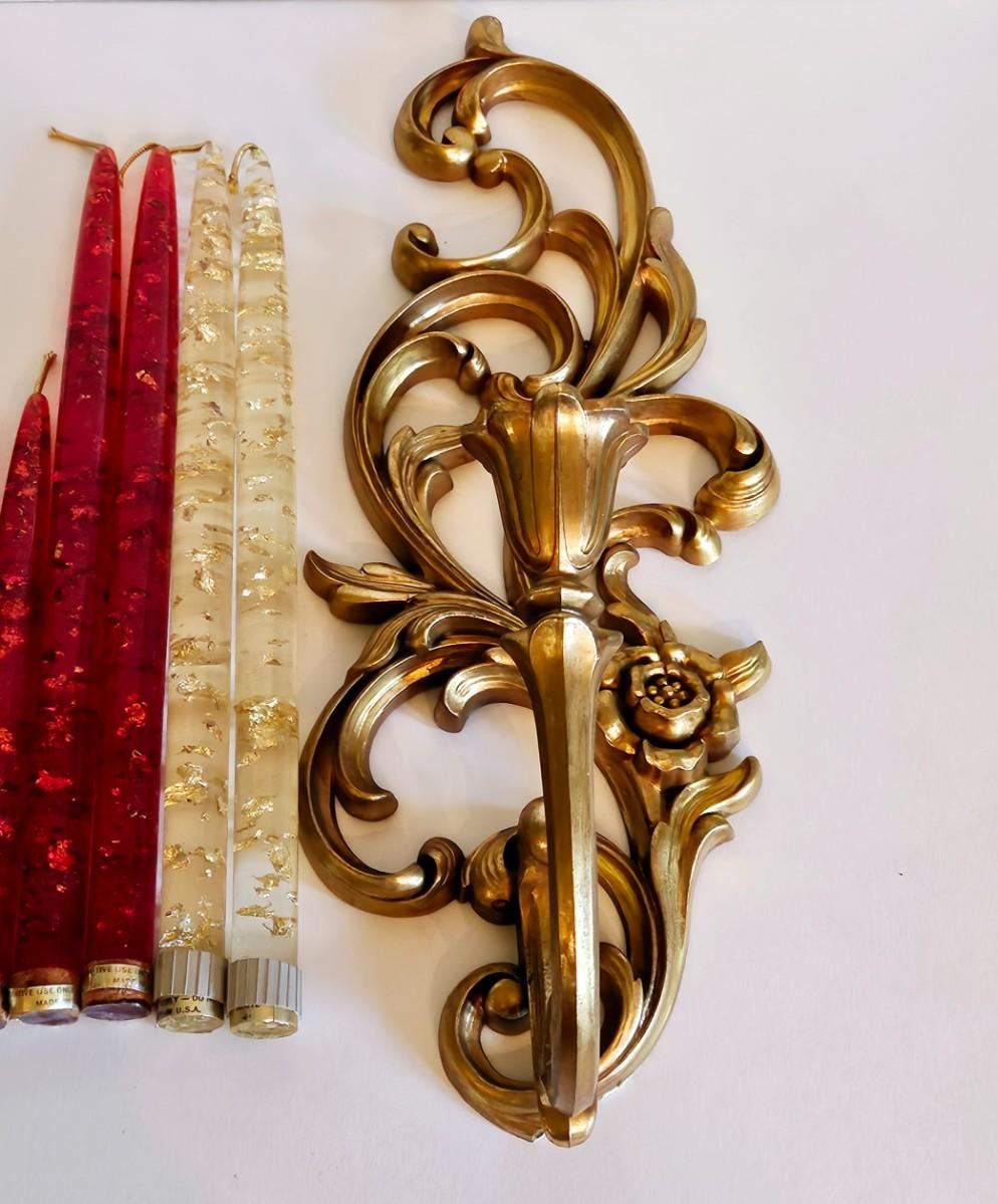 LOT 85D: Collection of Red Rachel Ray Plates, Glass Candle & Gold Plastic Sconces