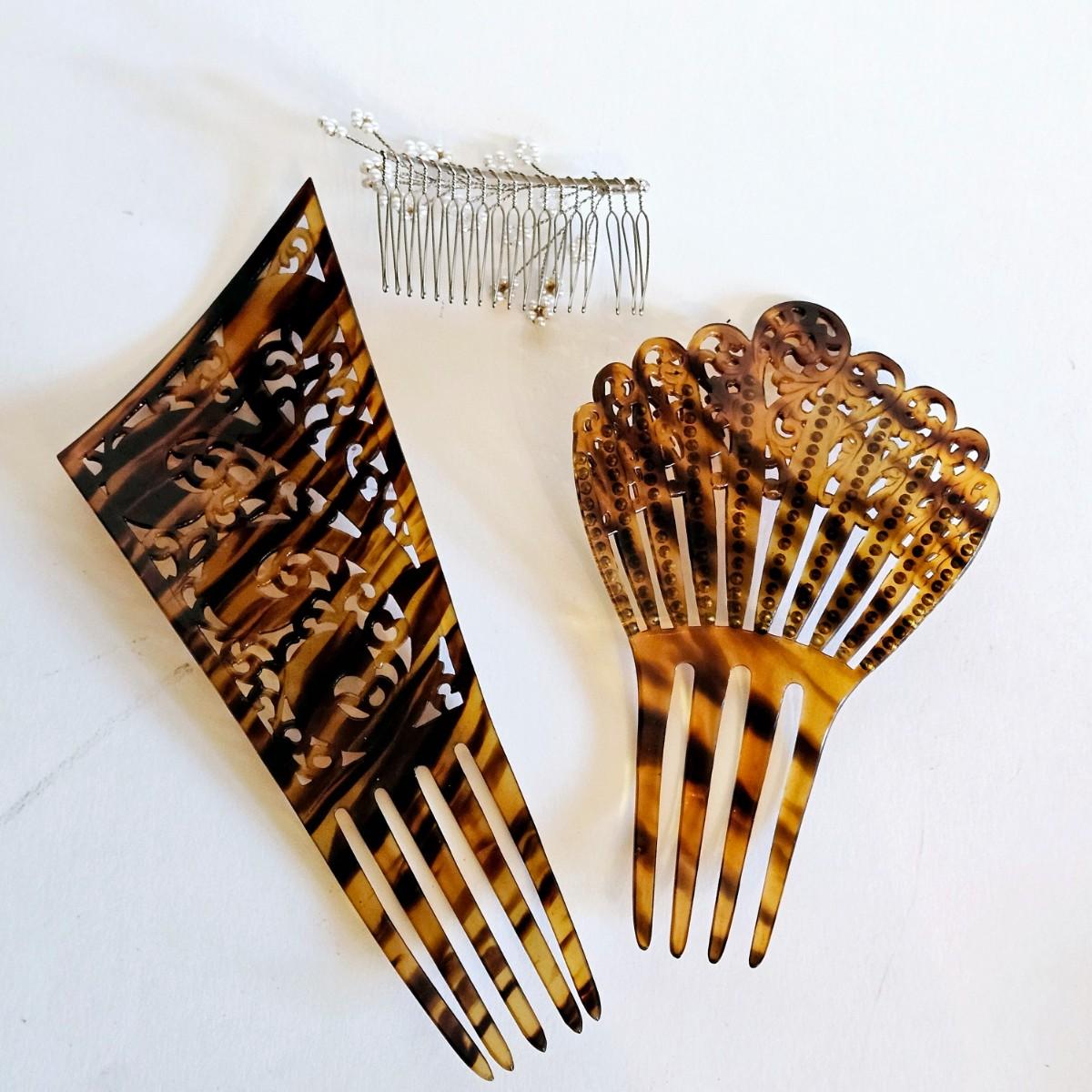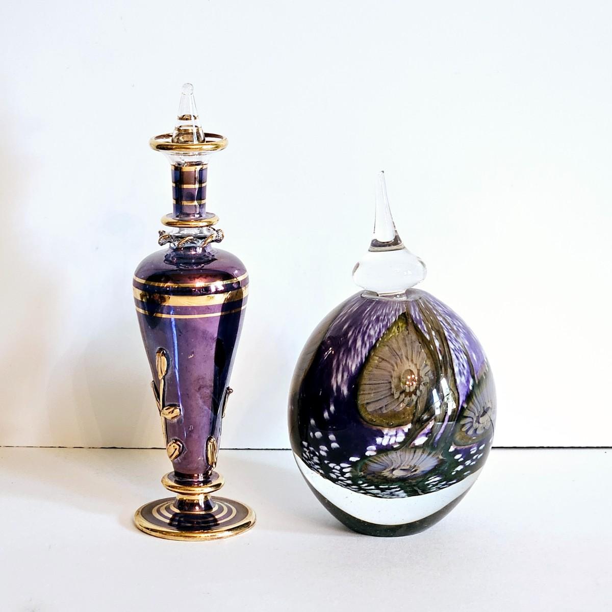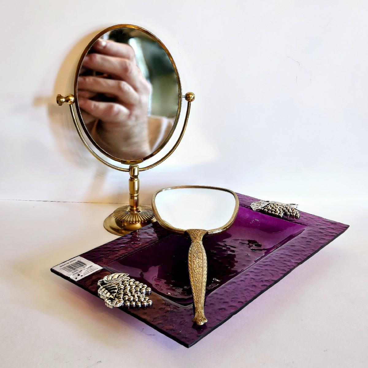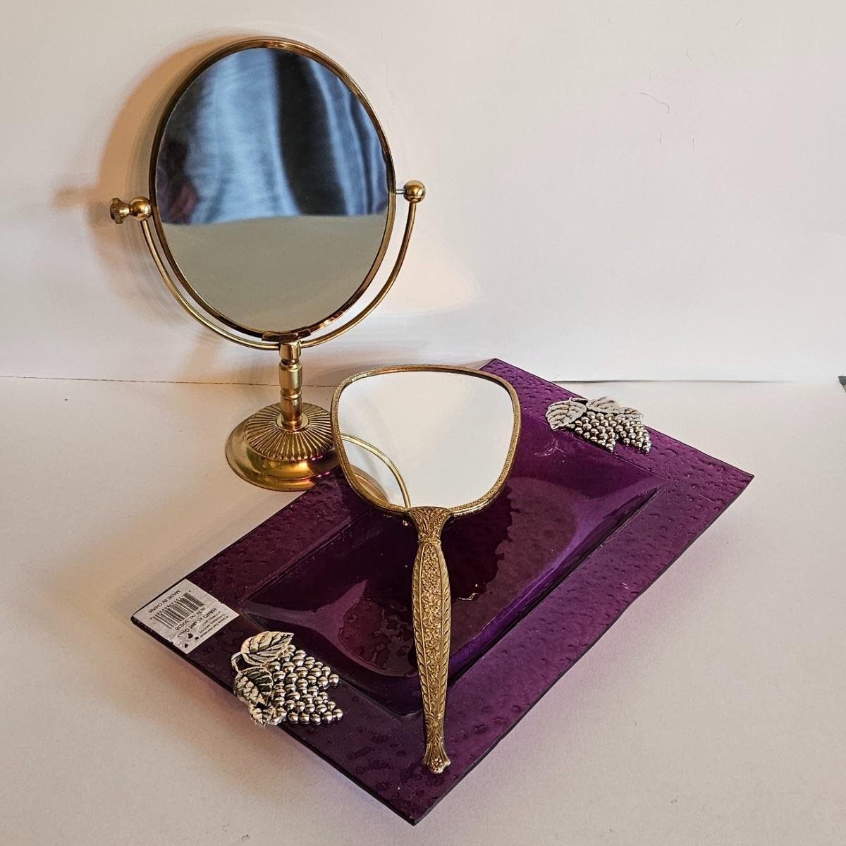 LOT 86D: Ladies Vanity: Art Glass Perfume Bottle, Christian Dior Perfume, Mirror, Hair Combs and More