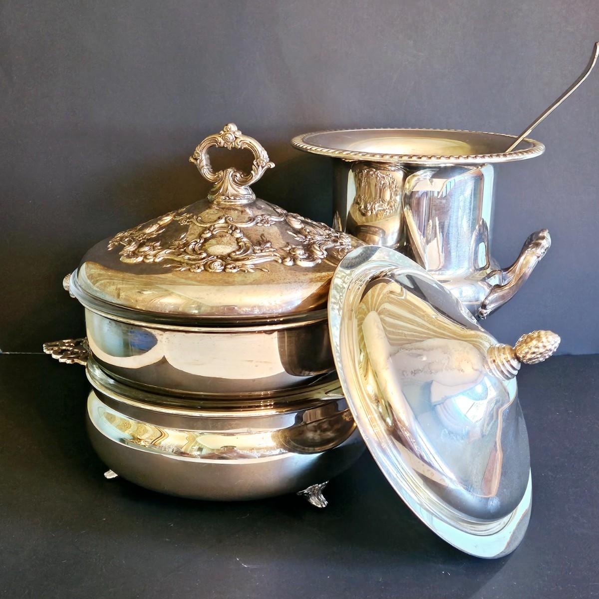 LOT 93D: Vintage Towle Silverplate Buffet Dishes w/ Glass Inserts