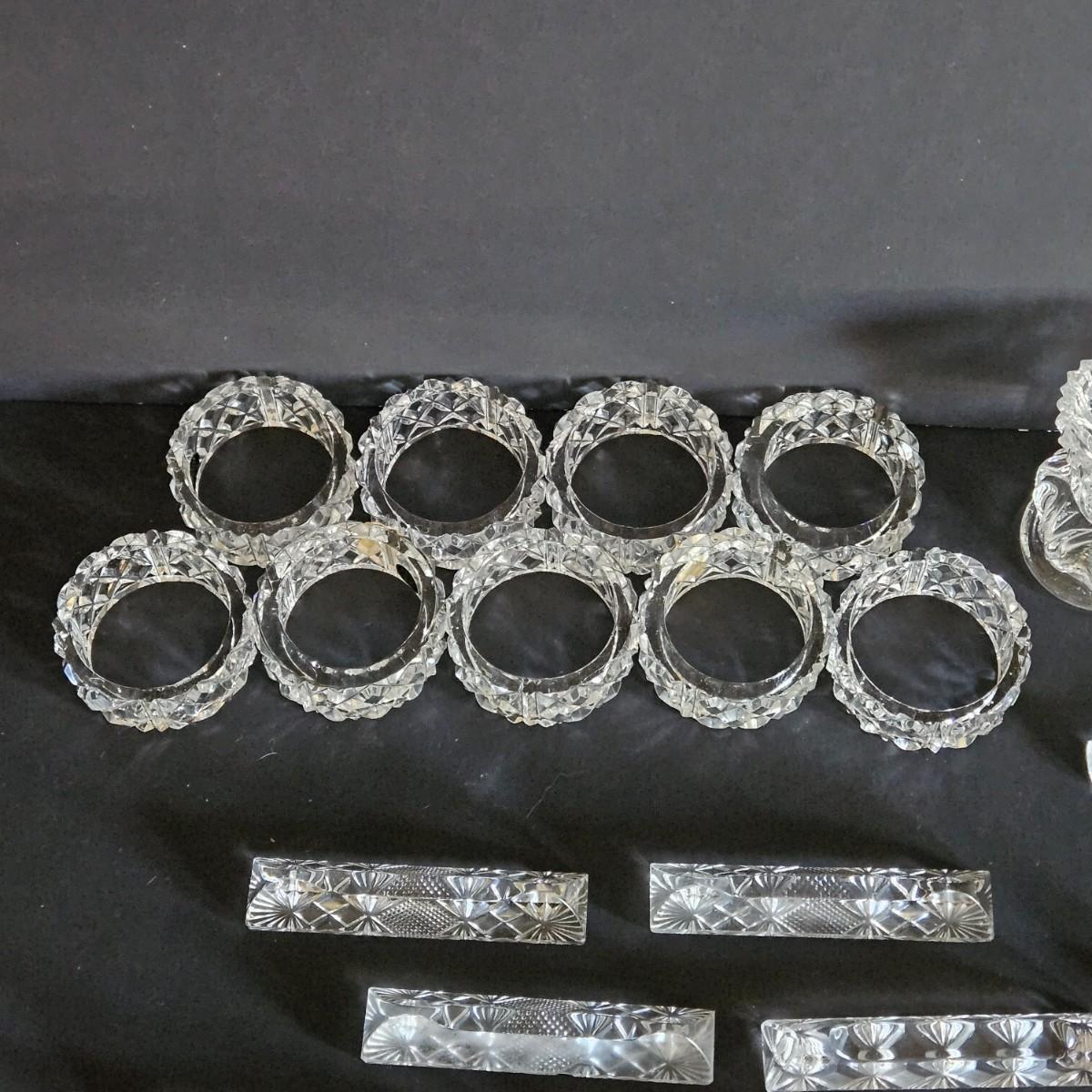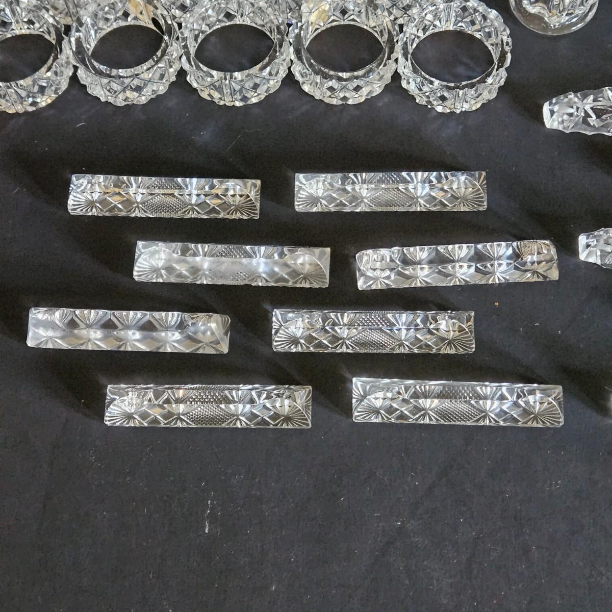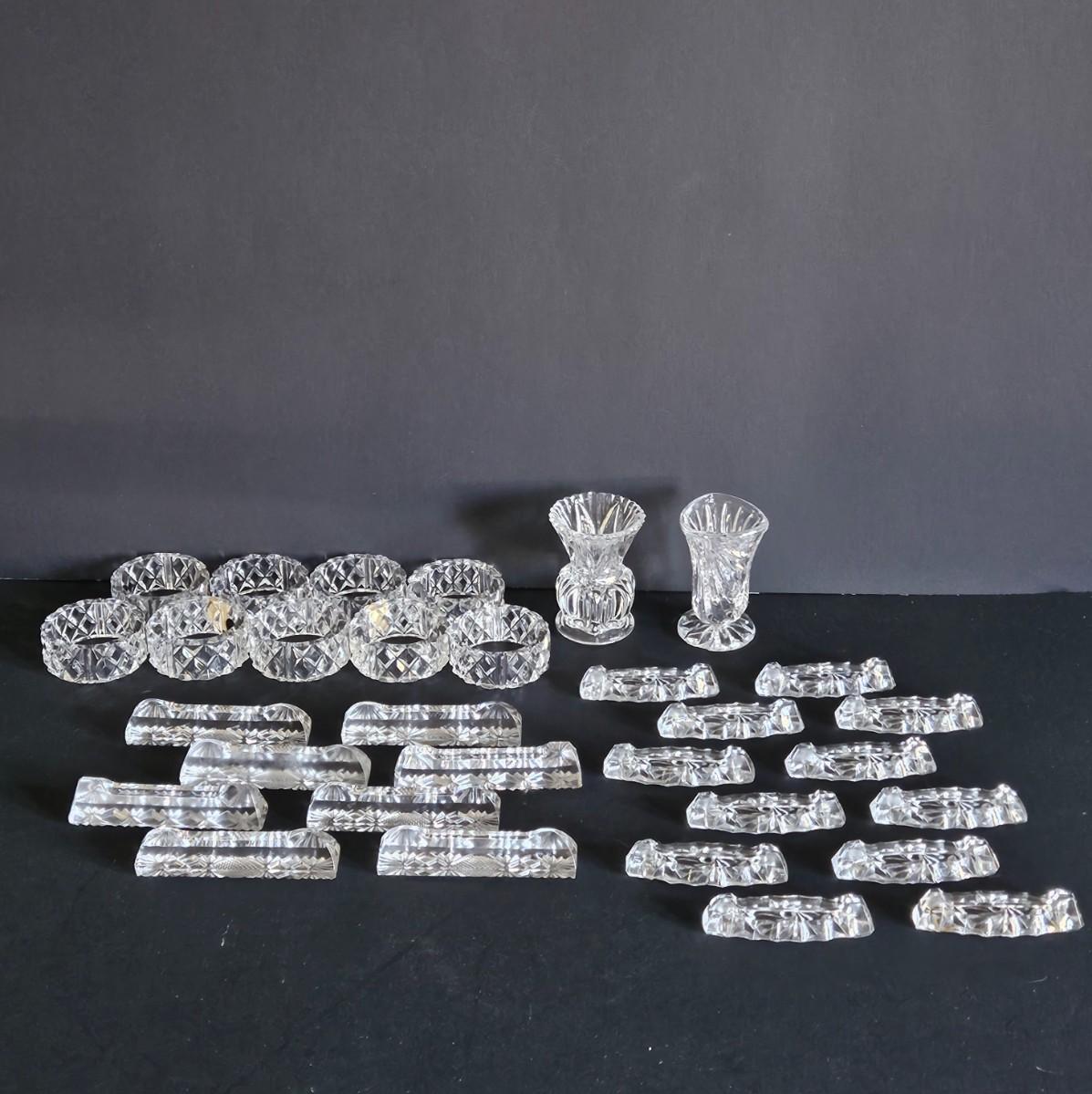LOT 107D: Collection of Cut Crystal Knife Rests, Golden Crown Napkin Rings & Toothpick Holders
