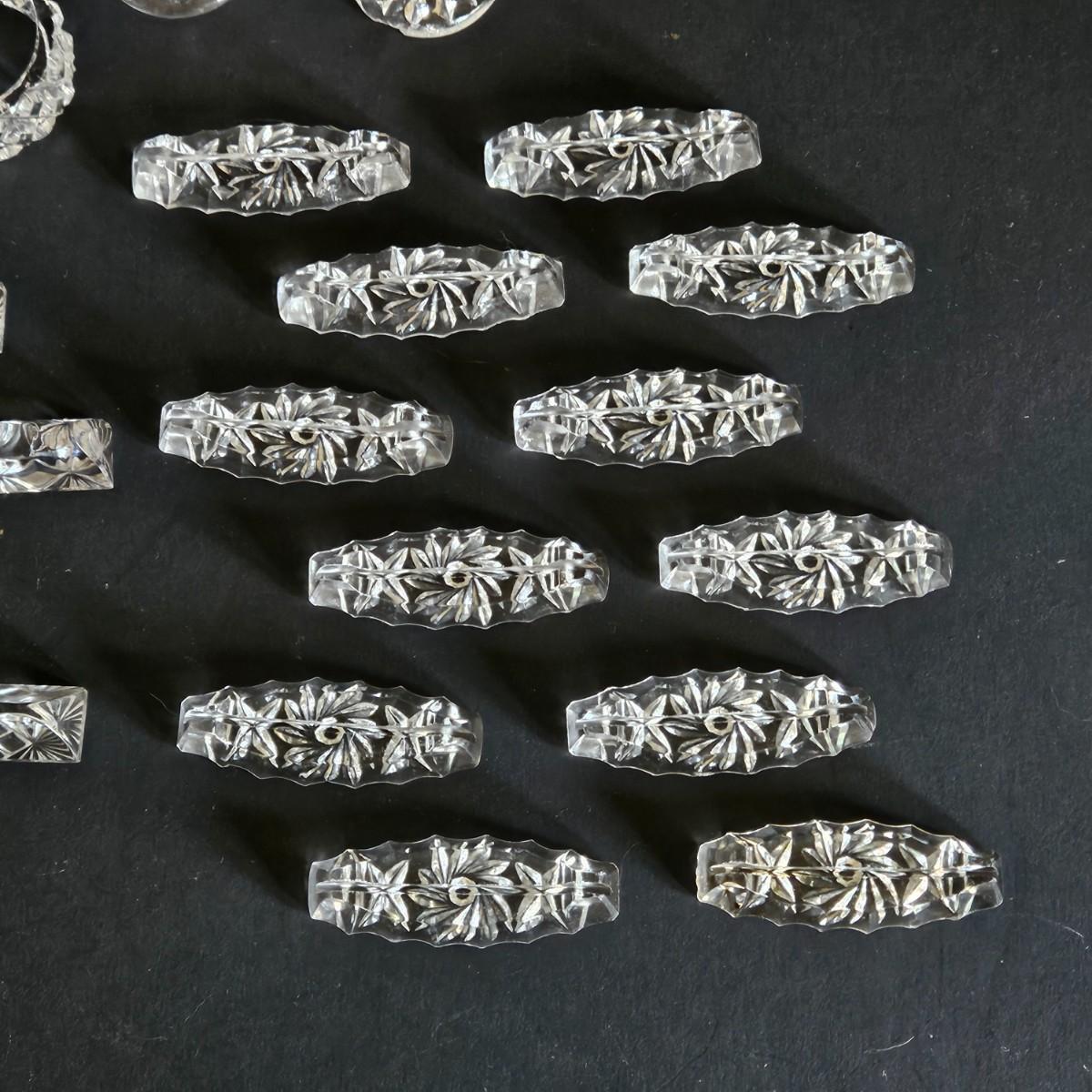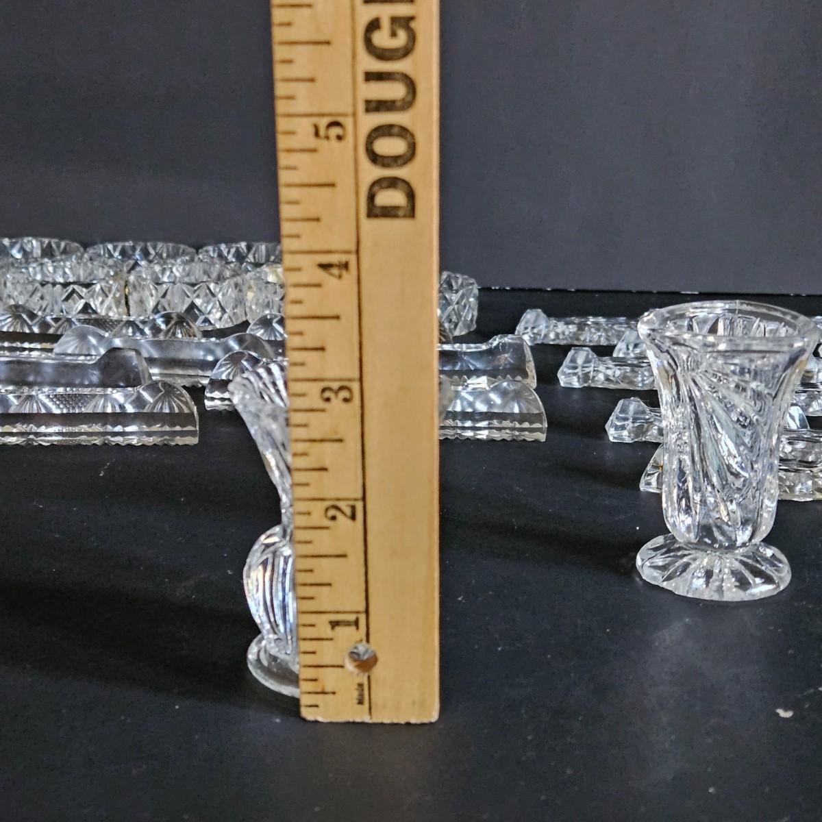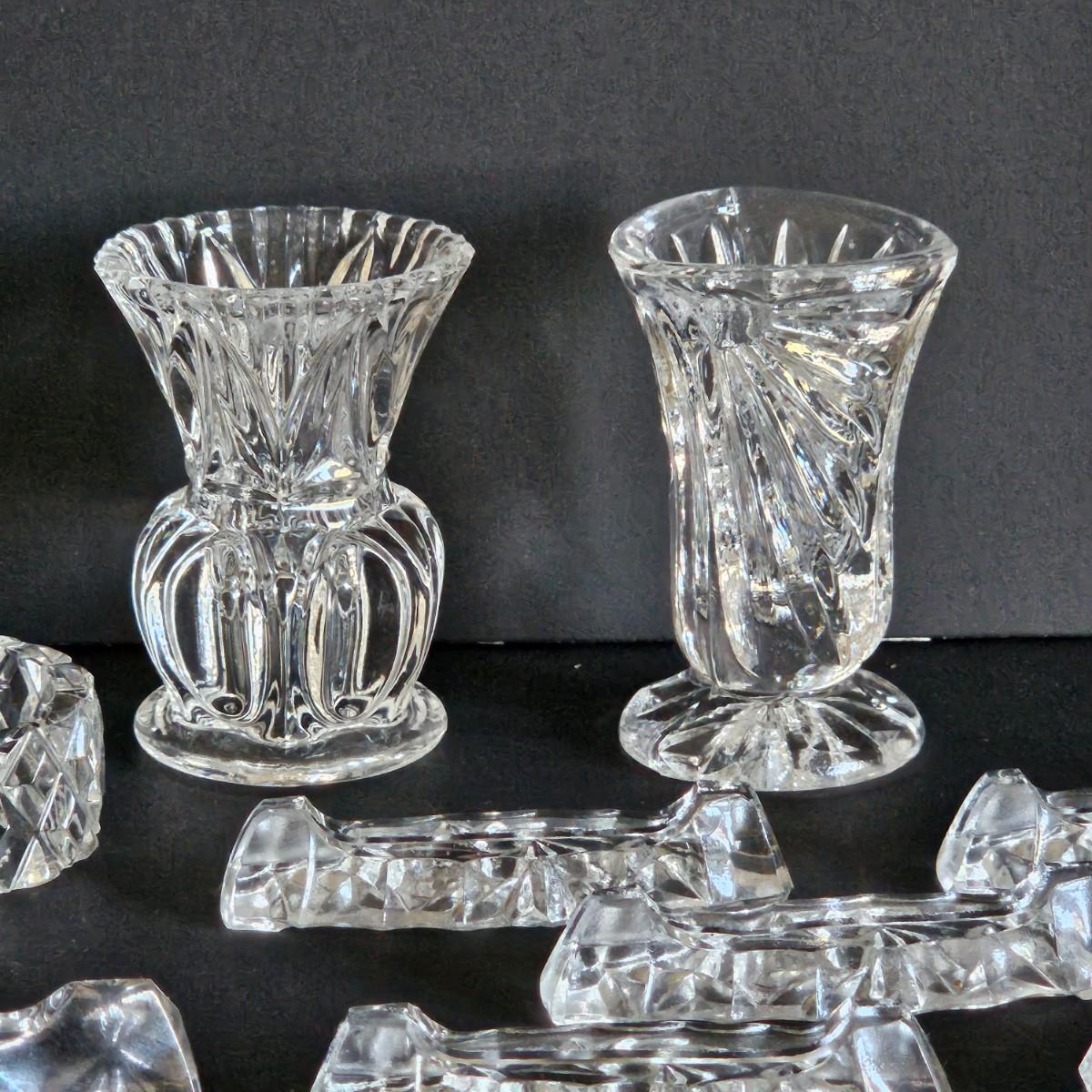 LOT 107D: Collection of Cut Crystal Knife Rests, Golden Crown Napkin Rings & Toothpick Holders