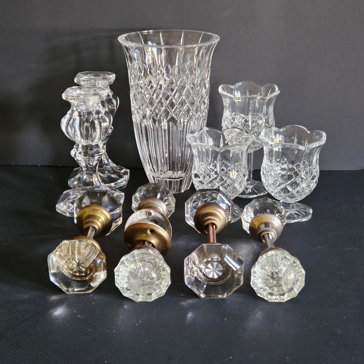 LOT 111D: Vintage Mixed Collection of Vase, Doorknobs, Candlesticks & Goblets