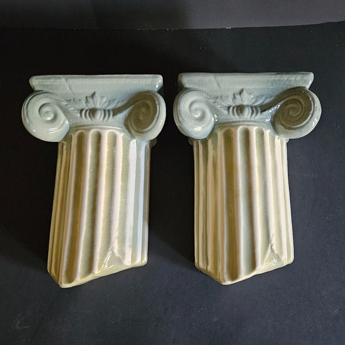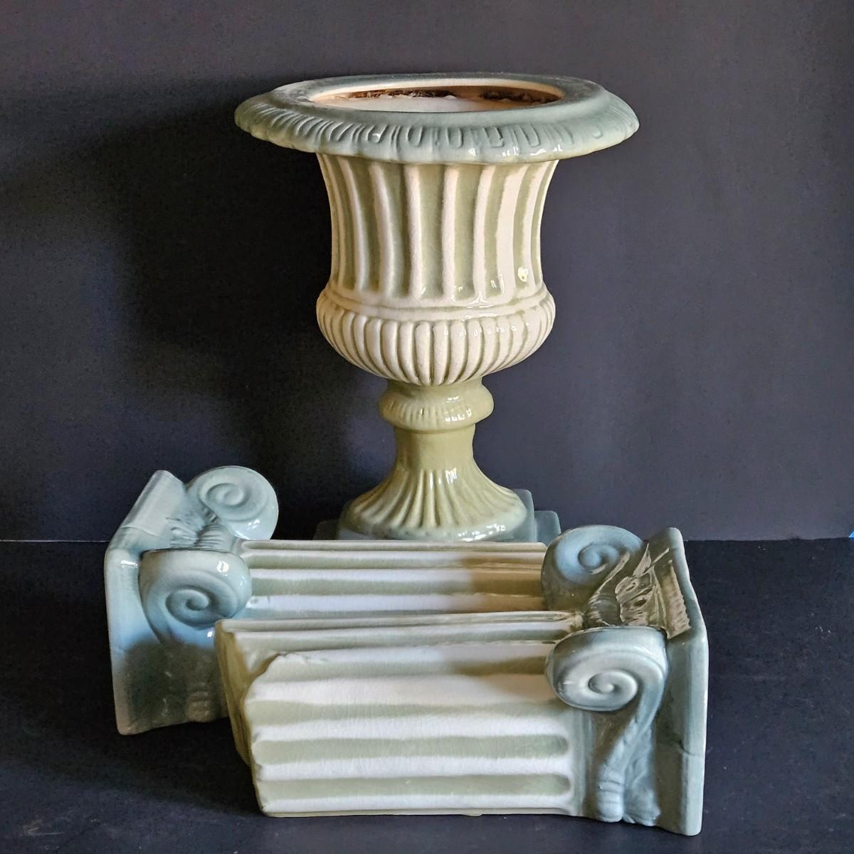 LOT 113D: Retro Green & White Urn and Wall Sconces