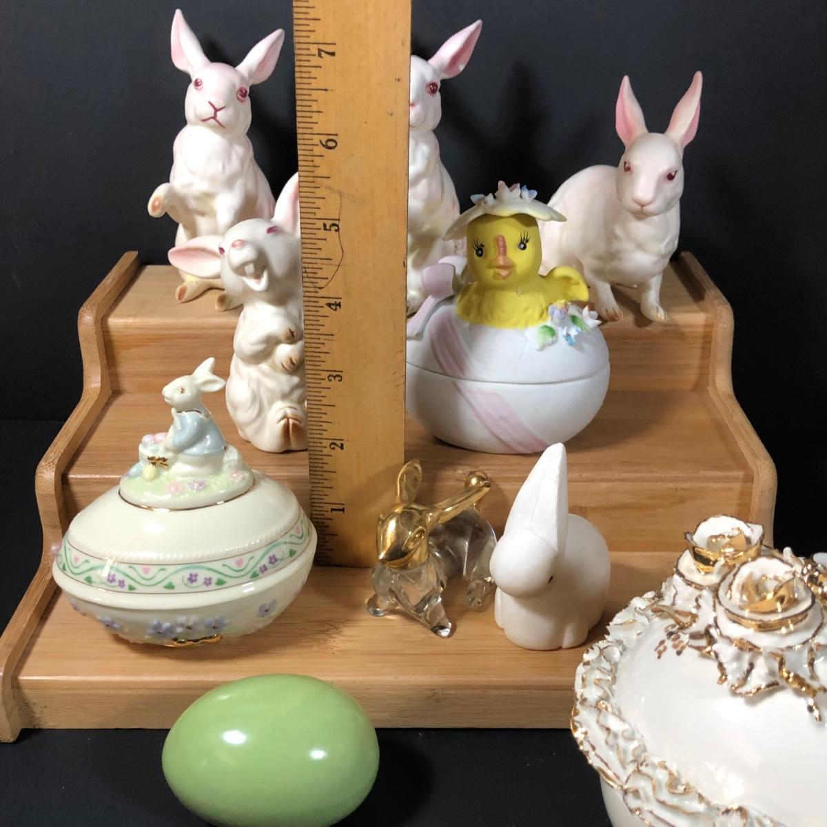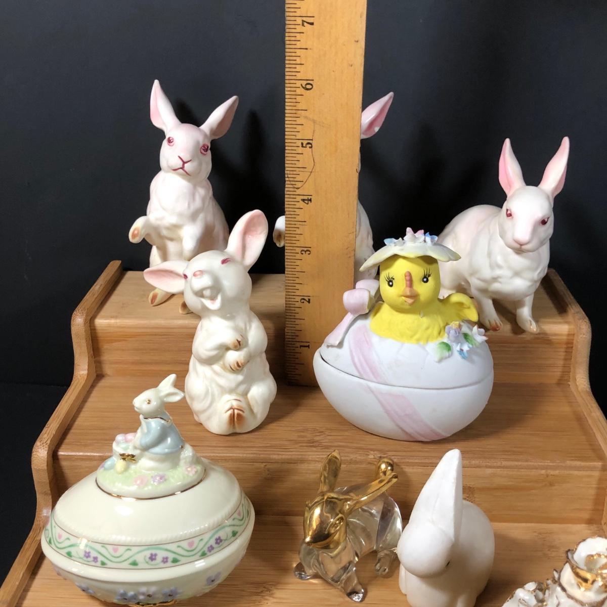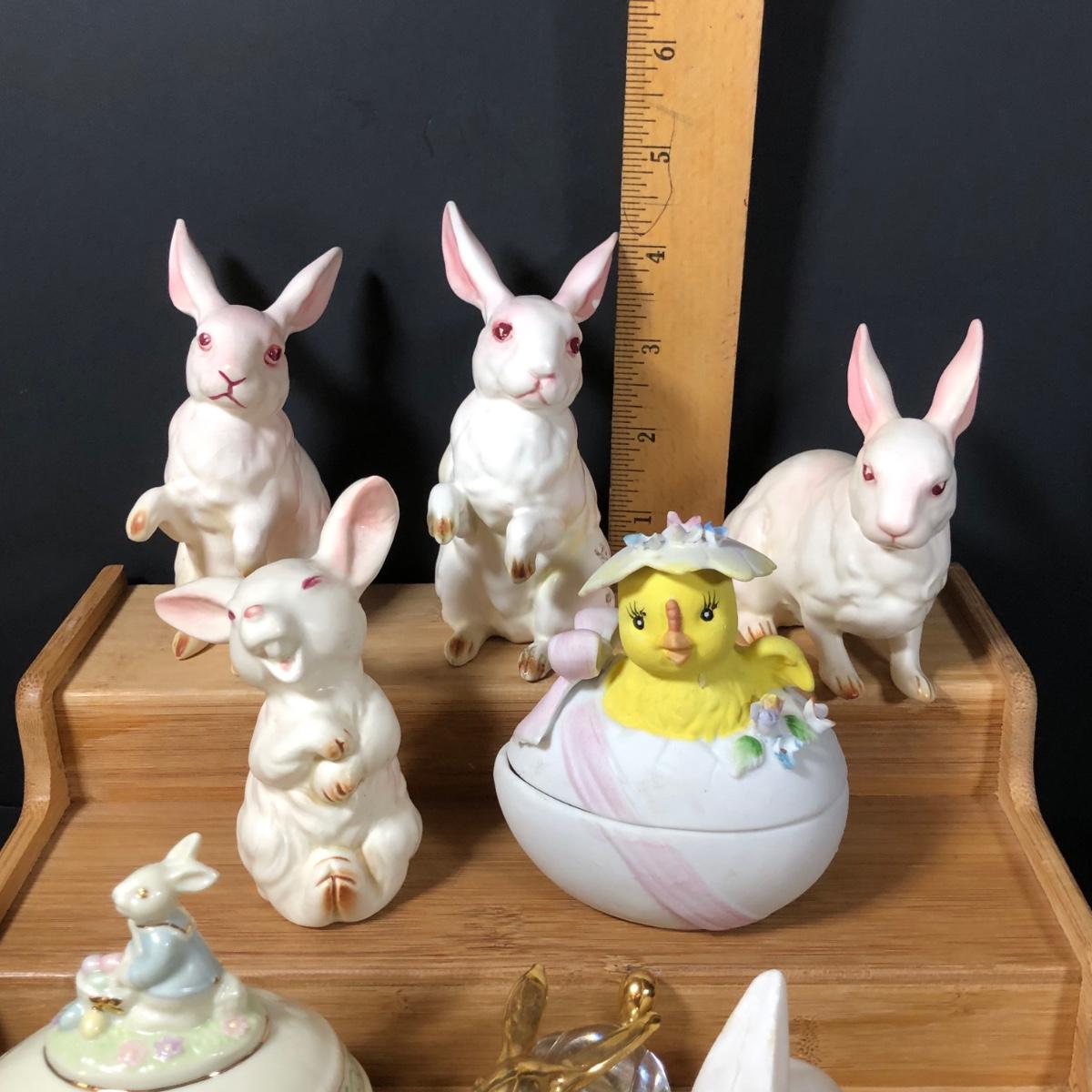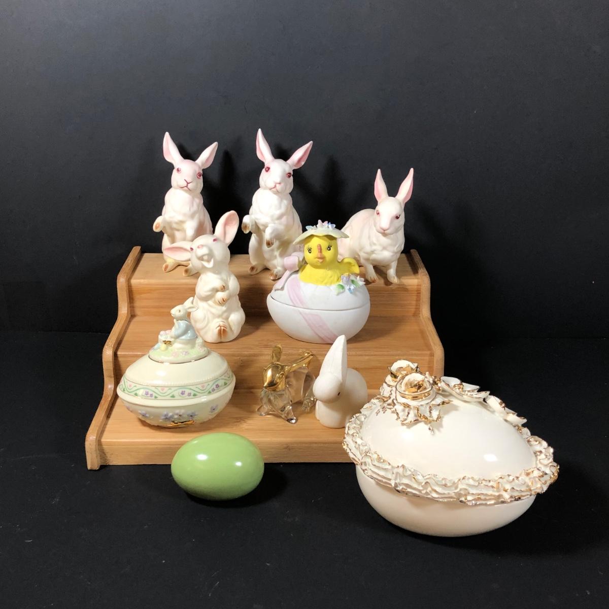 LOT 122K: Spring Collection - Lefton Easter Figurines, Lenox 2002 Spring Bunny Easter Egg w/ Box & More