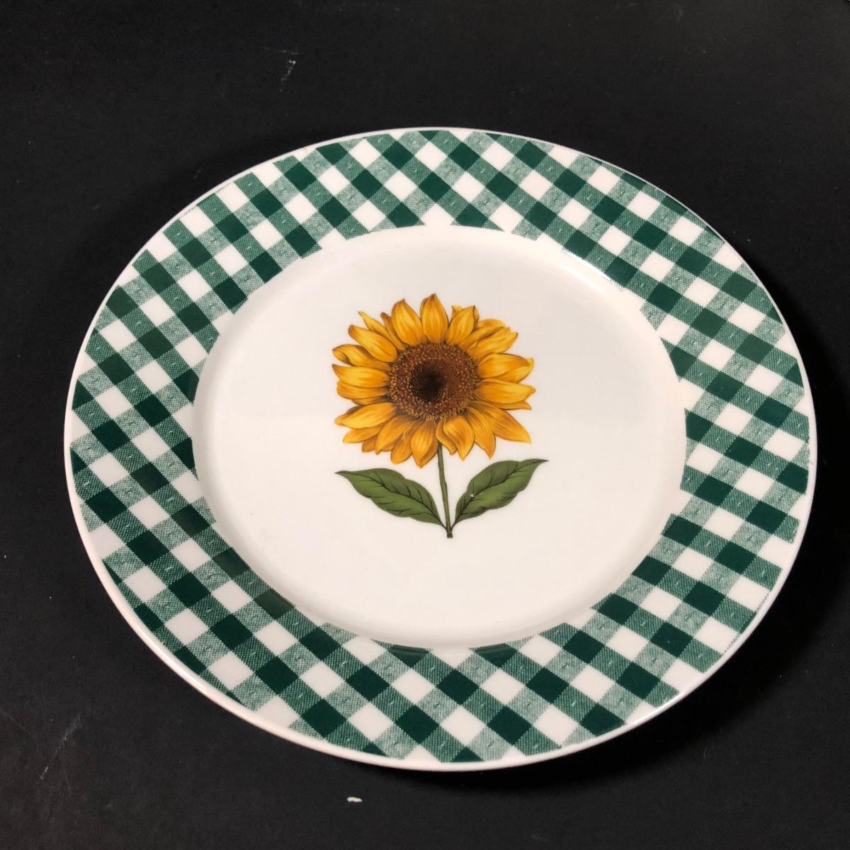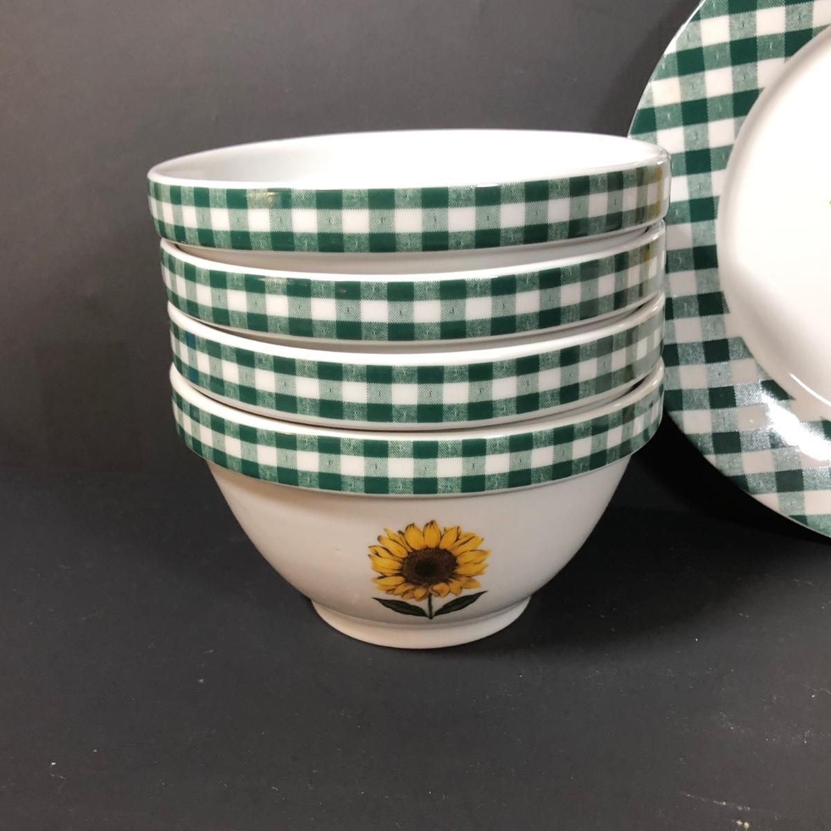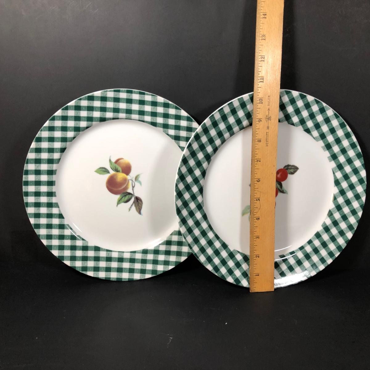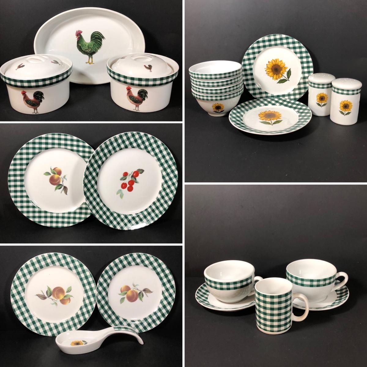 LOT 123K: BIA Cordon Bleu Green Plaid Set w/ Roosters, Sunflowers & Fruits