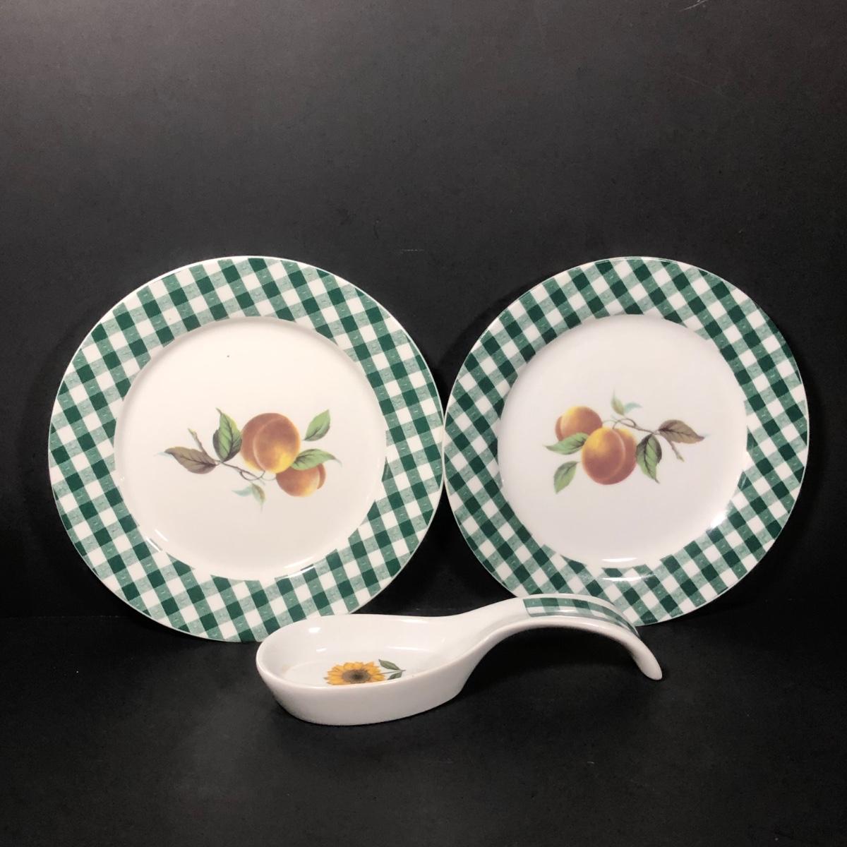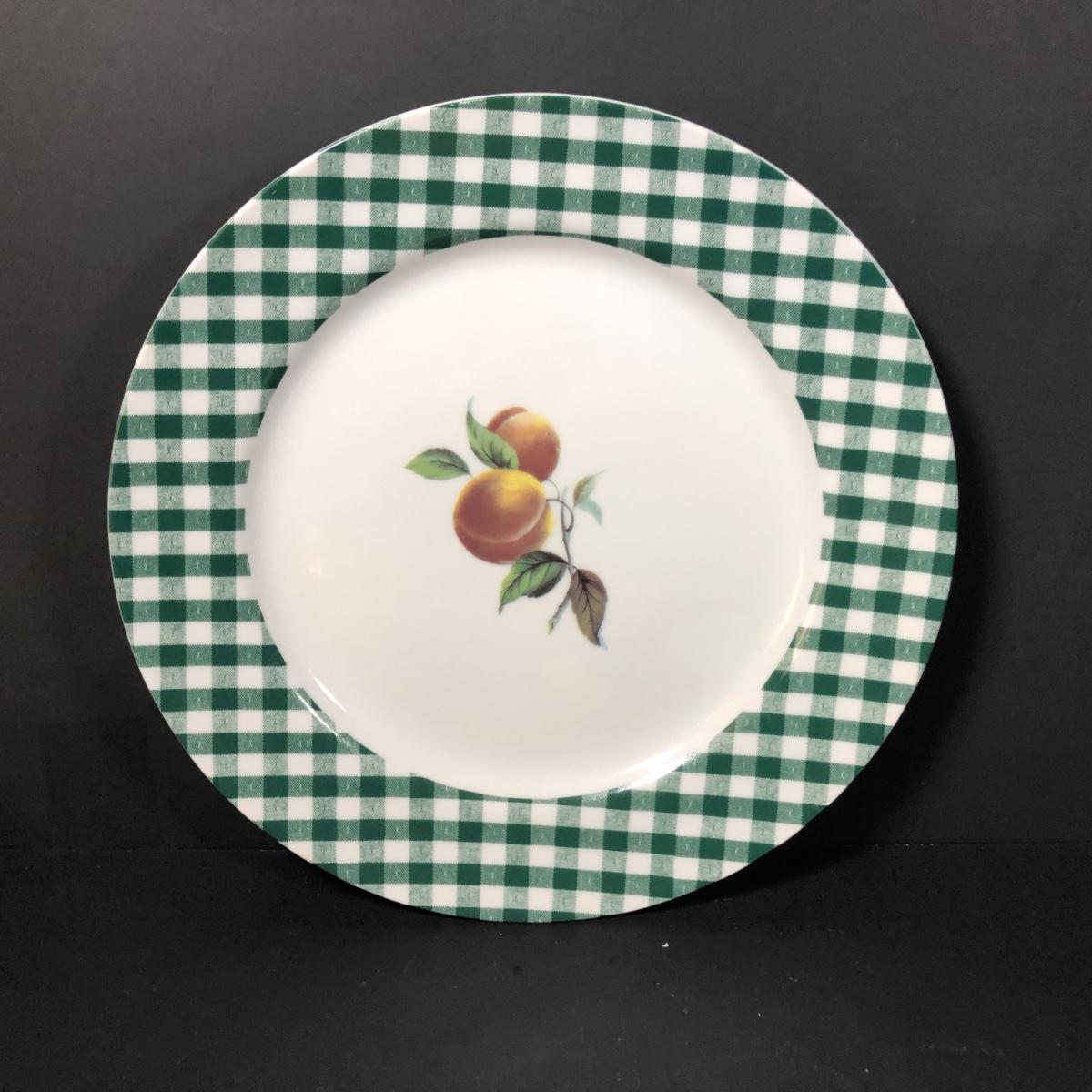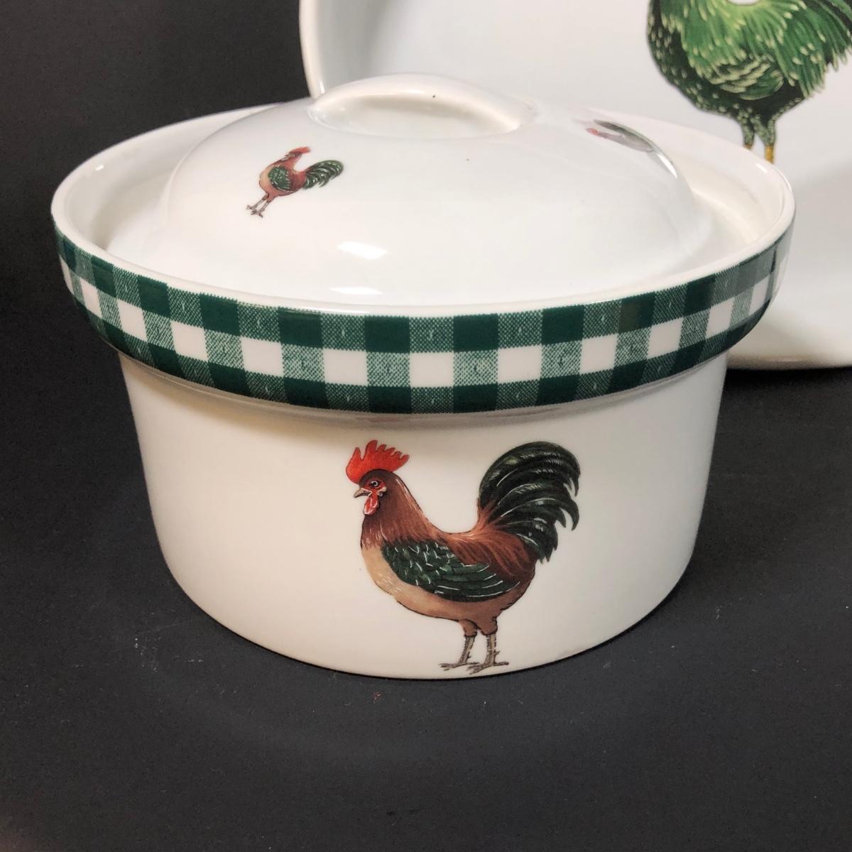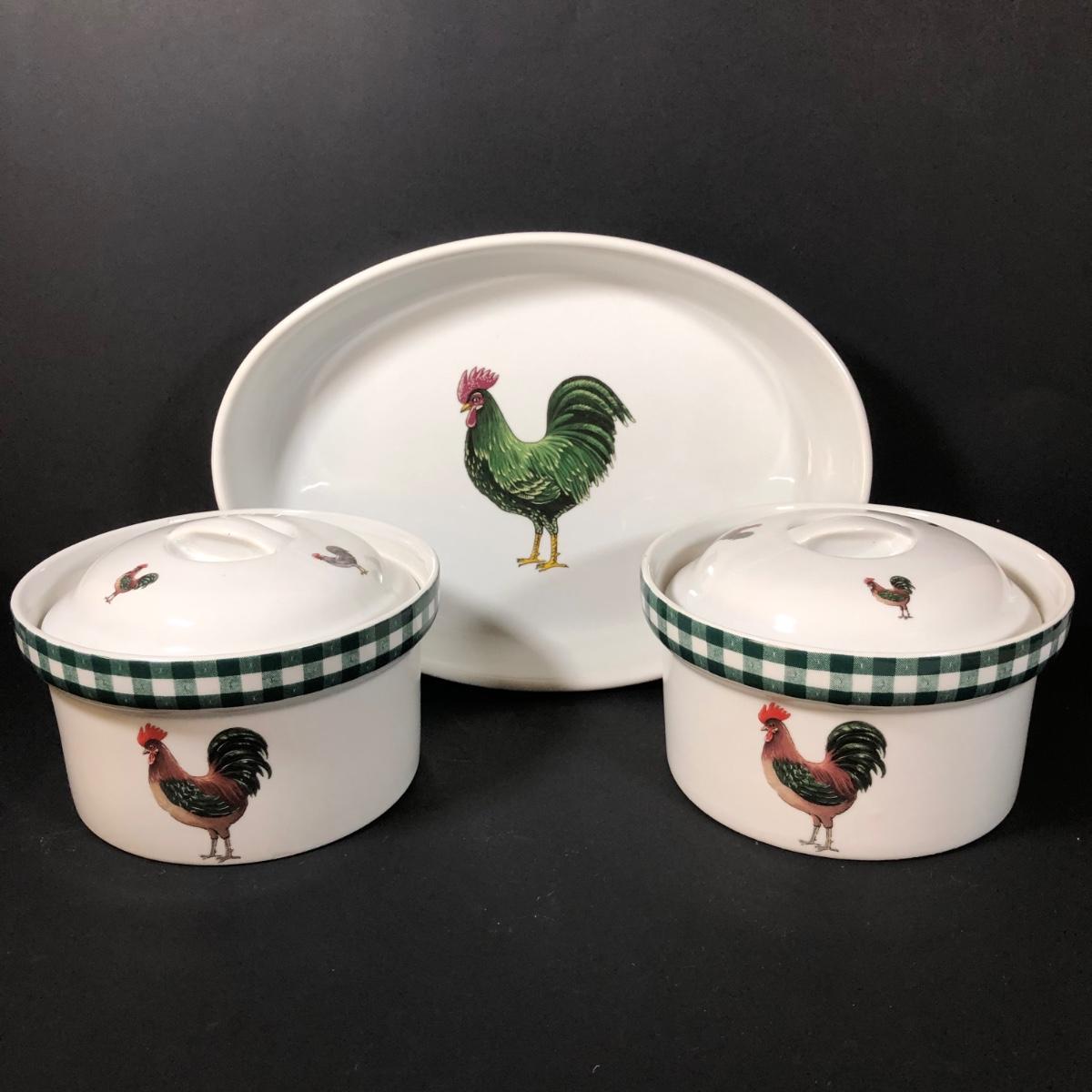 LOT 123K: BIA Cordon Bleu Green Plaid Set w/ Roosters, Sunflowers & Fruits