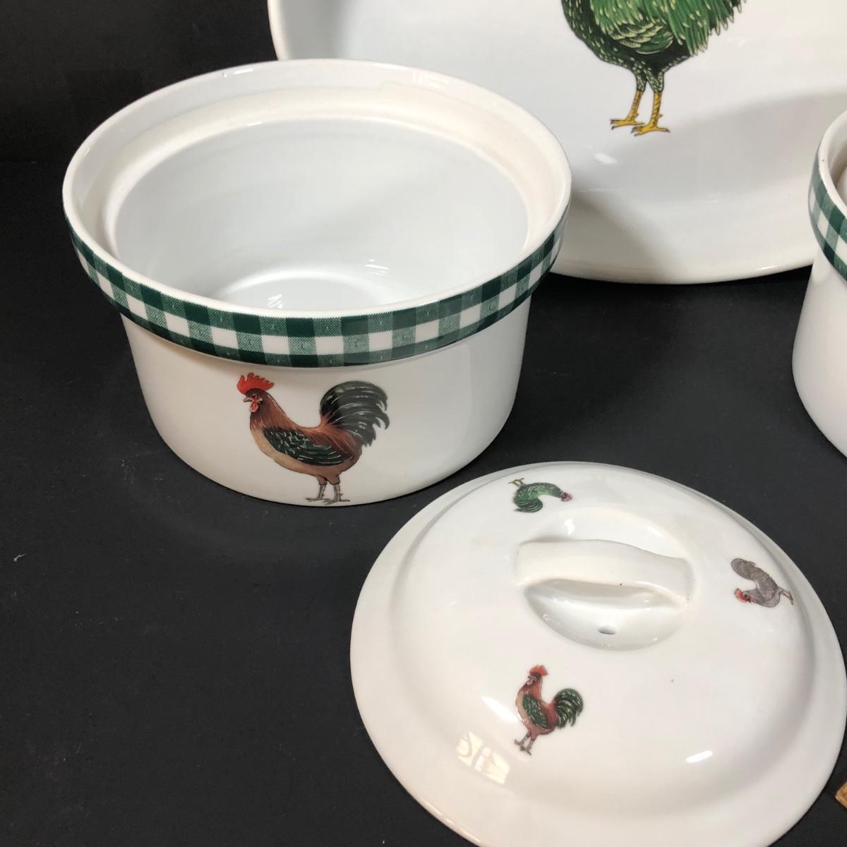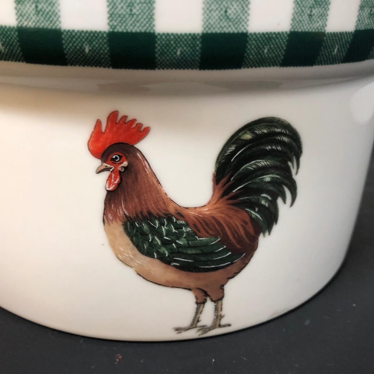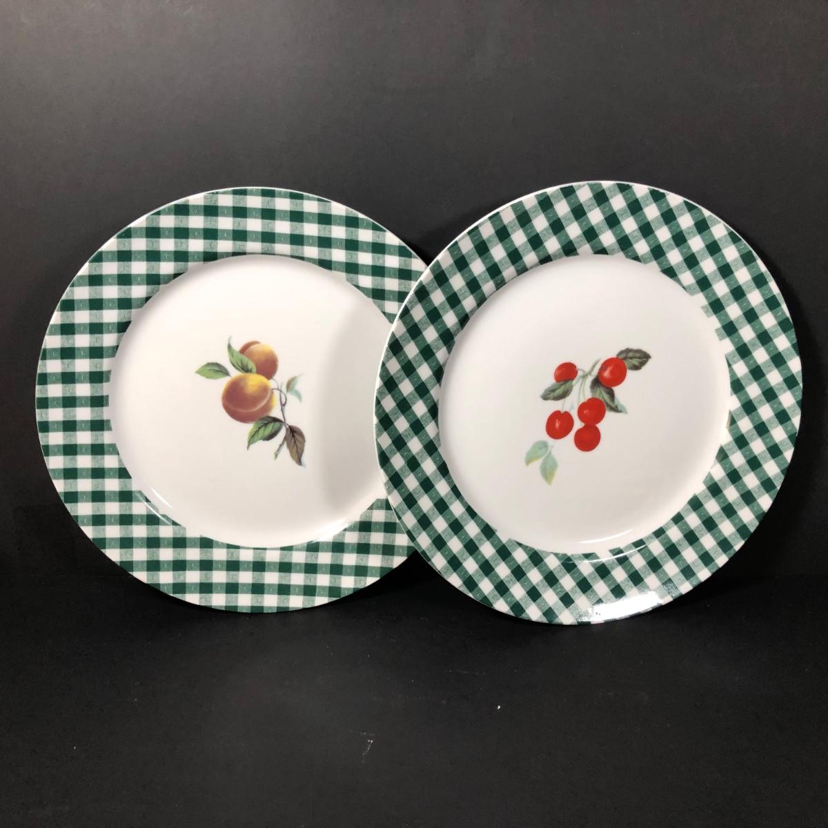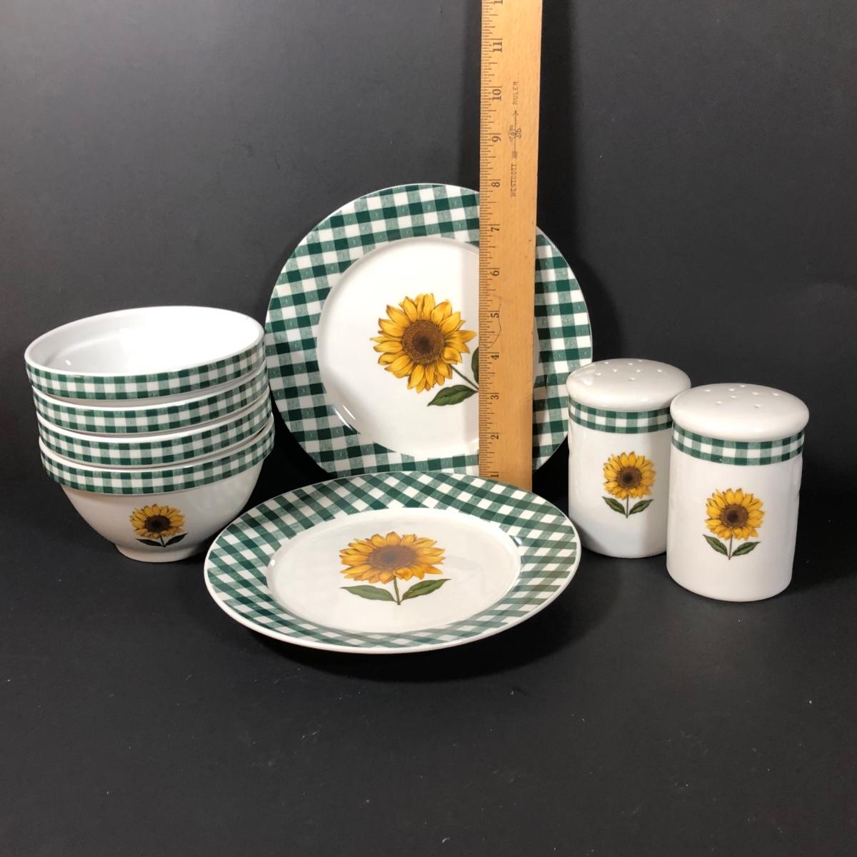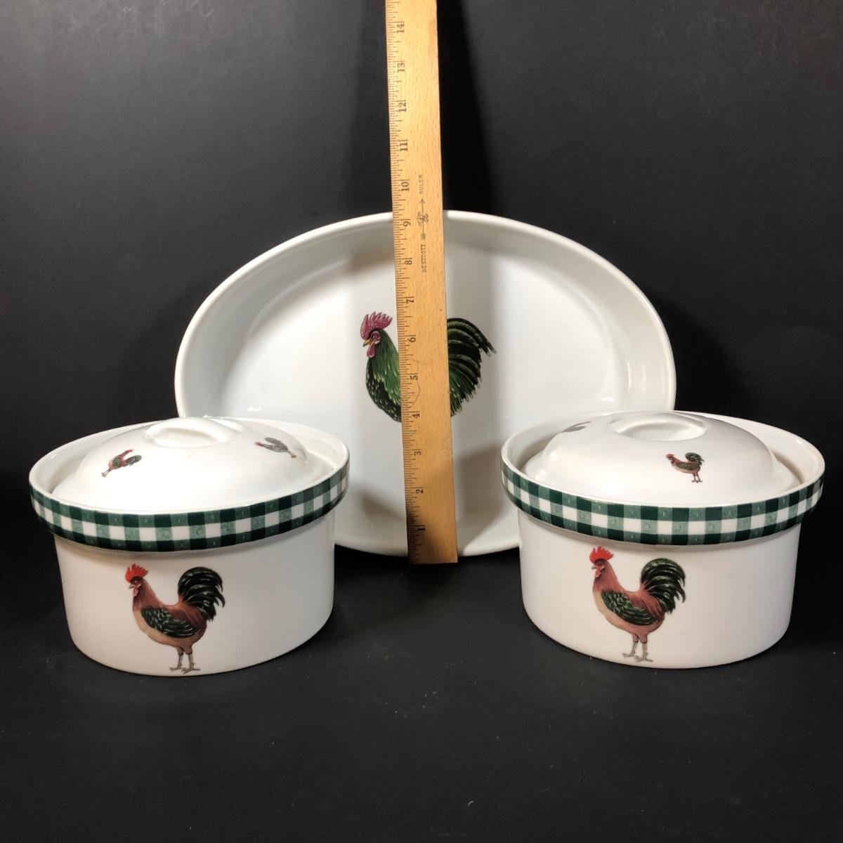 LOT 123K: BIA Cordon Bleu Green Plaid Set w/ Roosters, Sunflowers & Fruits