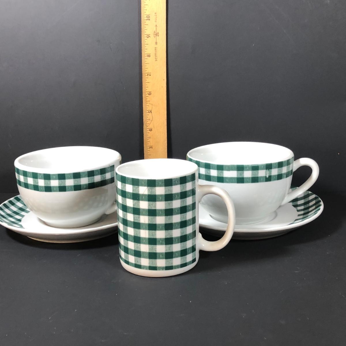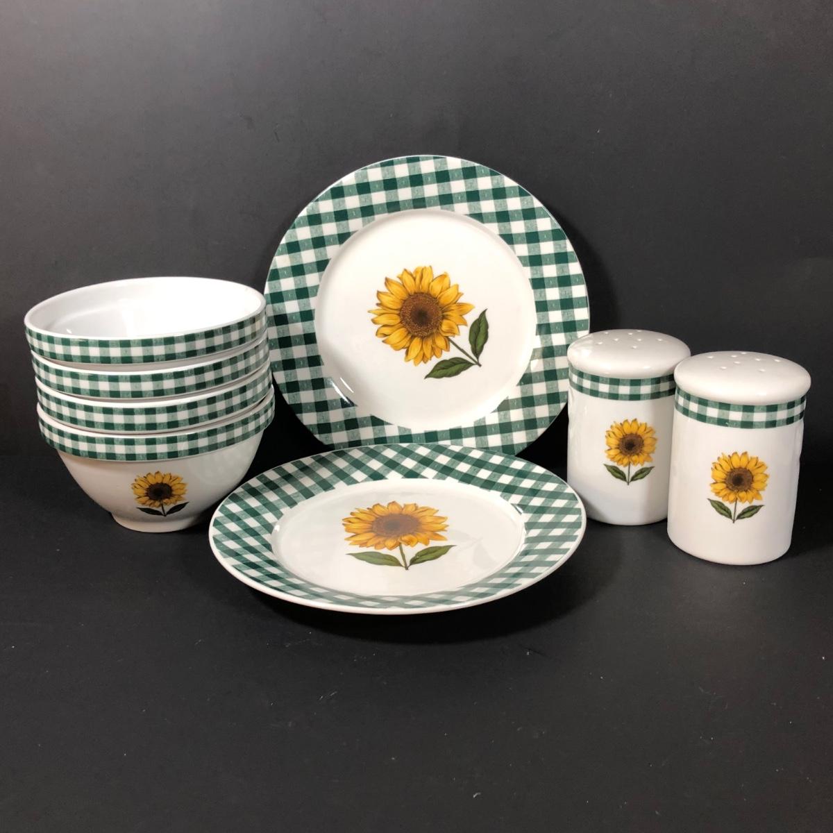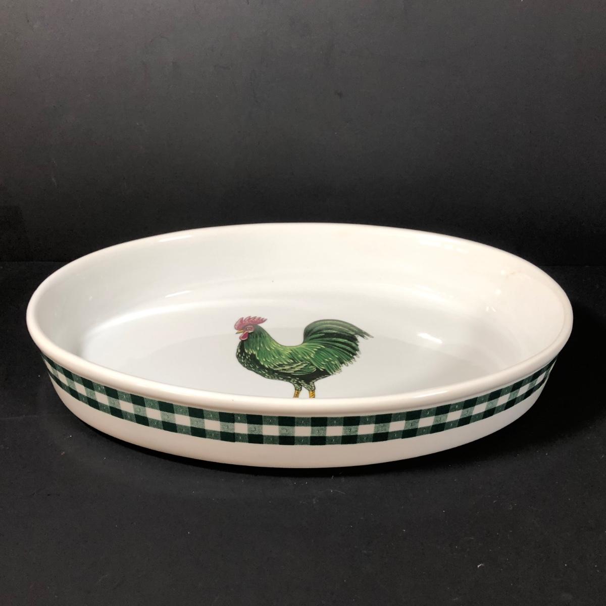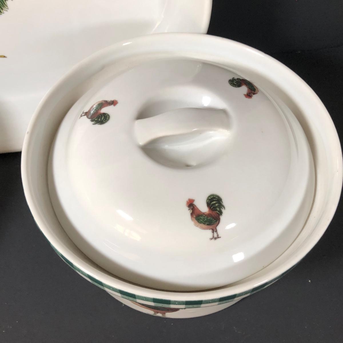 LOT 123K: BIA Cordon Bleu Green Plaid Set w/ Roosters, Sunflowers & Fruits