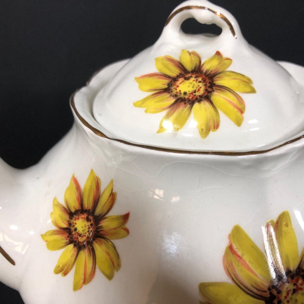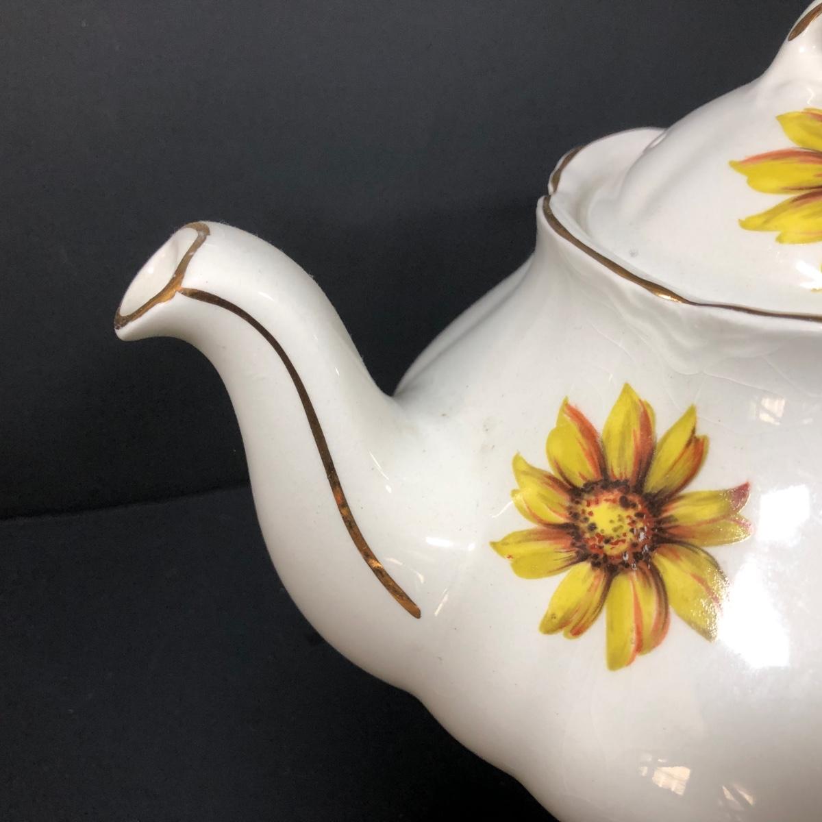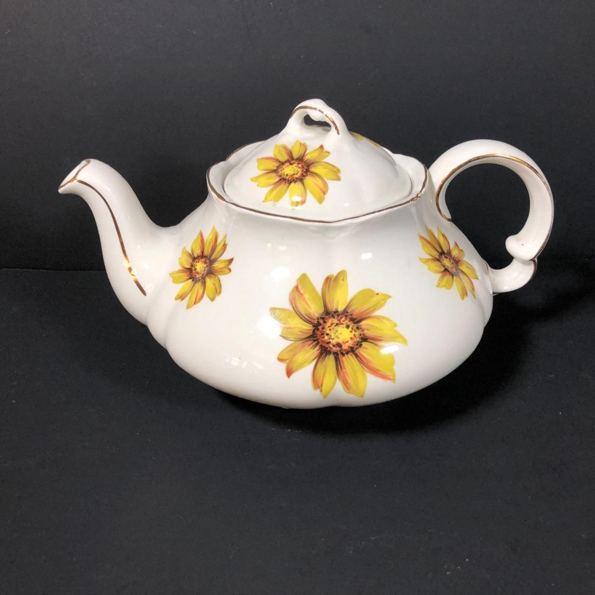 LOT 124K: Sunflower China - Wood & Sons Tea Pot, Bel-Tenn 22kt Gold Accented Tray & Royal Ascot Teacup w/ Saucer