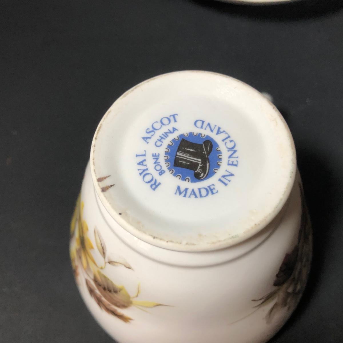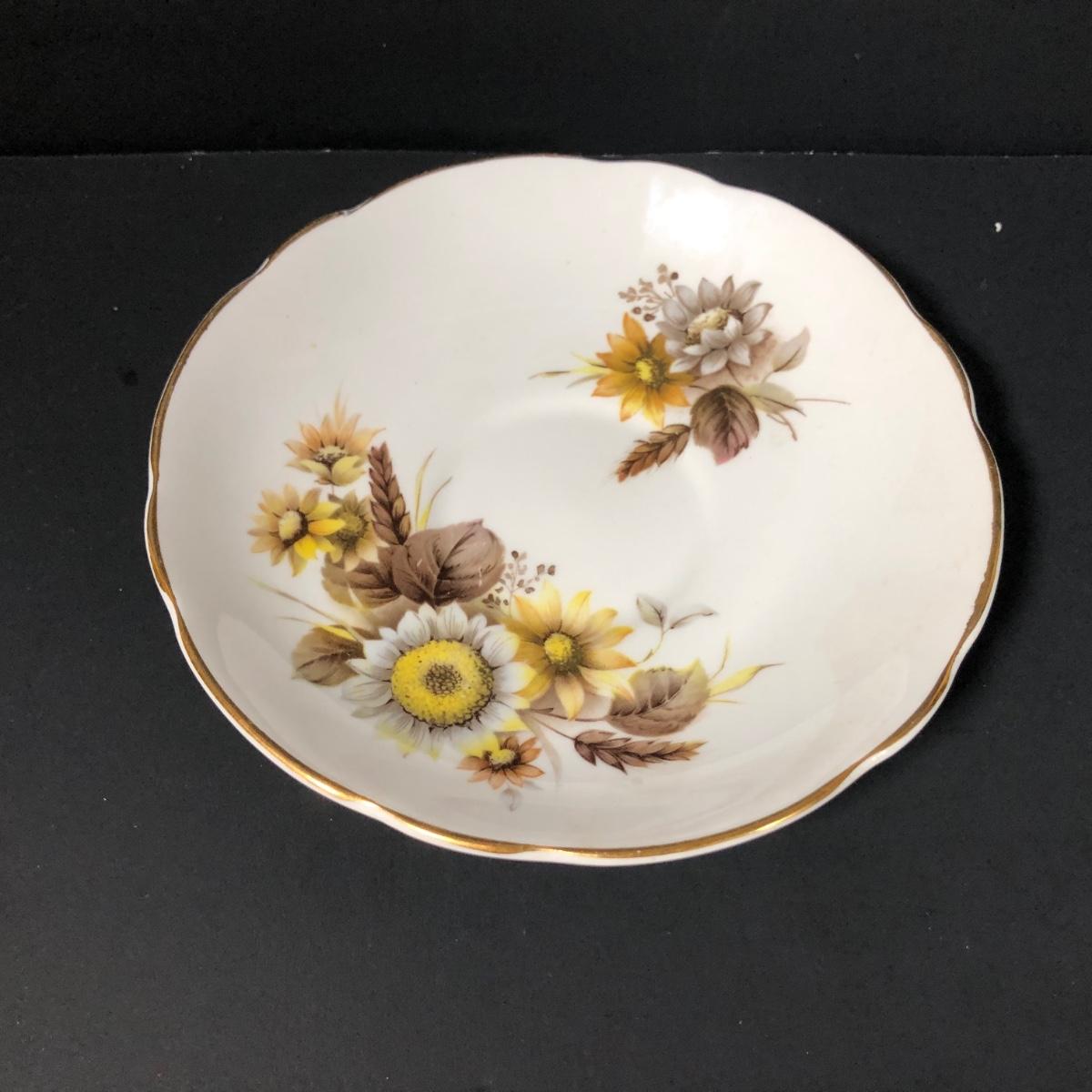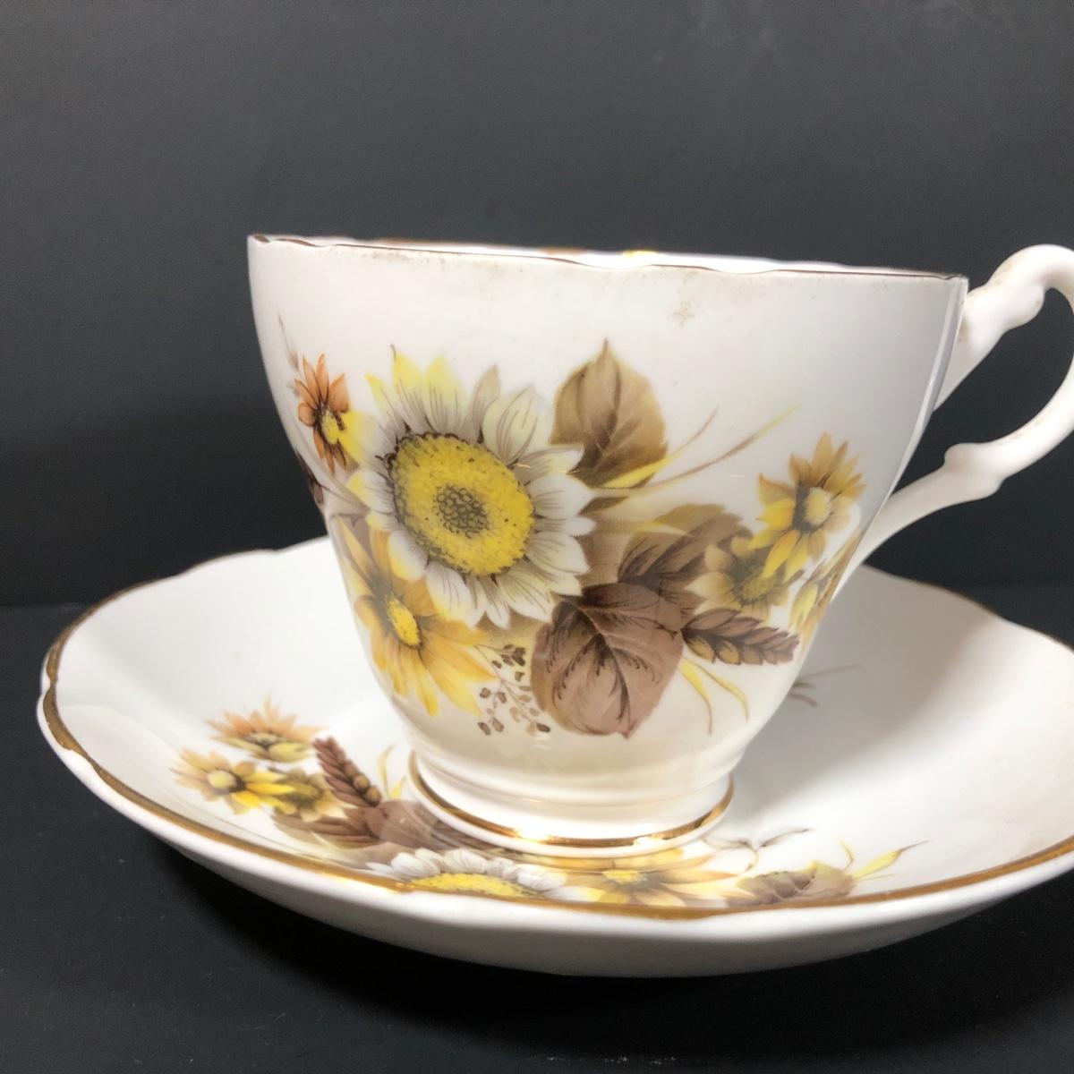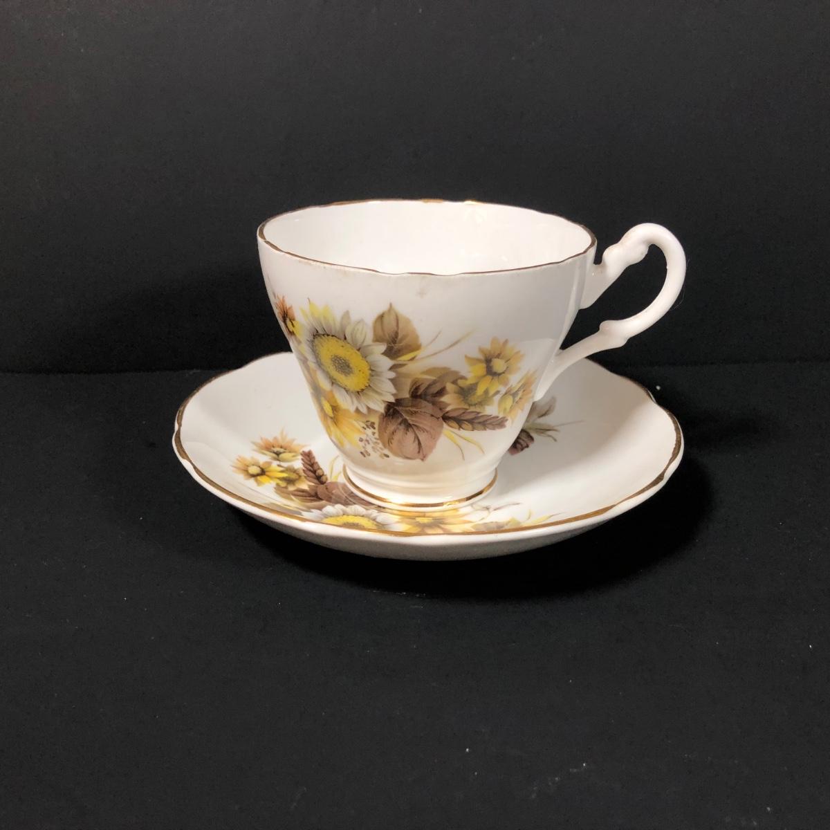 LOT 124K: Sunflower China - Wood & Sons Tea Pot, Bel-Tenn 22kt Gold Accented Tray & Royal Ascot Teacup w/ Saucer