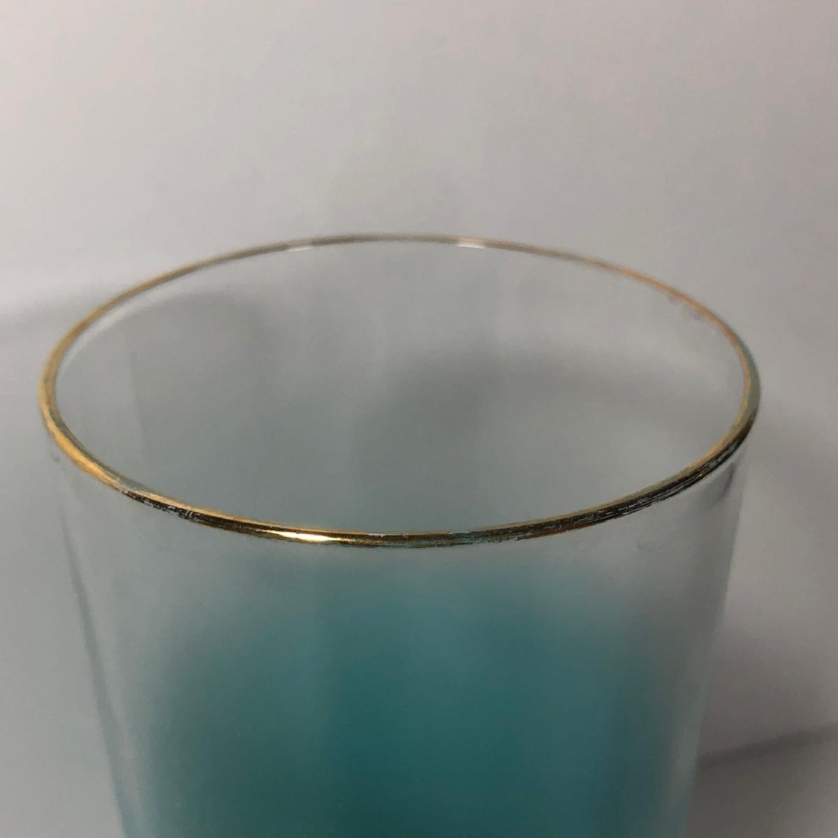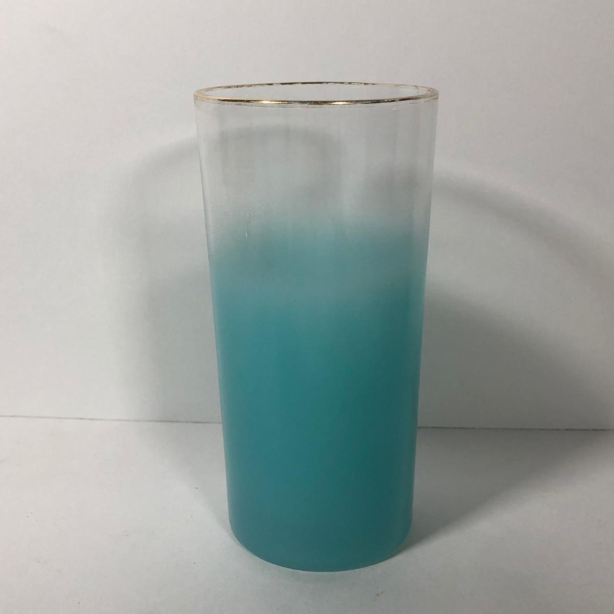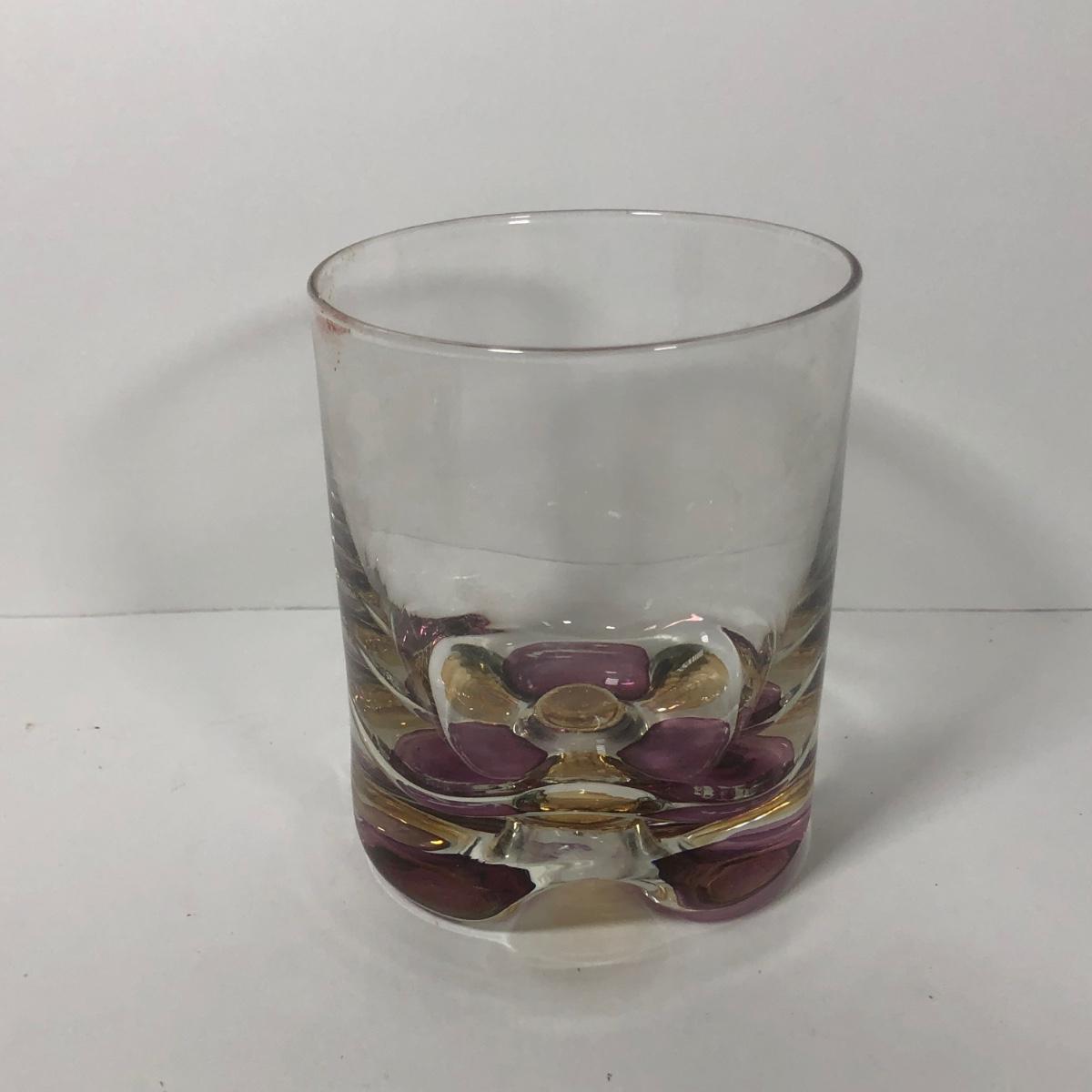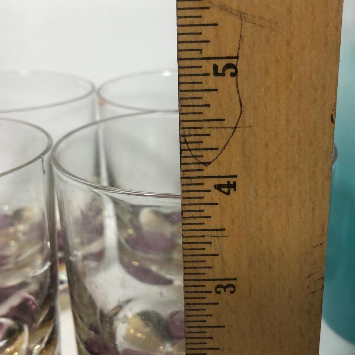 LOT 128K: Vintage Blue Frosted Gold Rim Glasses (6) & Amethyst Purple Rocks Glasses (4)