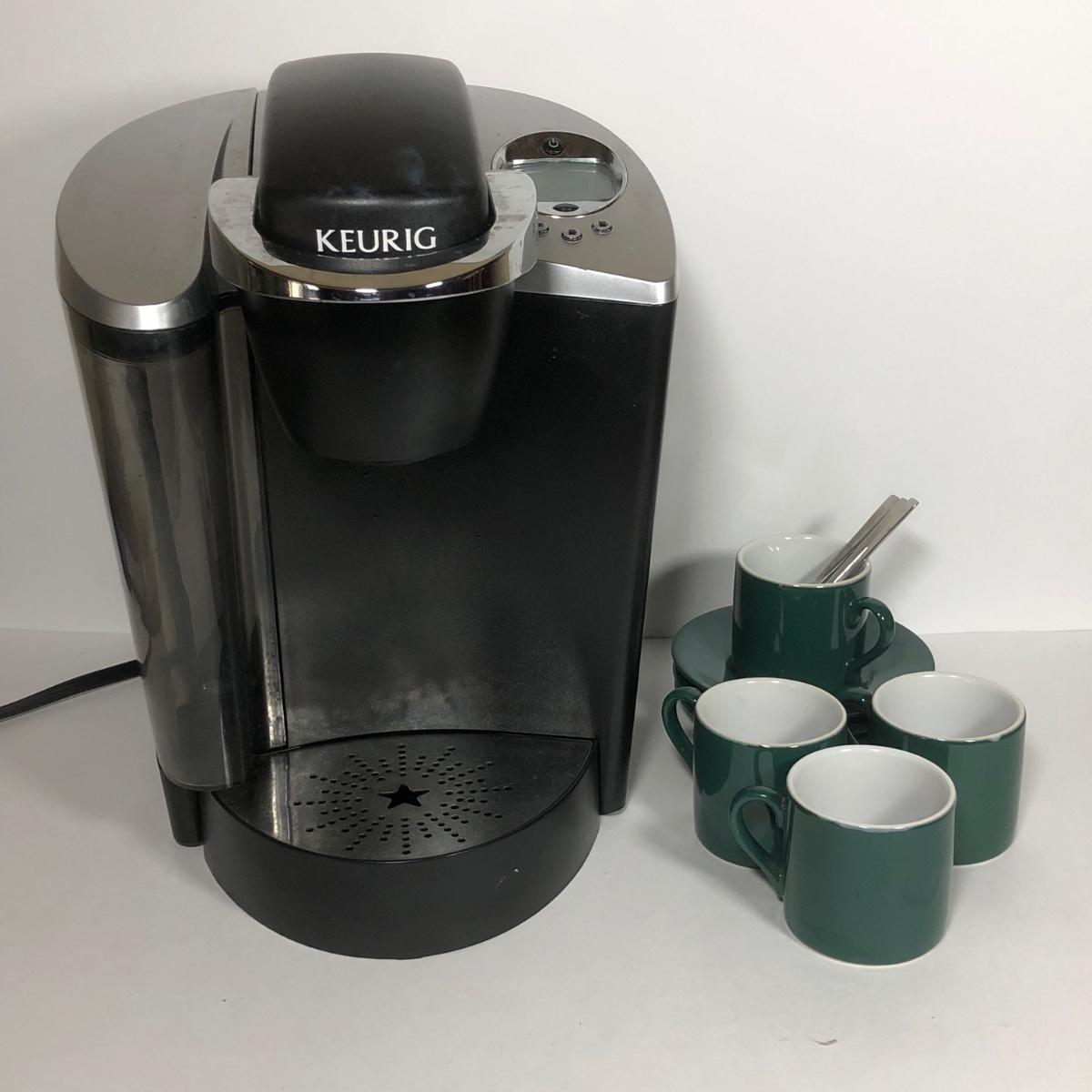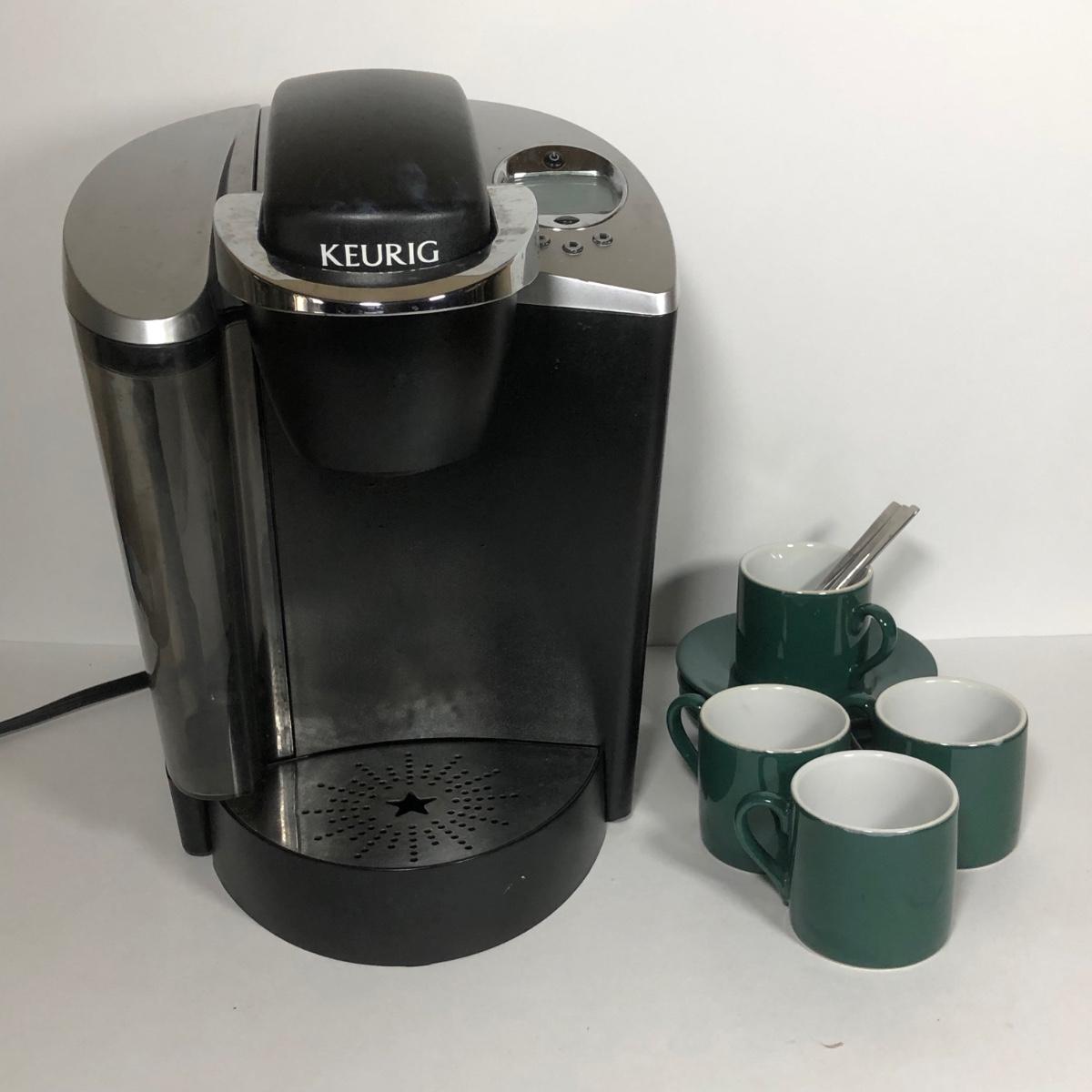 LOT 134K: Keurig Coffee Maker Model K60 & Green Espresso Set (3 w/ extra mug)