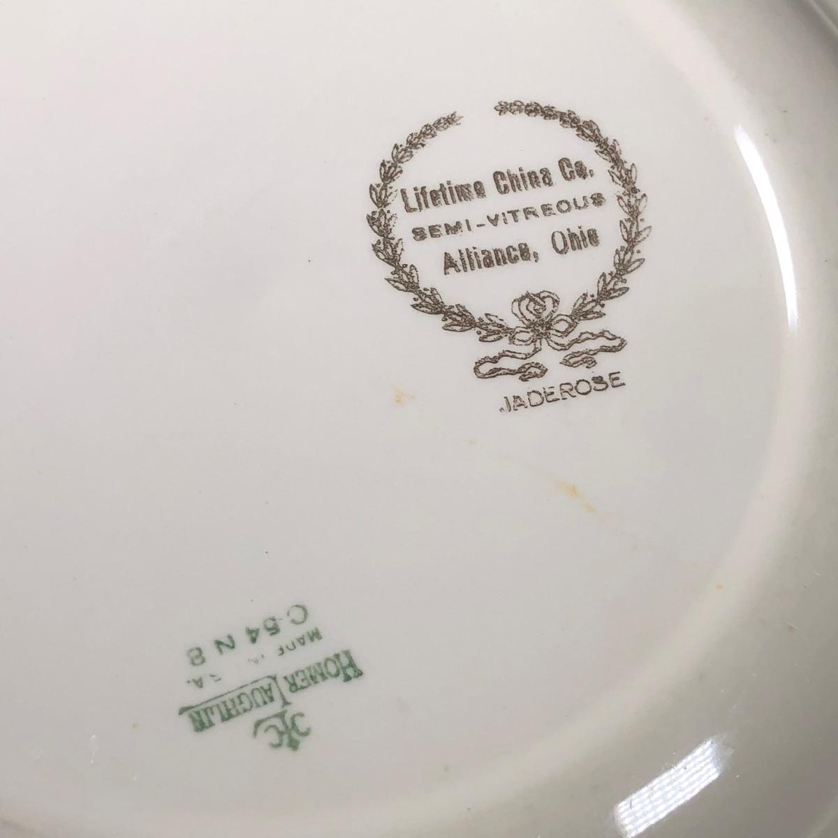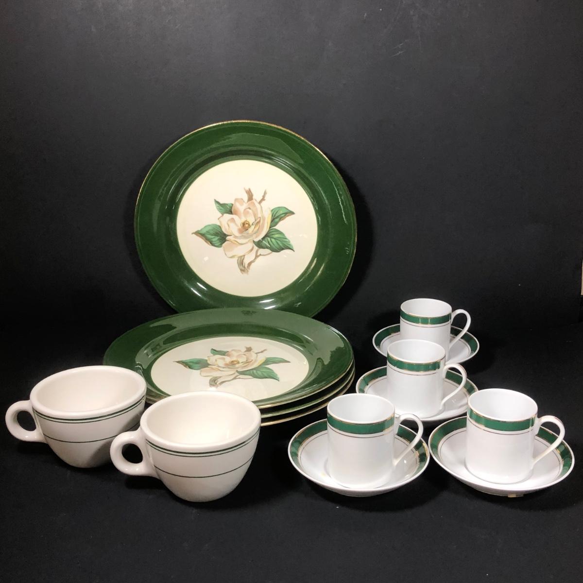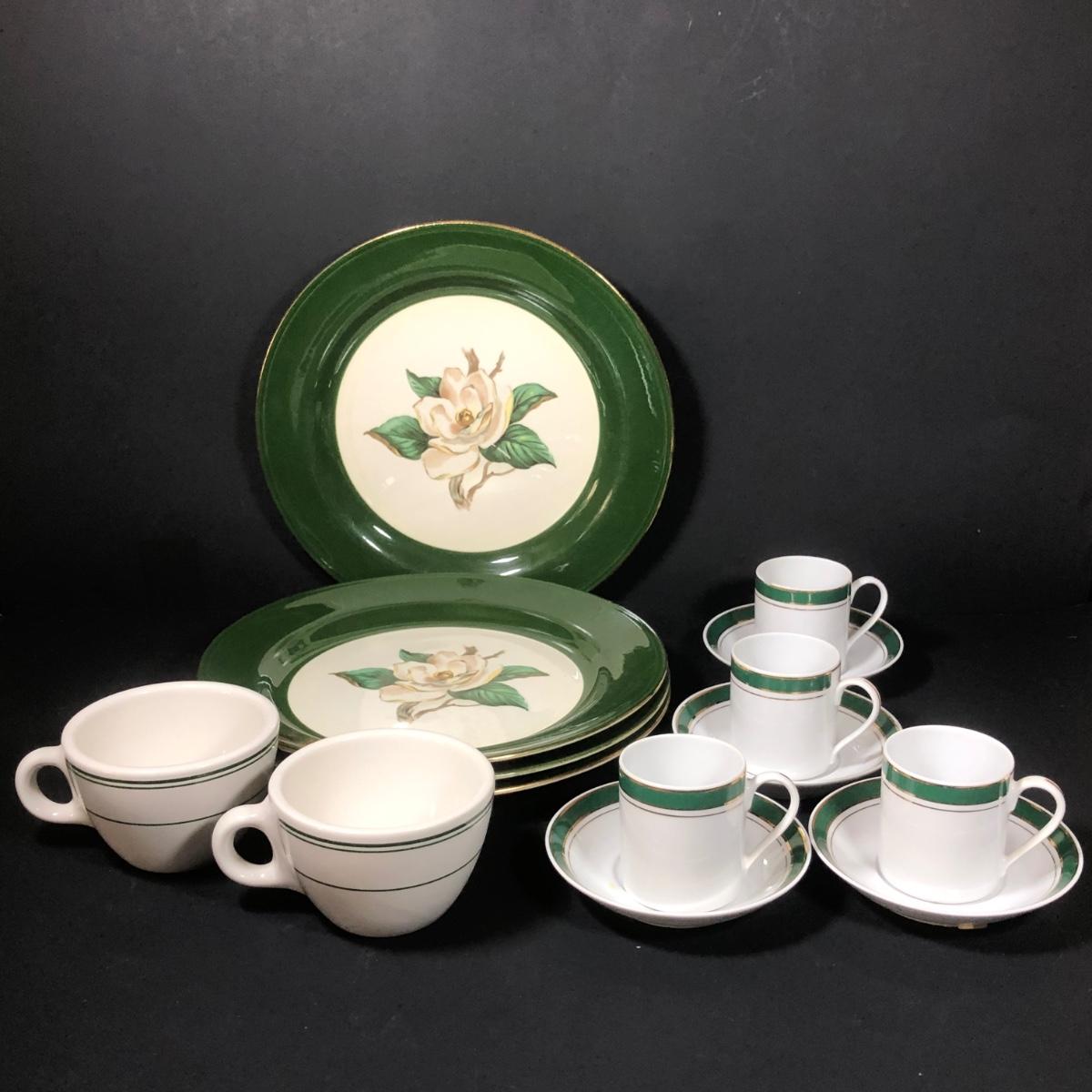 LOT 146K: Crown Porcelain Prestige Espresso Set w/ Homer Laughlin Thick Mugs & Vintage Lifetime Jade Rose Plates