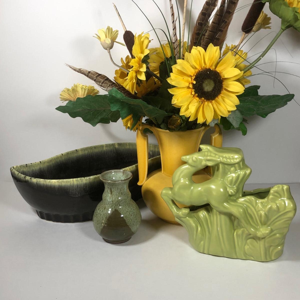 LOT 150K: Stangl Pottery Yellow Vase 2103, Hull Pottery Leaf Shape Planter 406 & More