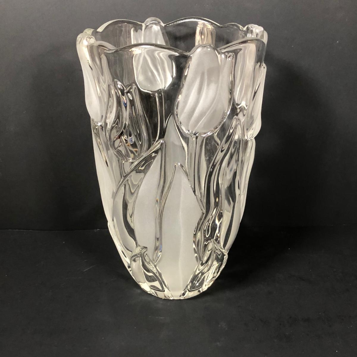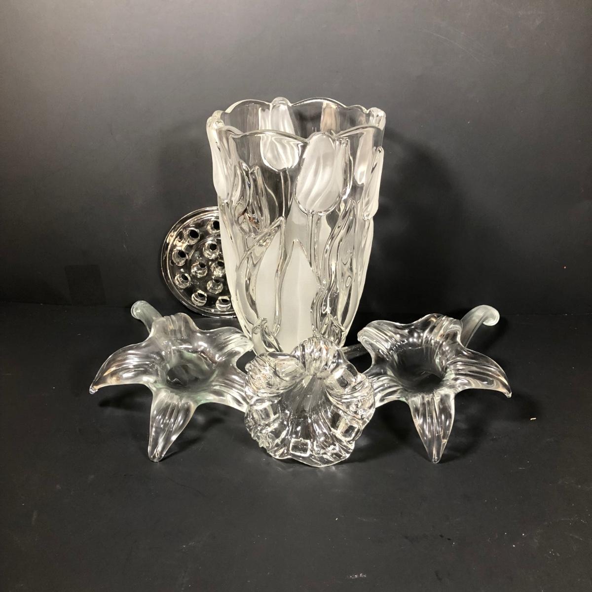 LOT 157L: Mikasa Crystal Tulip Vase, Clear Glass Flower Frog w/ Glass & Crystal Flowers