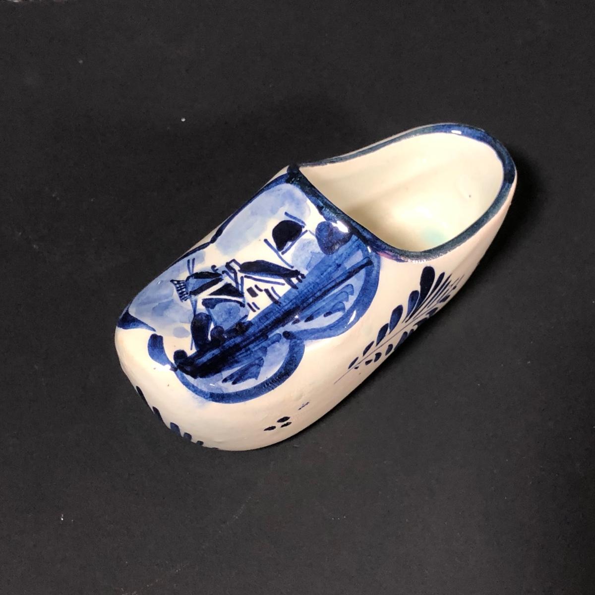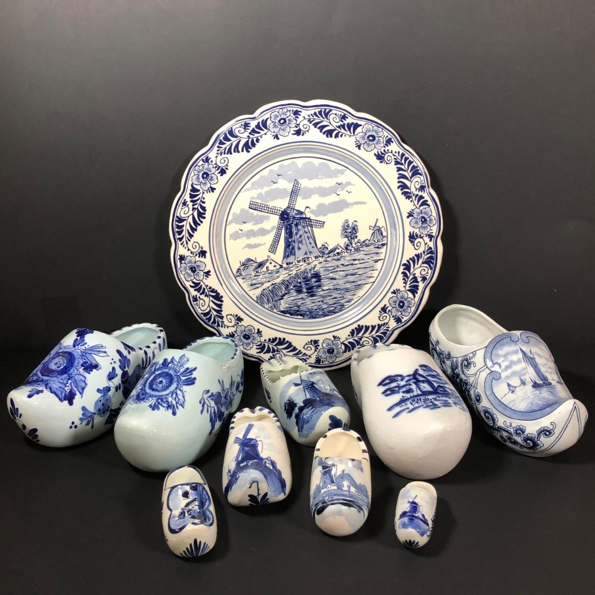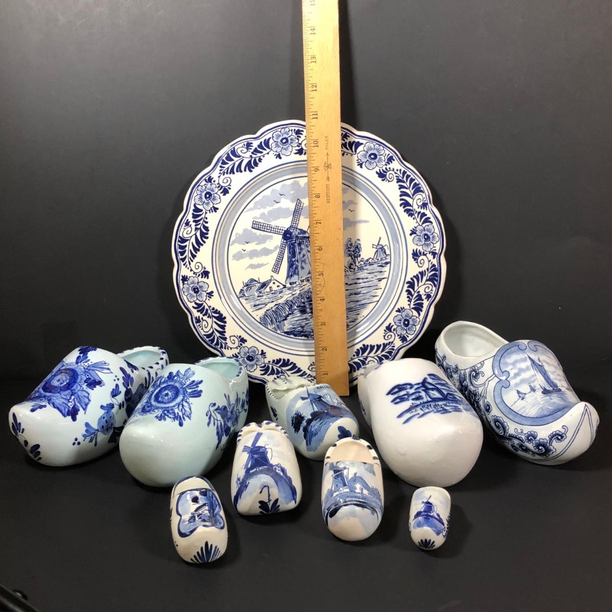 LOT 162F: Delft Hand Painted Holland Clogs, Windmill Plate & More Blue & White China Pieces