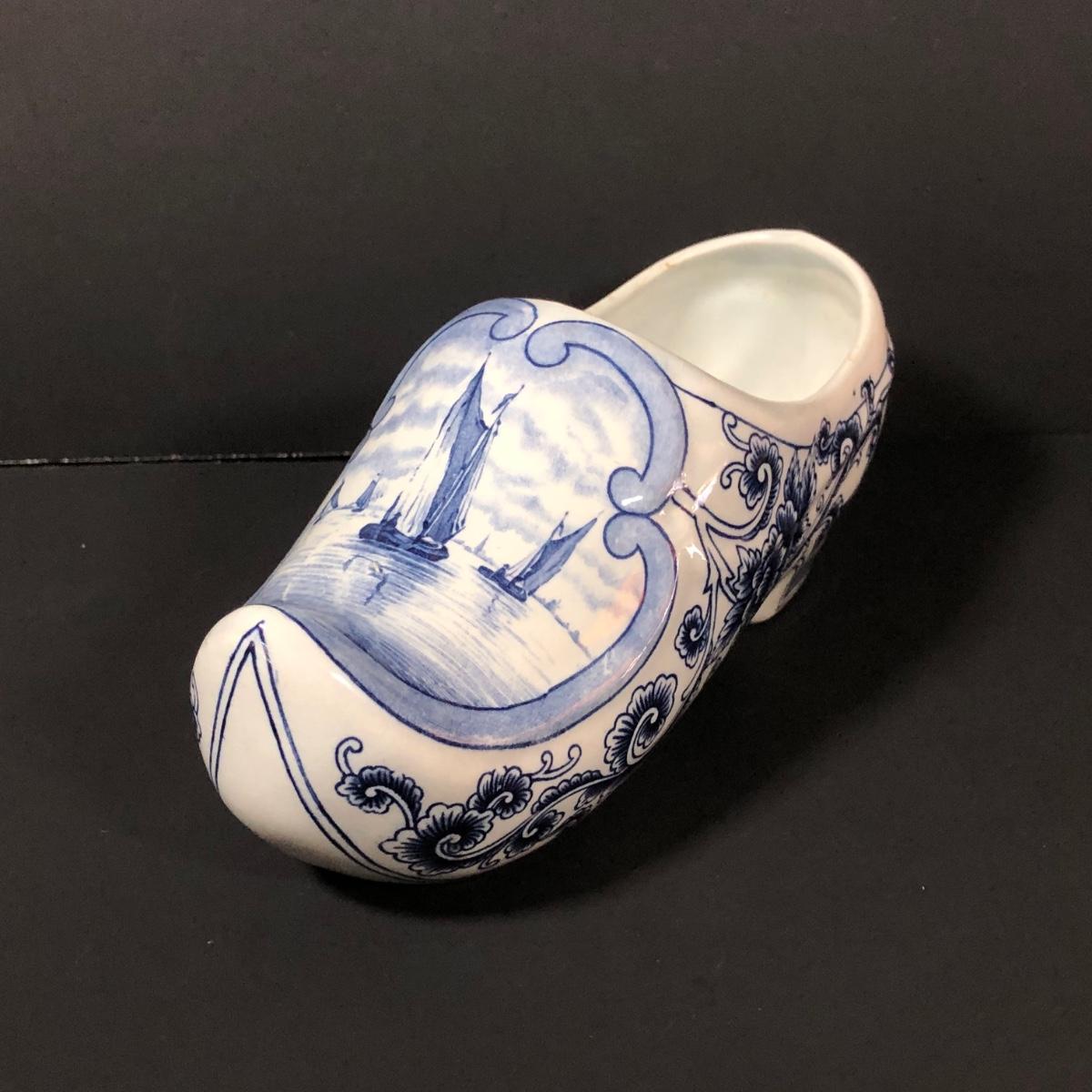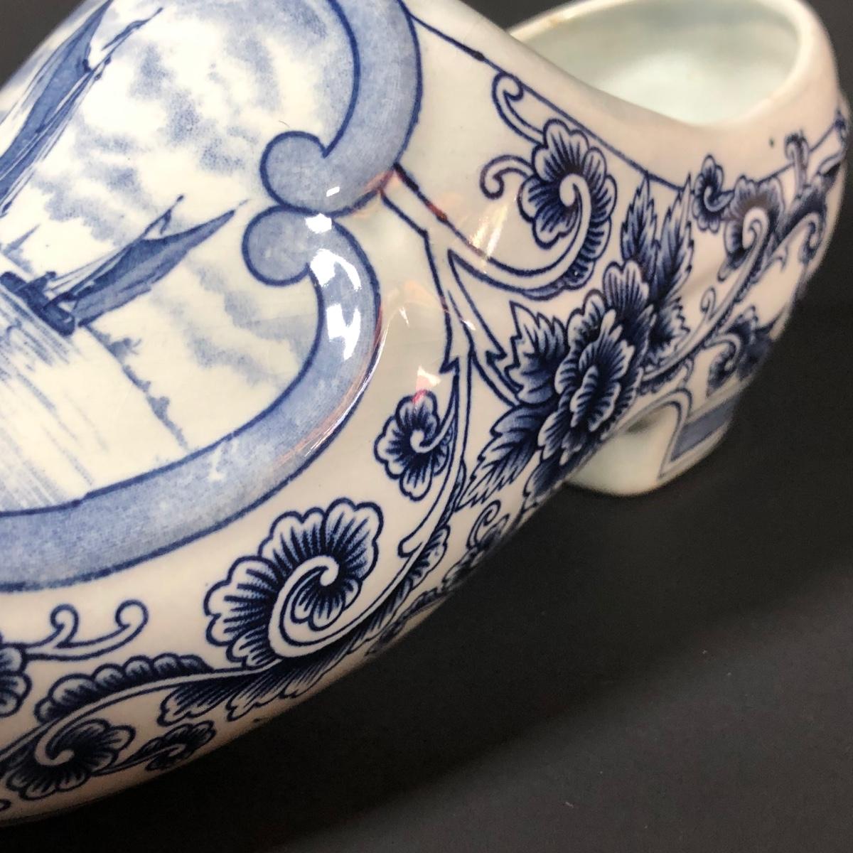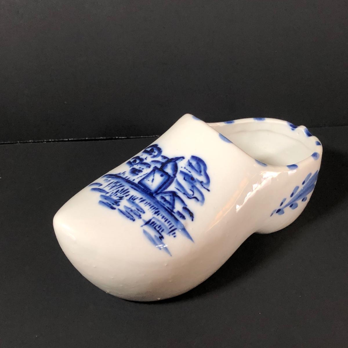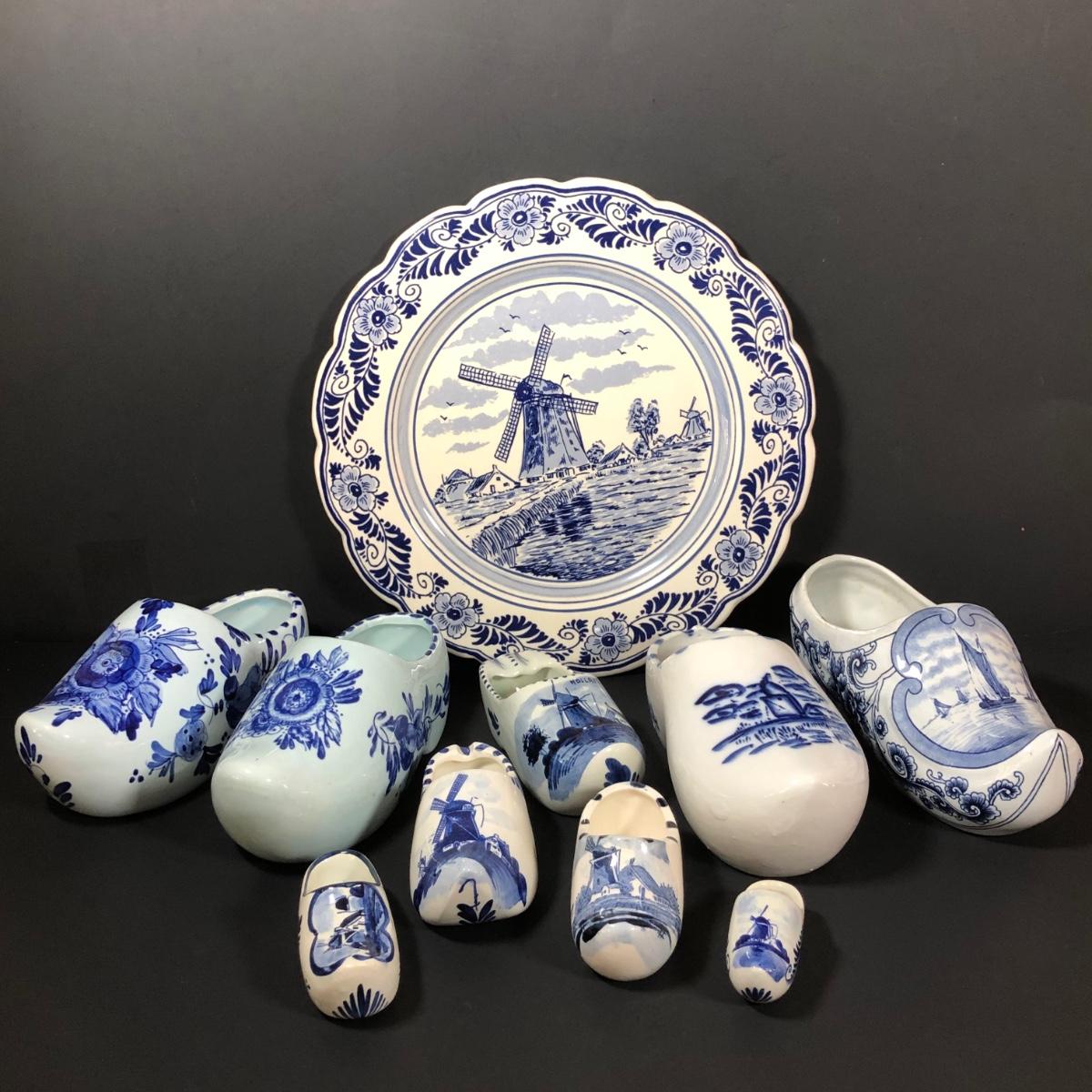 LOT 162F: Delft Hand Painted Holland Clogs, Windmill Plate & More Blue & White China Pieces