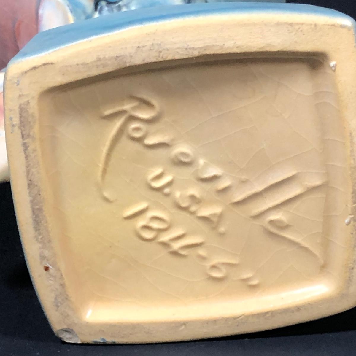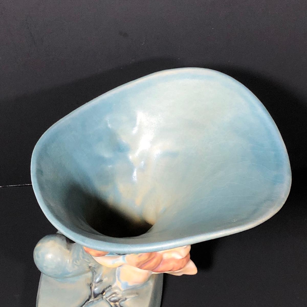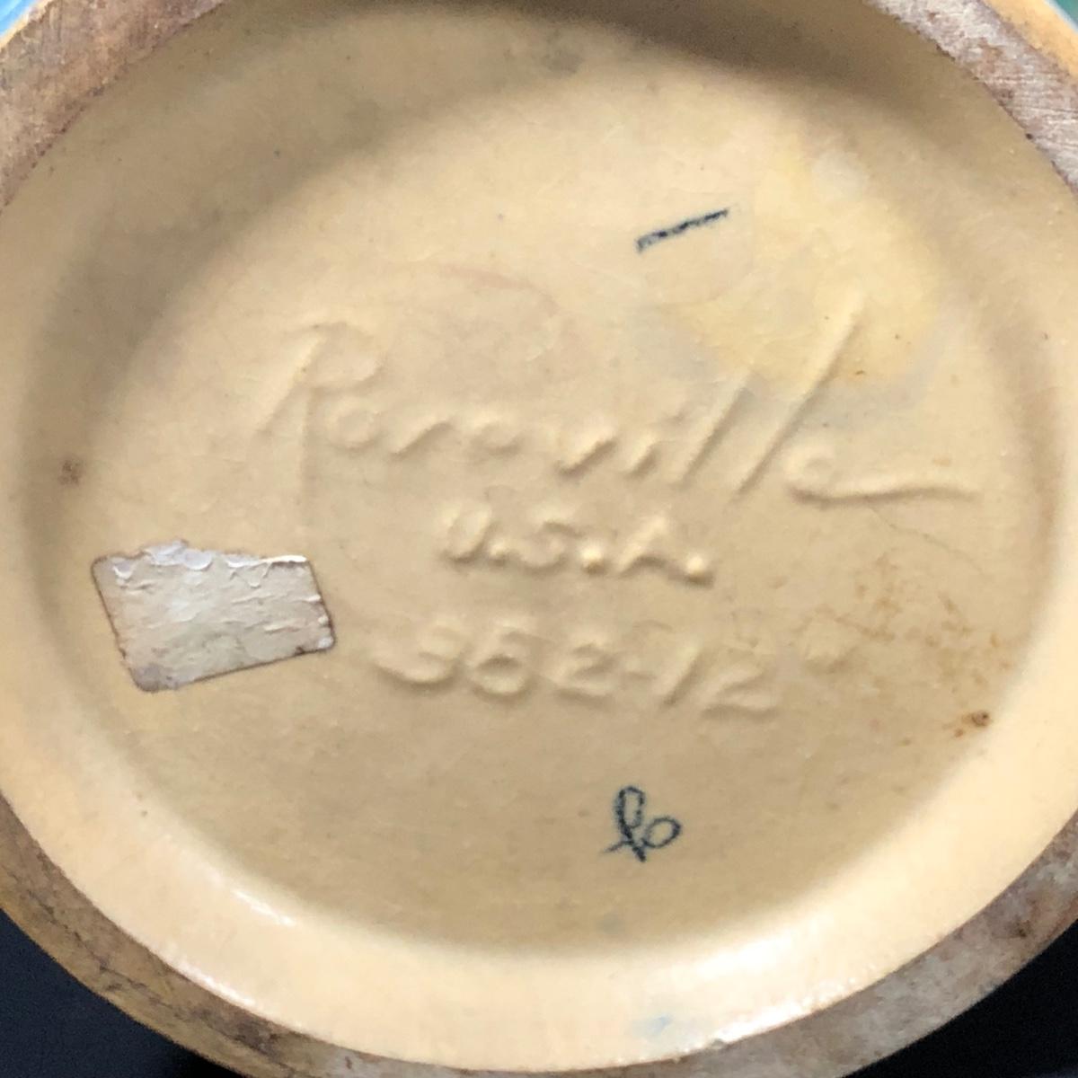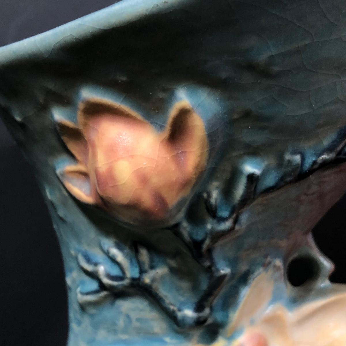 LOT 163F: Vintage Roseville Pottery - 1943 Blue Magnolia (184-6") & Water Lily Handled Basket (382-12")