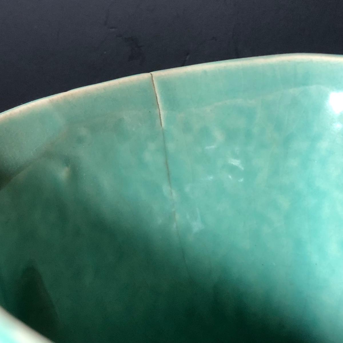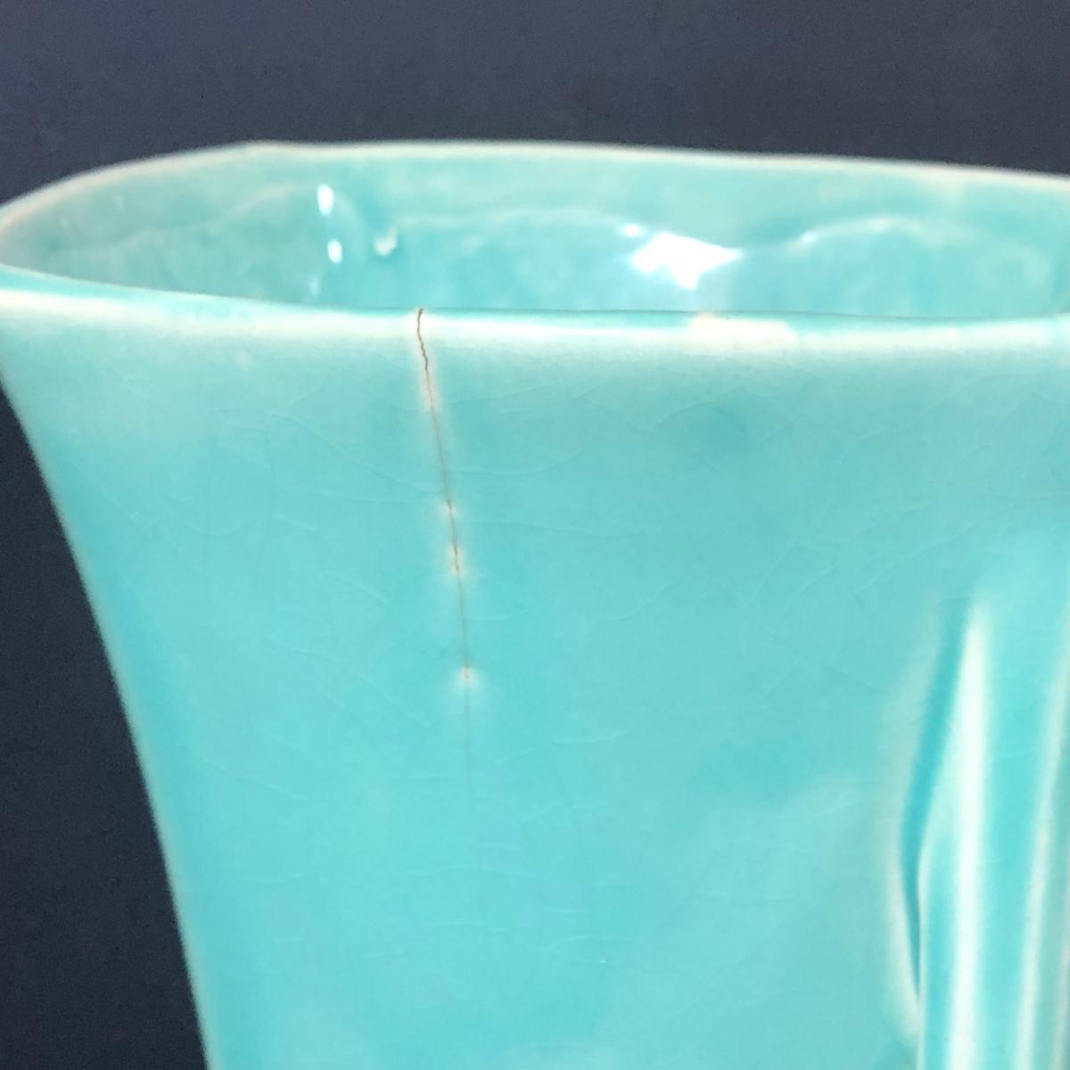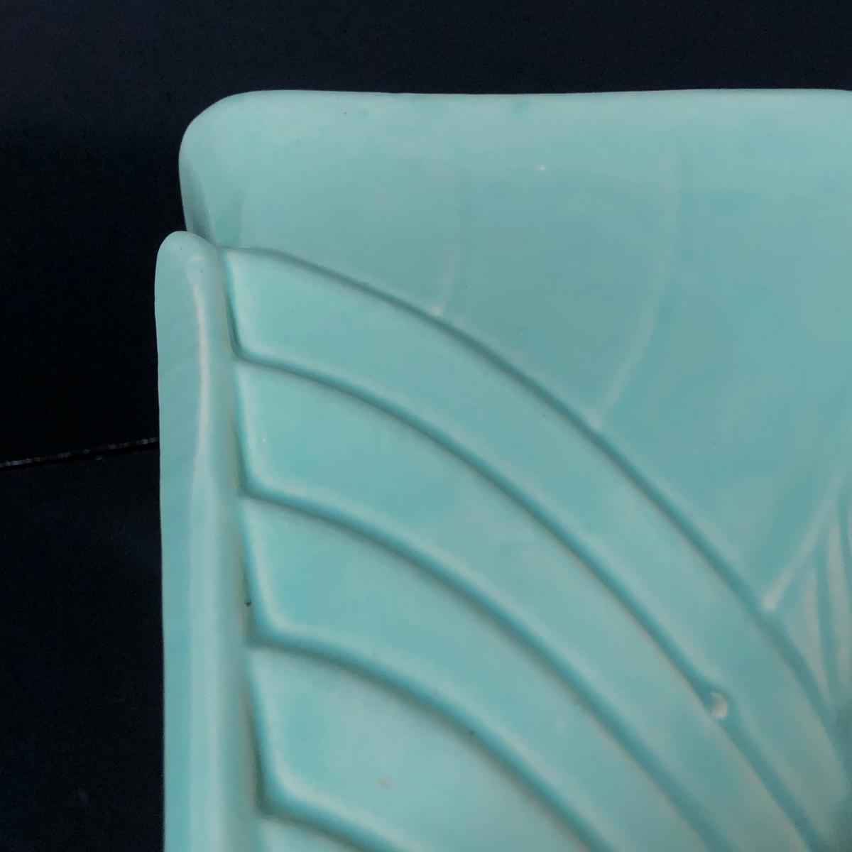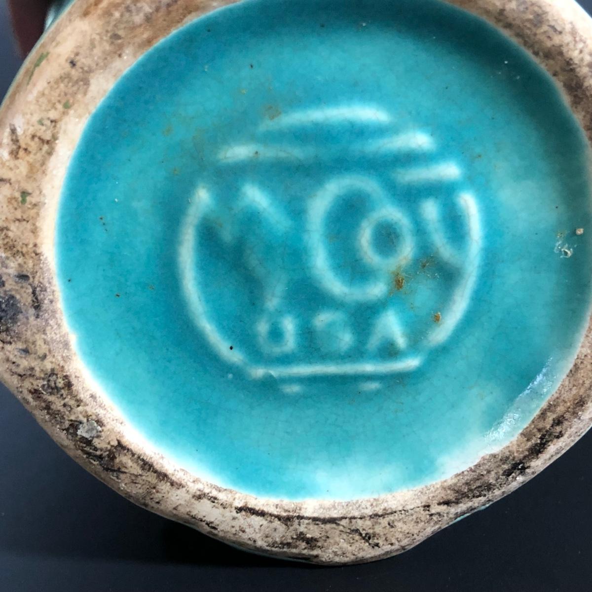 LOT 164F: Vintage McCoy Pottery - 1940s Turquoise Aqua Scroll Vase, Art Deco Vase 270 & Teal Blue Two Handled Square Vase