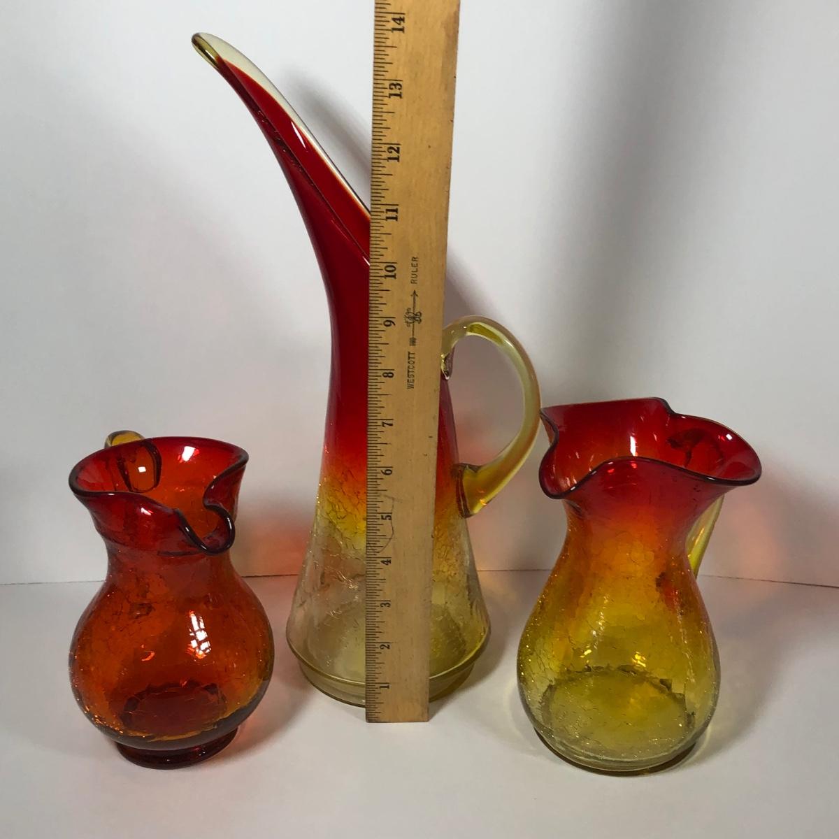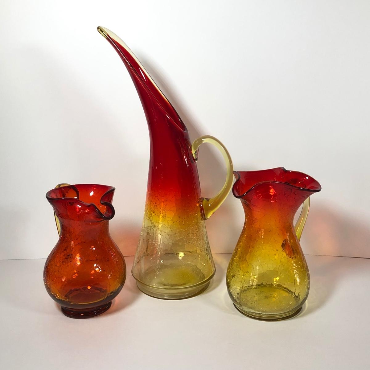 LOT 170F: Vintage Amberina Crackle Glass Pitchers