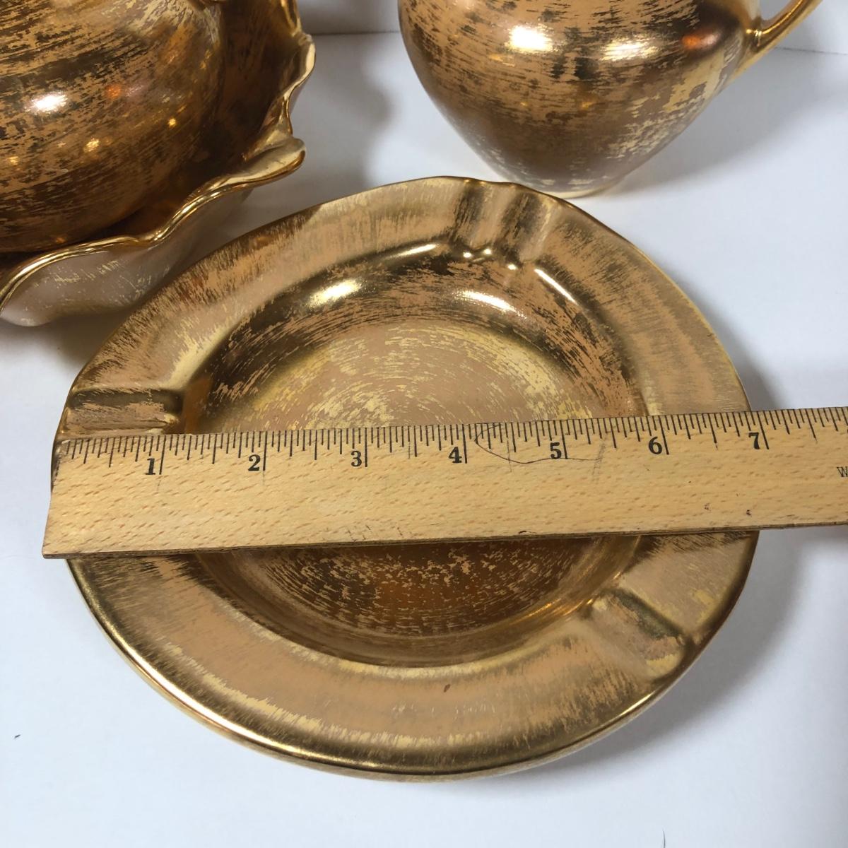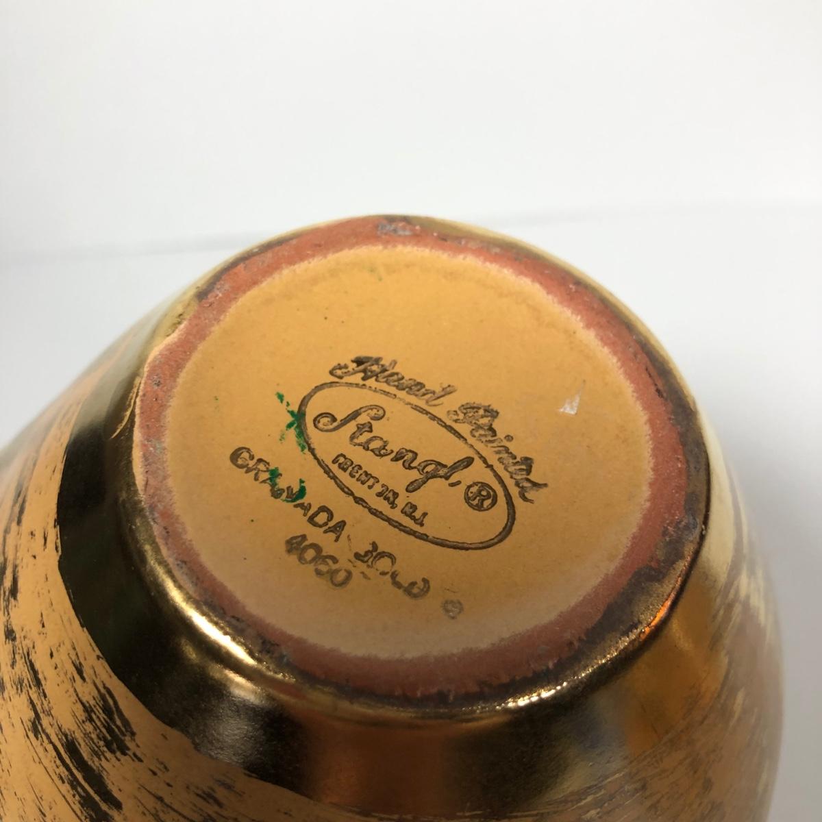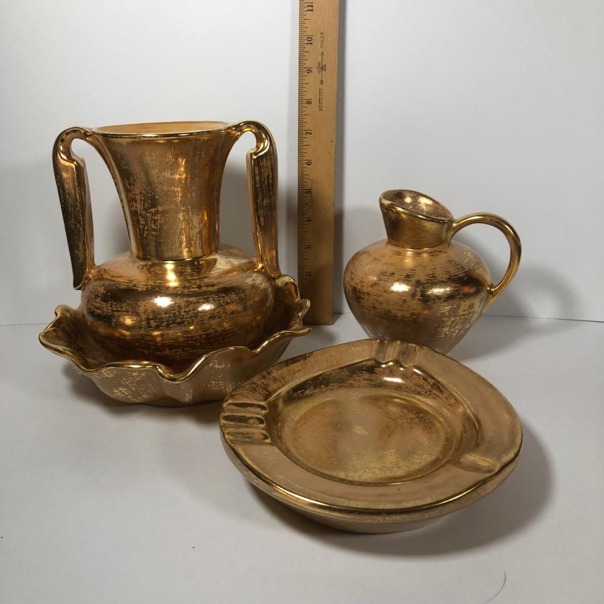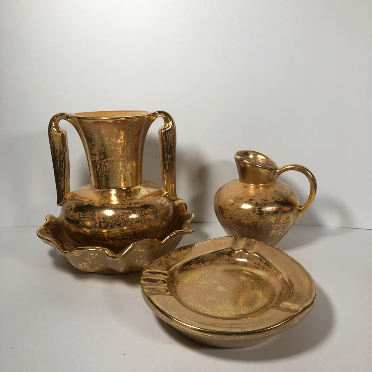 LOT 173F: Vintage 22kt Granada Gold Hand Painted Stangl Pottery - Vase 3103, Bowl 3410-7, Pitcher 4060 & Ash Tray 5058