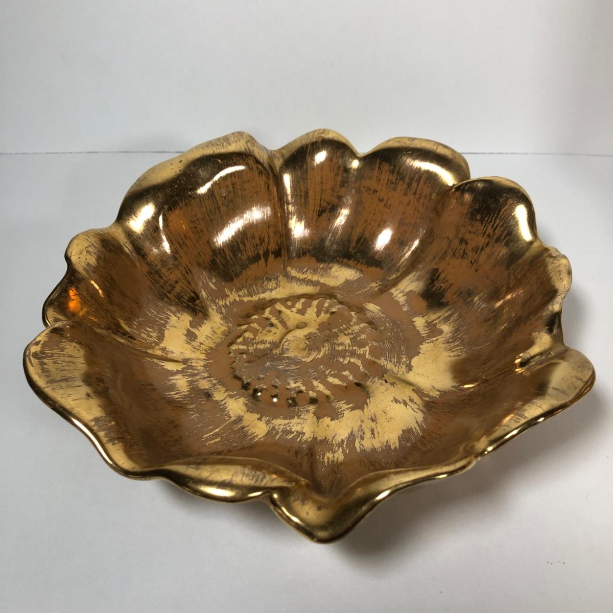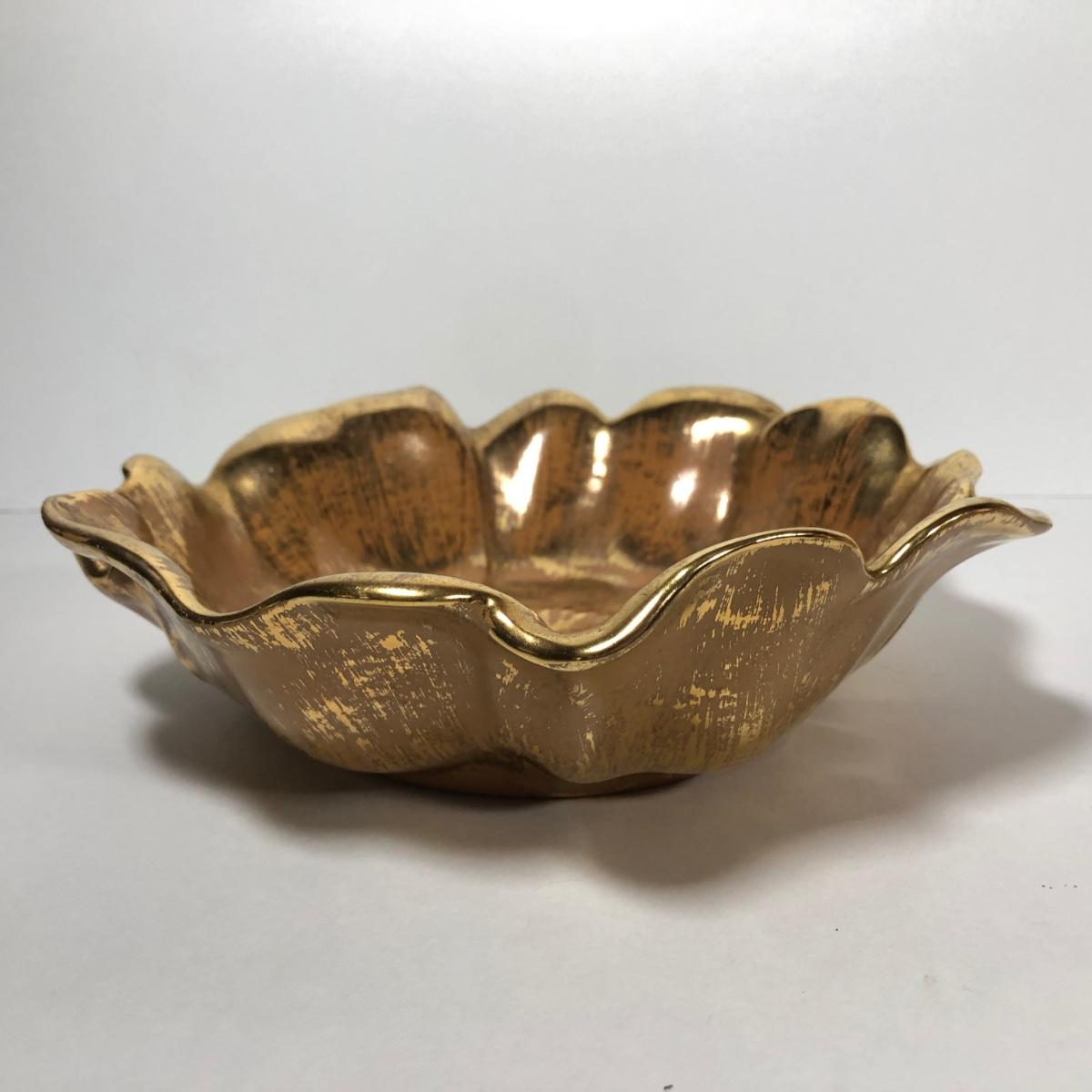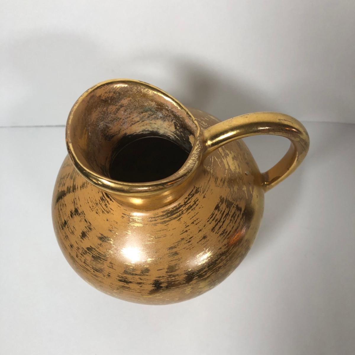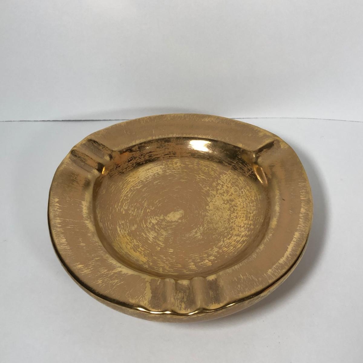 LOT 173F: Vintage 22kt Granada Gold Hand Painted Stangl Pottery - Vase 3103, Bowl 3410-7, Pitcher 4060 & Ash Tray 5058