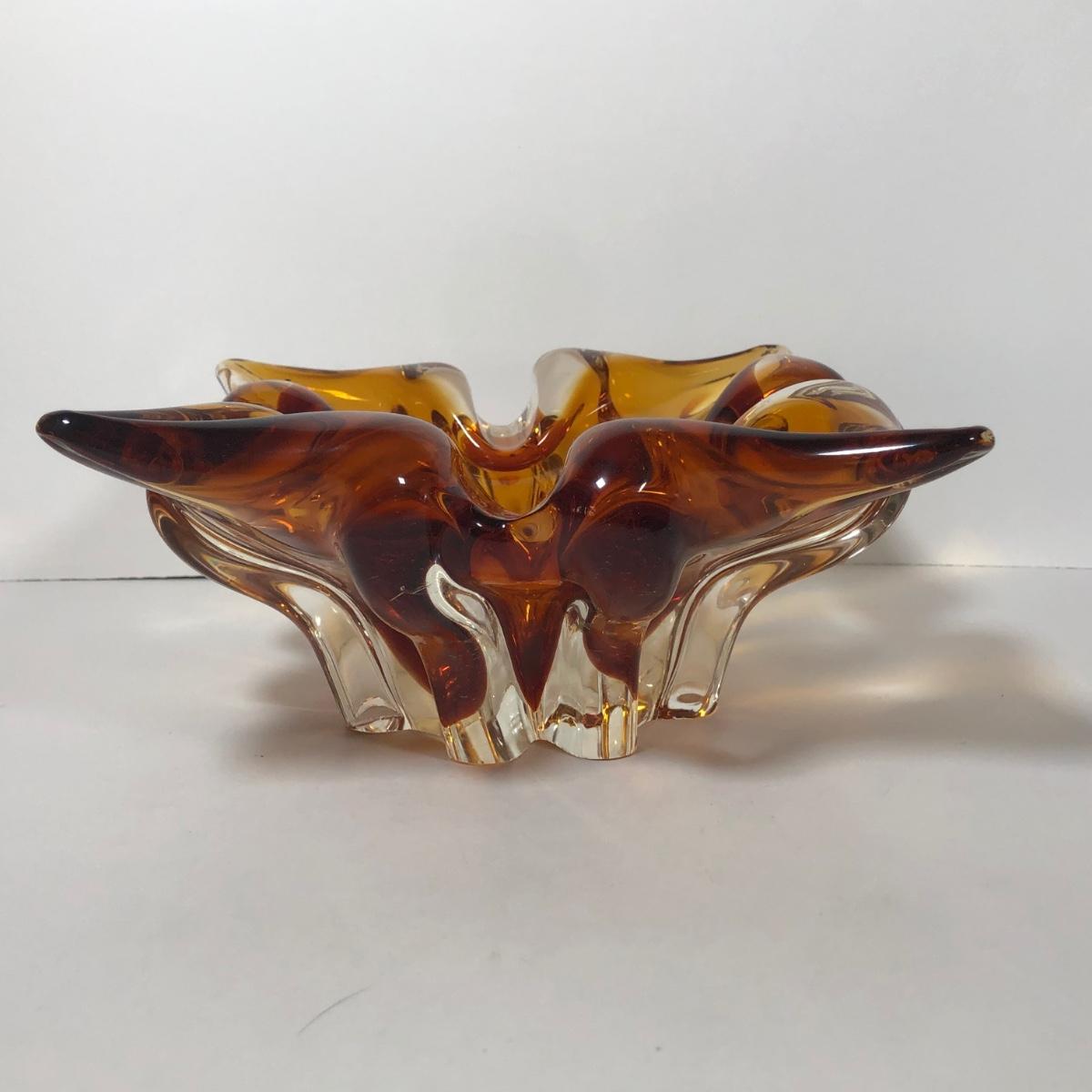LOT 176F: Vintage Amber Art Glass Ash Tray (7")