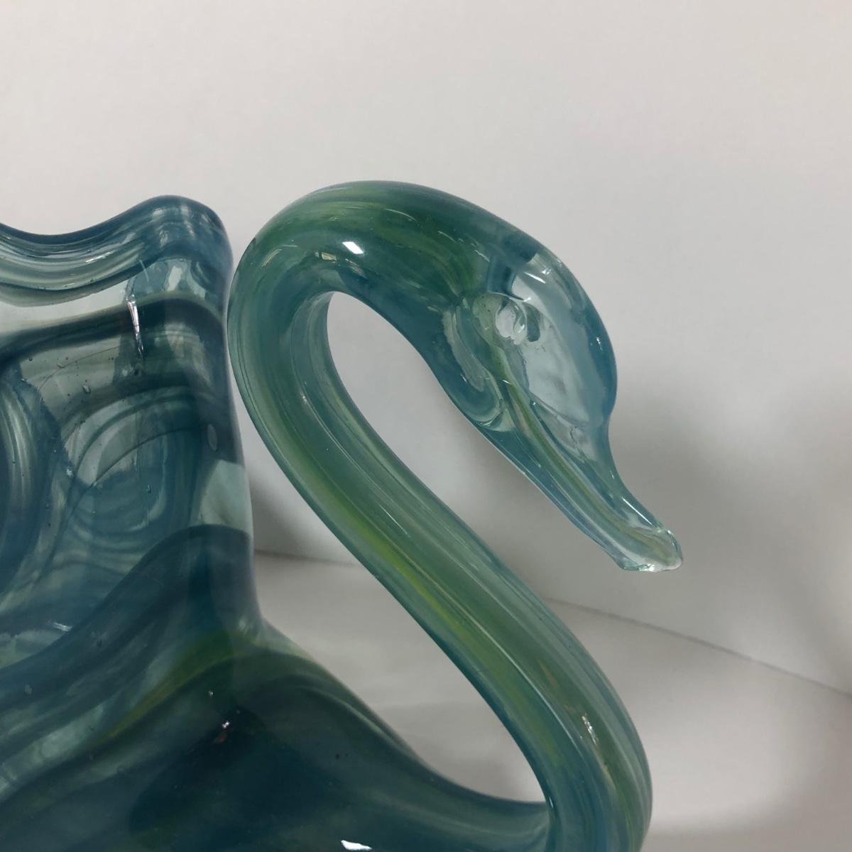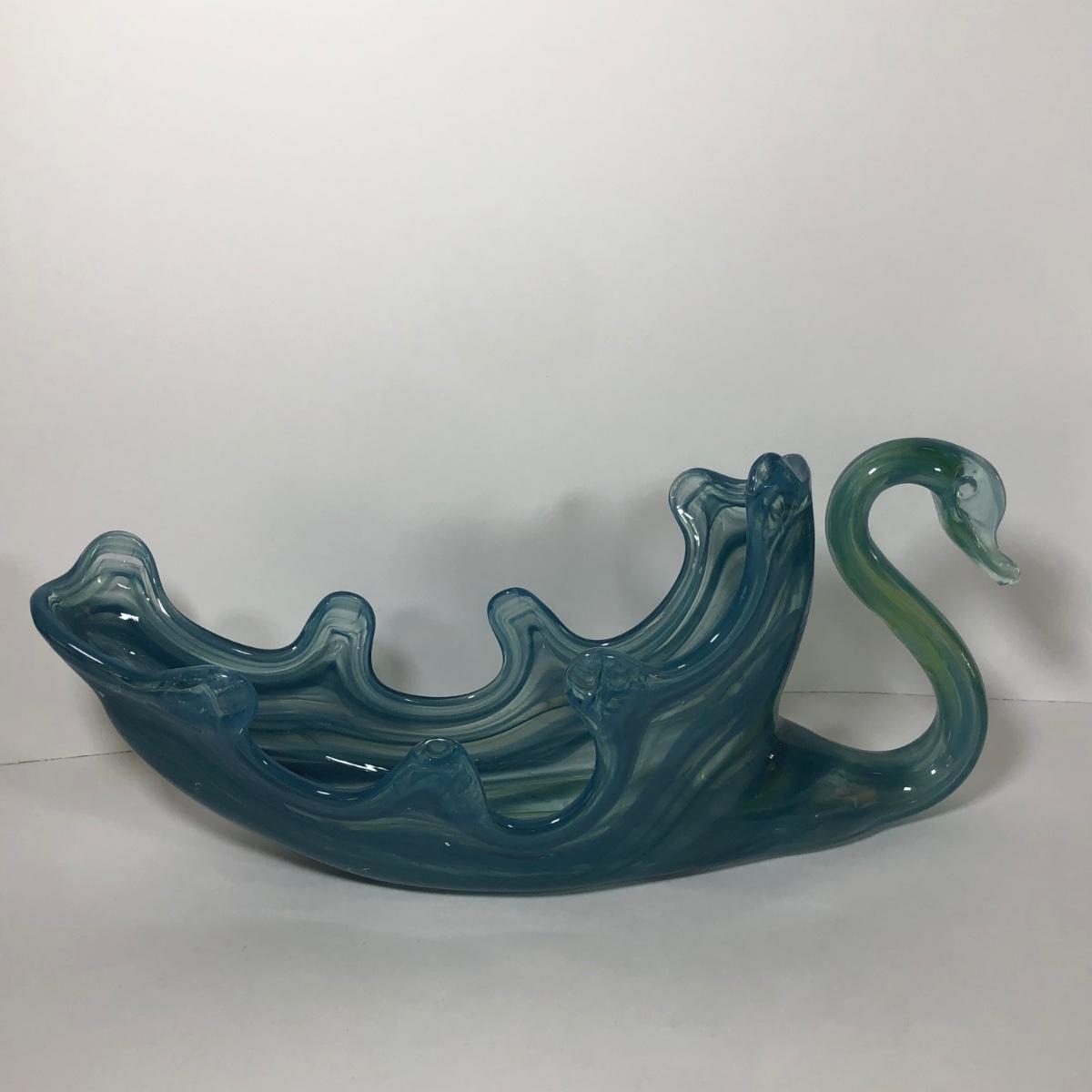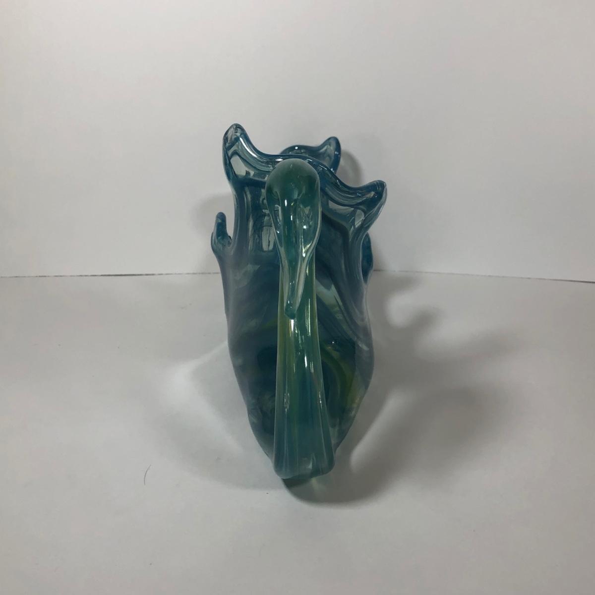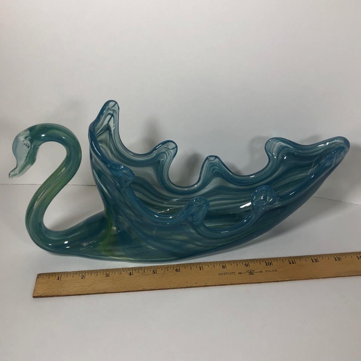 LOT 177F: Mid Century Murano Style Blue & Green Swirl Art Glass Swan & Blue Art Glass Flower