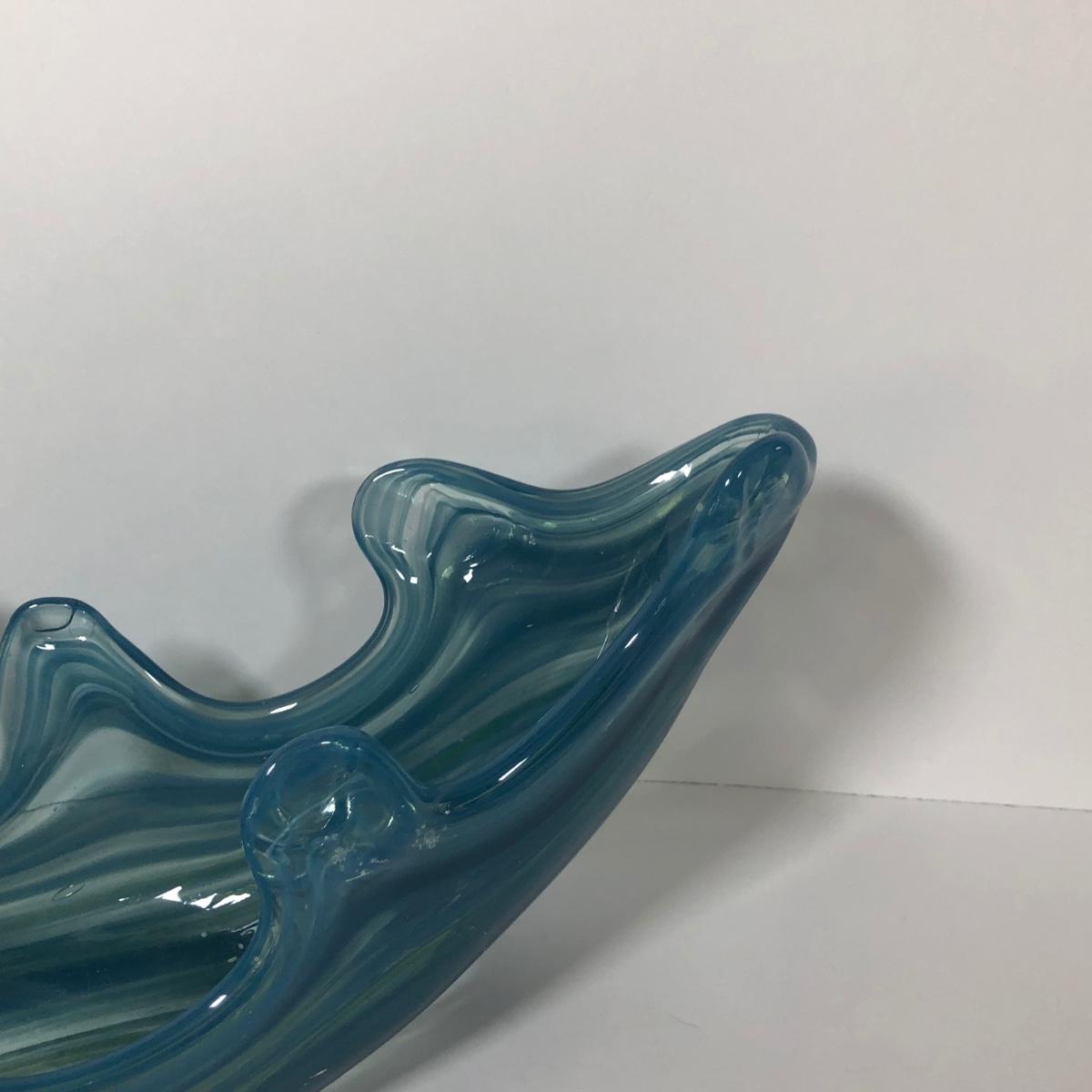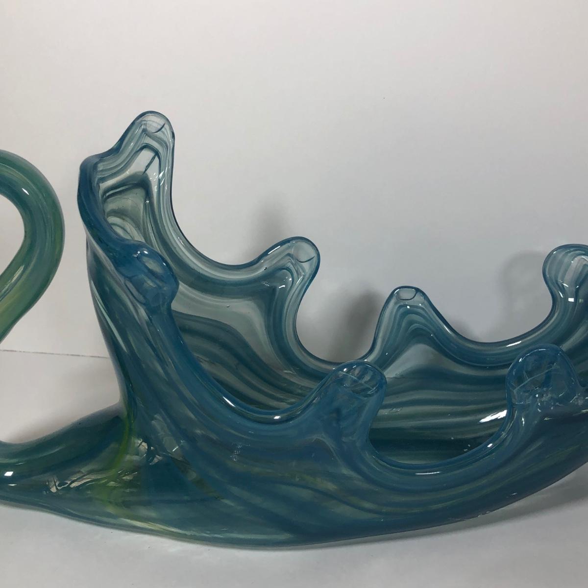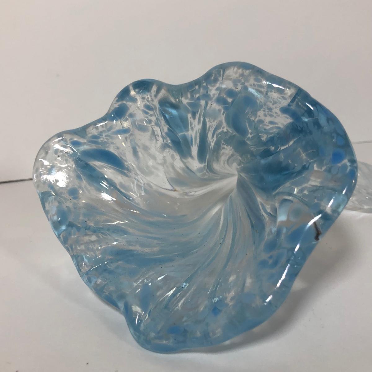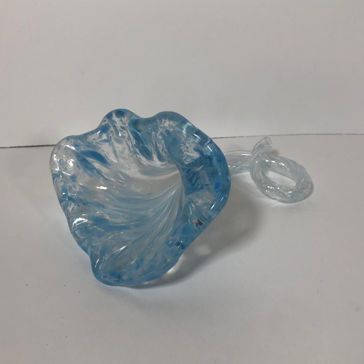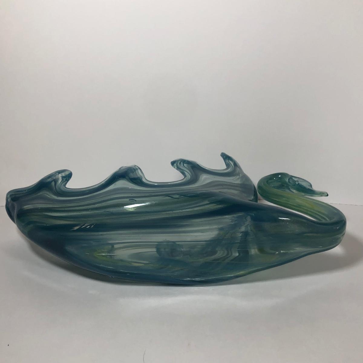 LOT 177F: Mid Century Murano Style Blue & Green Swirl Art Glass Swan & Blue Art Glass Flower