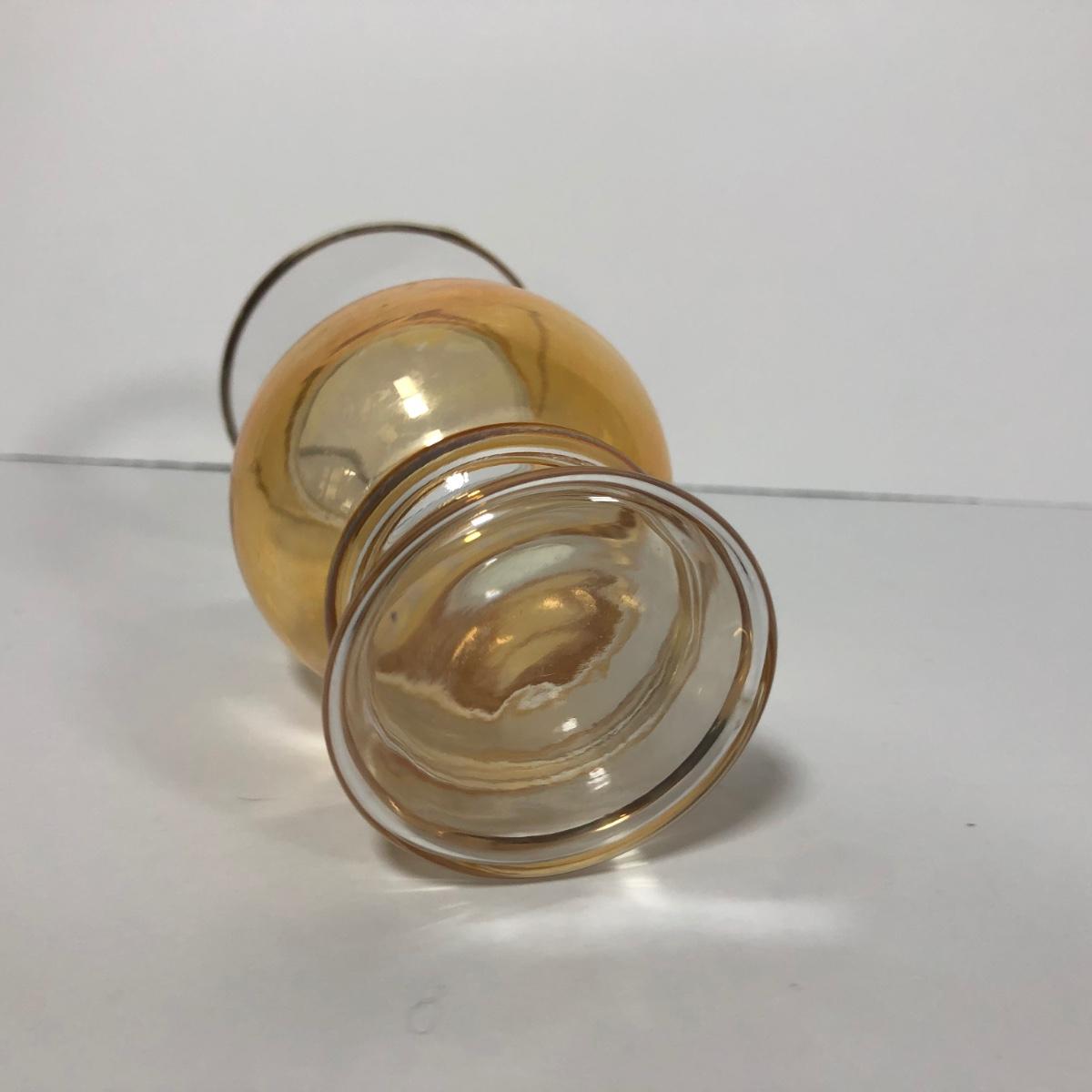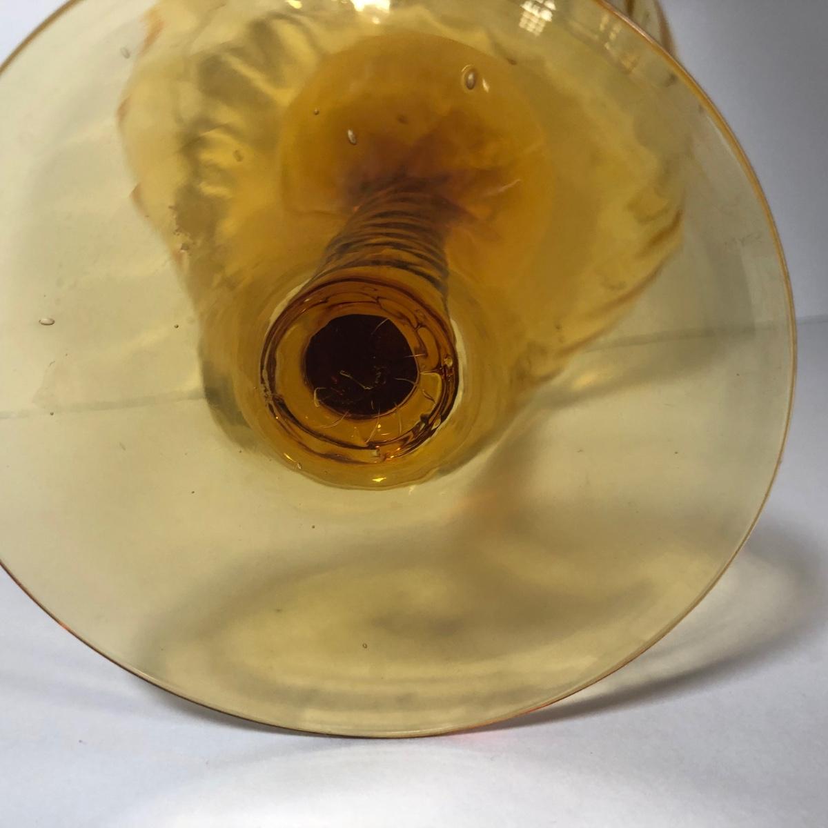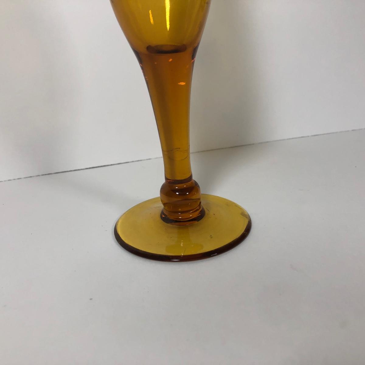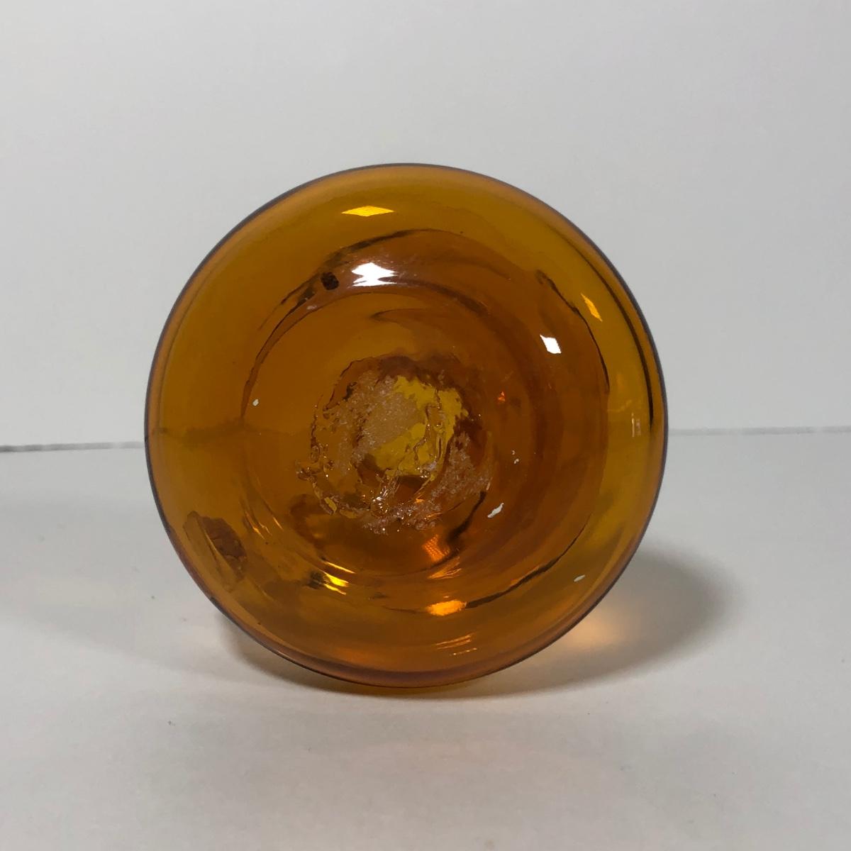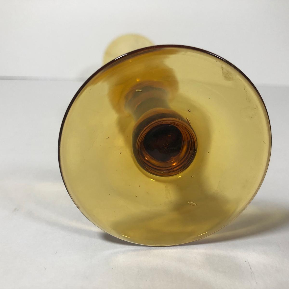LOT 181F: Amber Art Glass Compote Pedestal Candy Dish, MCM Amber Glass Bud Vase, Carnival Glass Iridescent Vase & Wine Cup & More