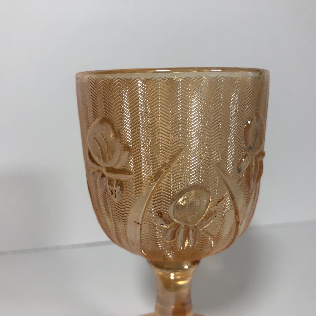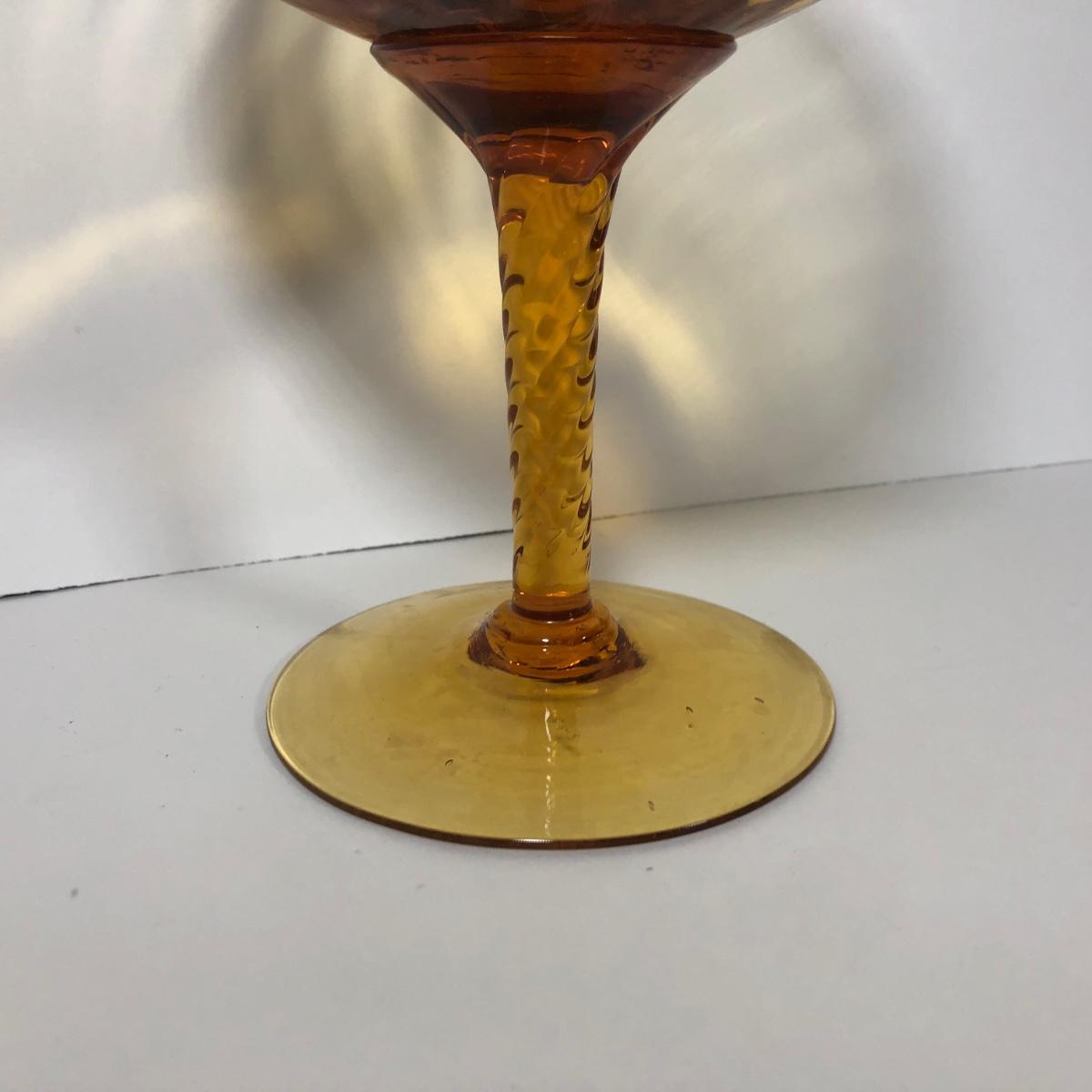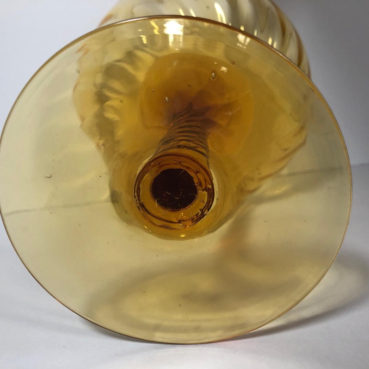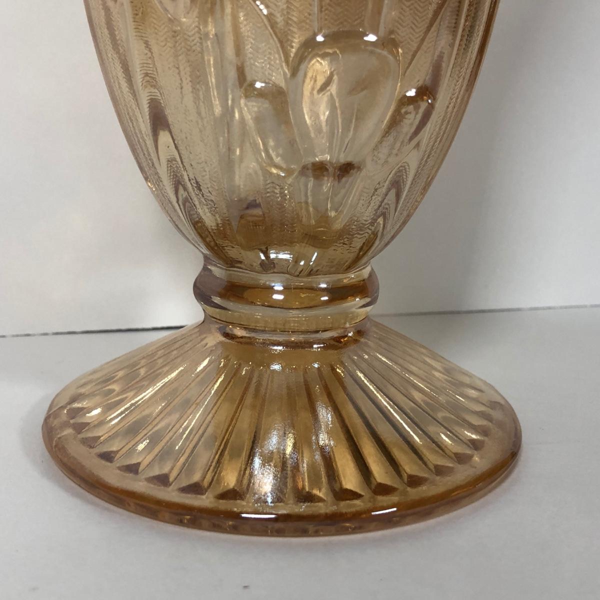 LOT 181F: Amber Art Glass Compote Pedestal Candy Dish, MCM Amber Glass Bud Vase, Carnival Glass Iridescent Vase & Wine Cup & More