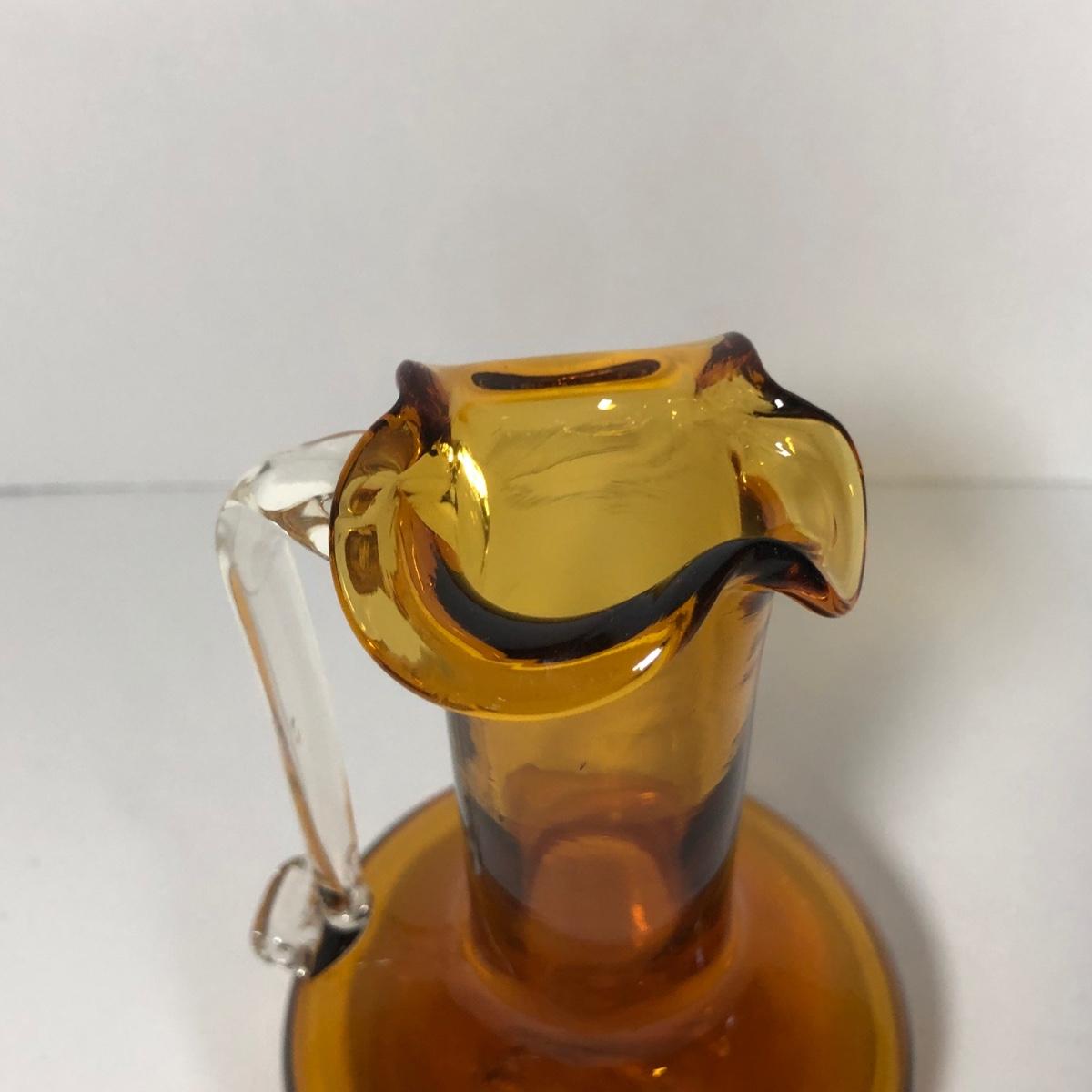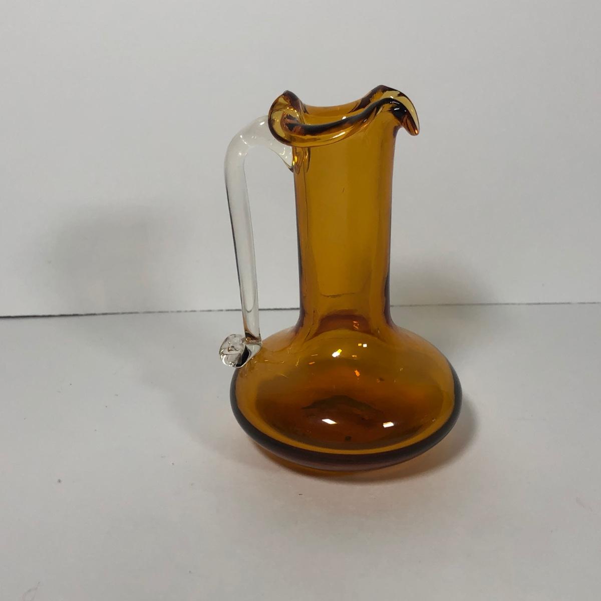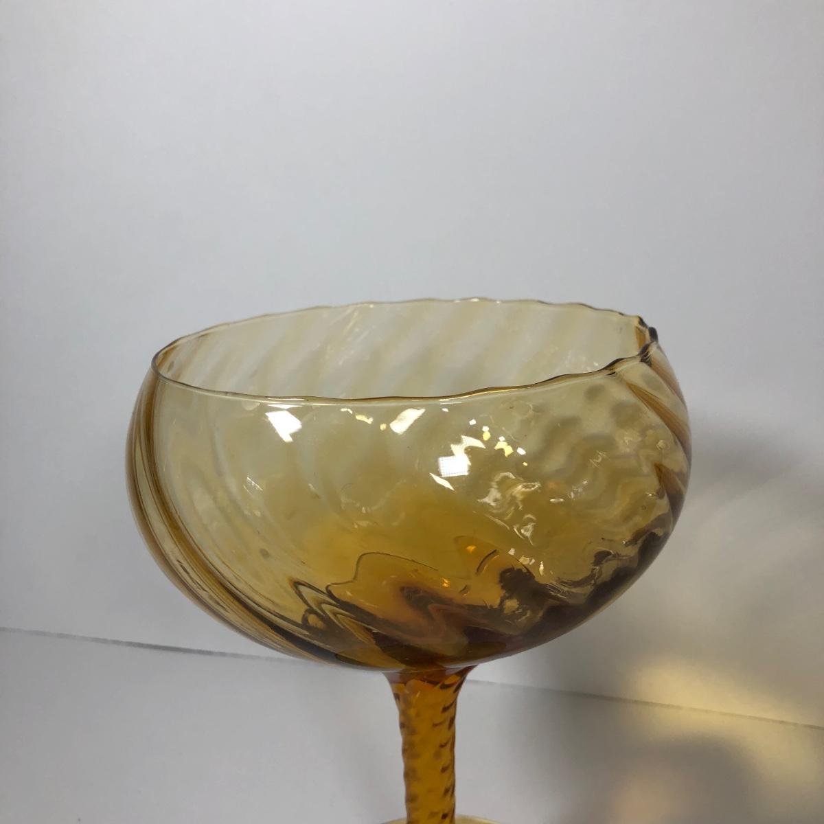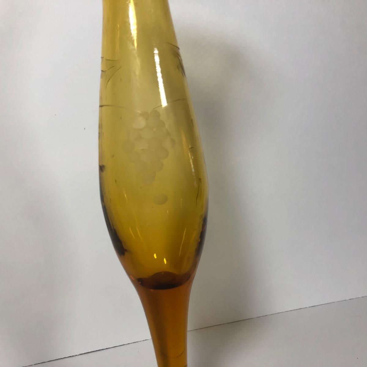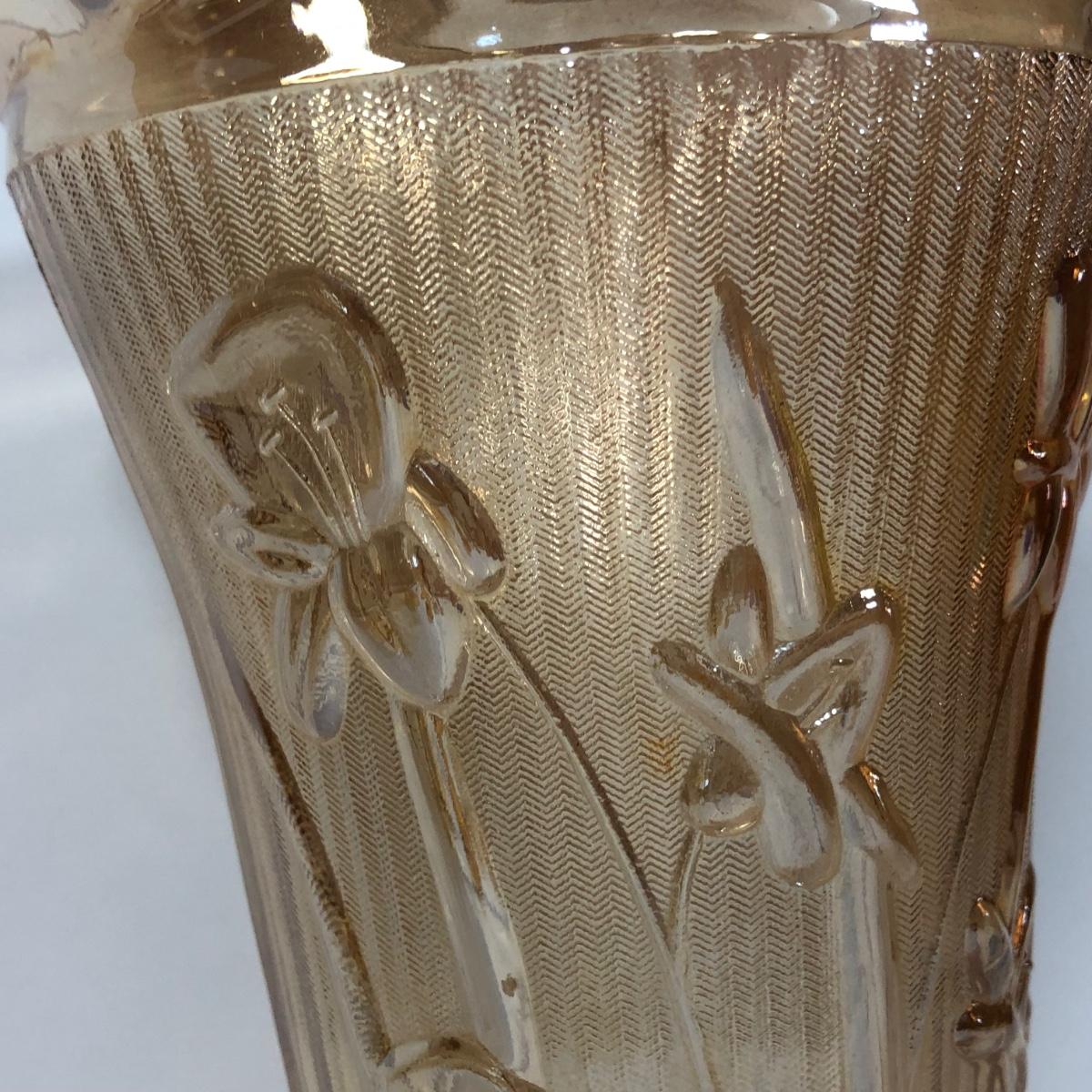 LOT 181F: Amber Art Glass Compote Pedestal Candy Dish, MCM Amber Glass Bud Vase, Carnival Glass Iridescent Vase & Wine Cup & More