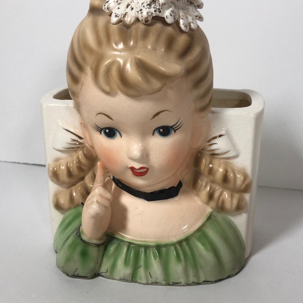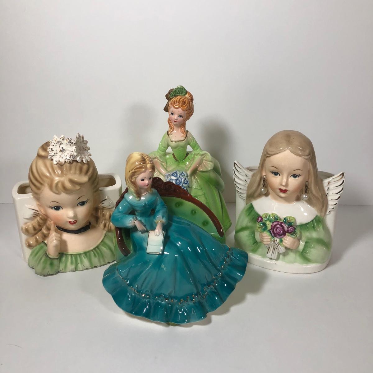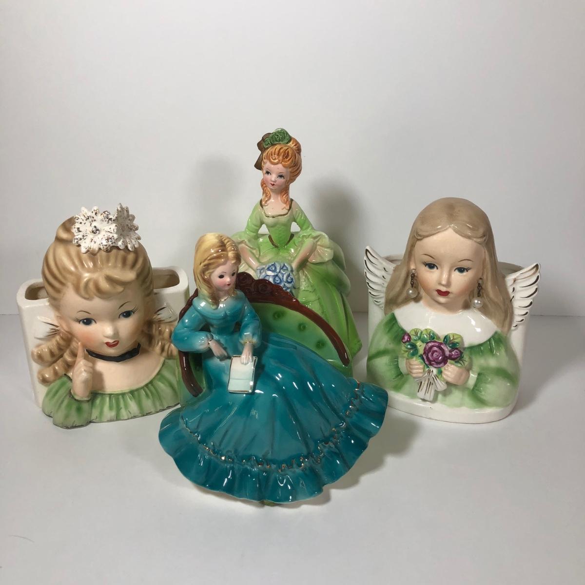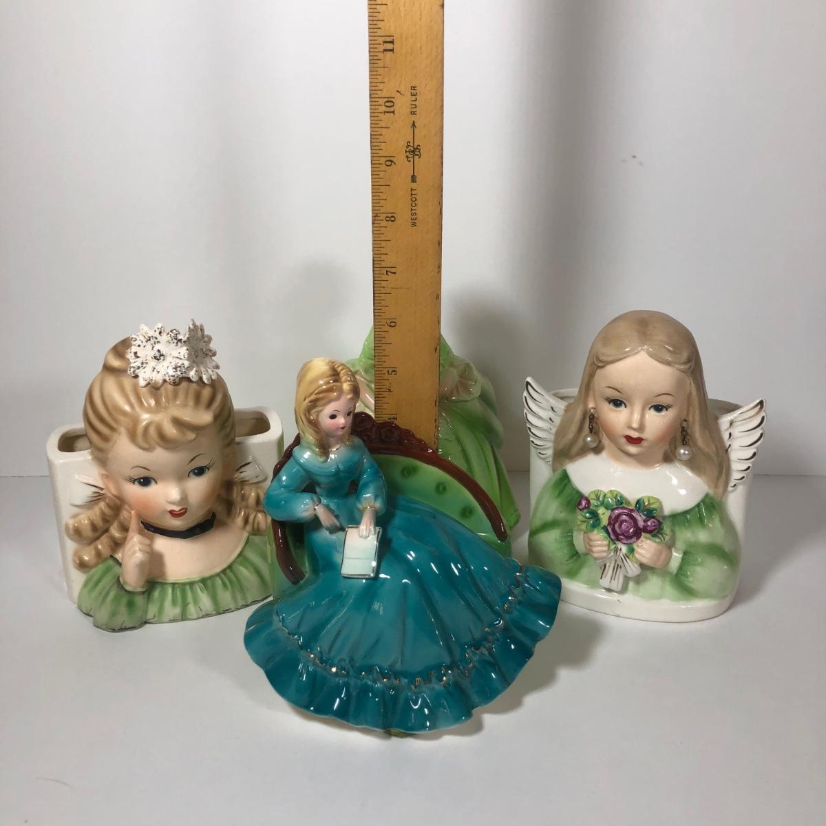 LOT 183F: Vintage Ceramic Planters - Southern Belle Girl, Joseph Originals Reading Girl, Relpo Girl w/ Sausage Curls & Angel Girl w/ Earrings