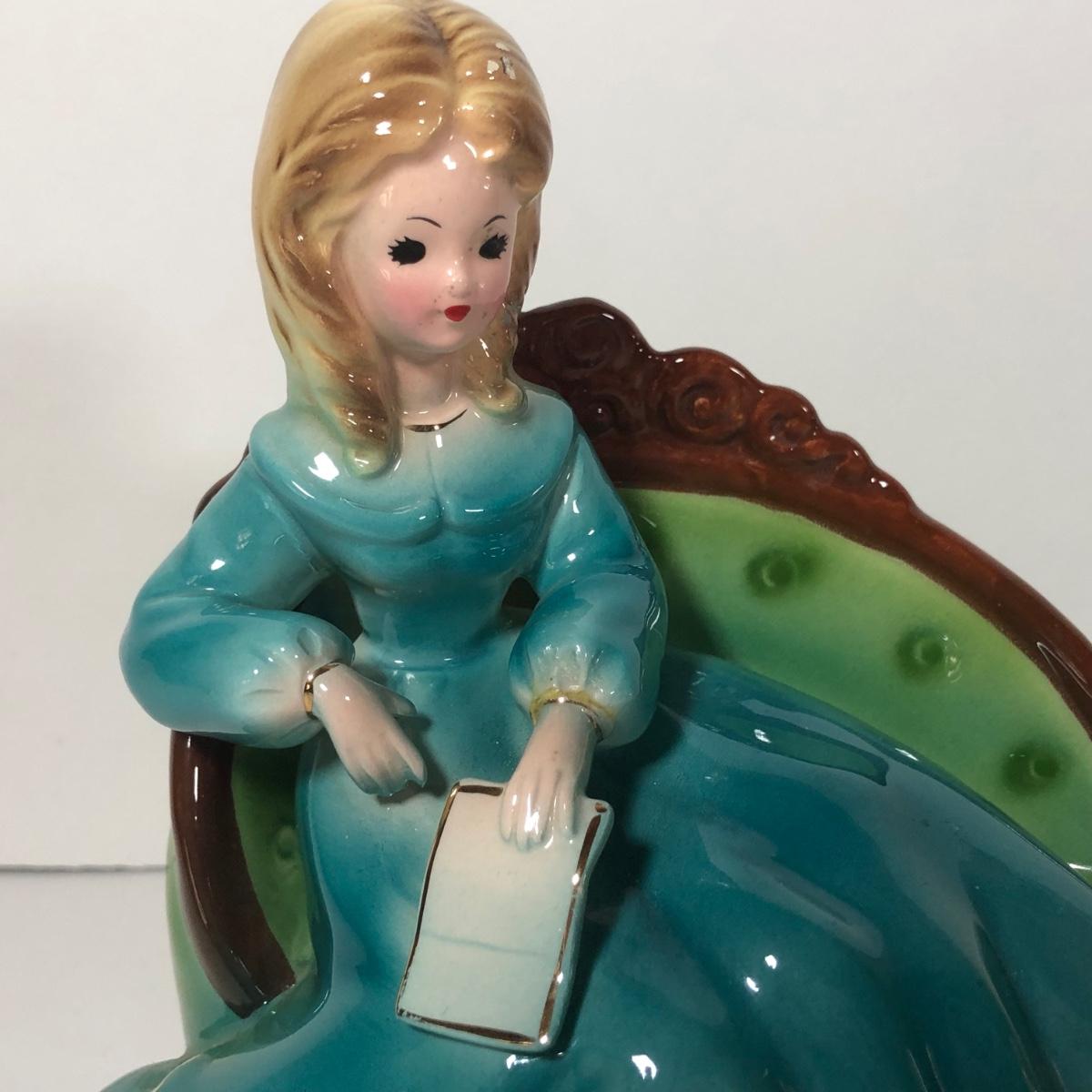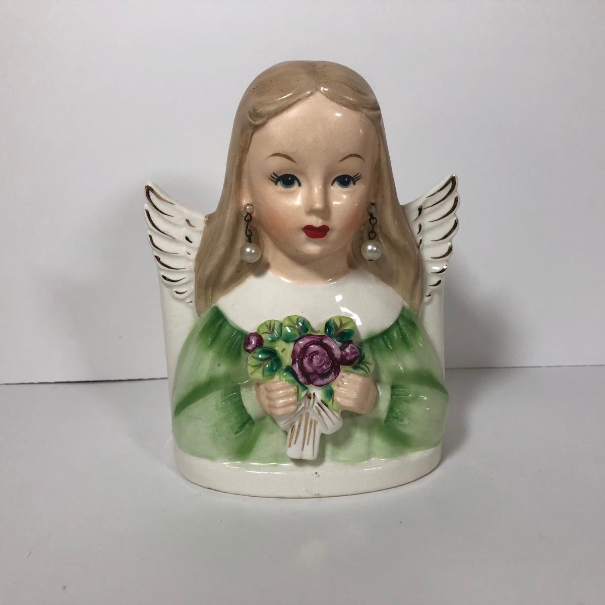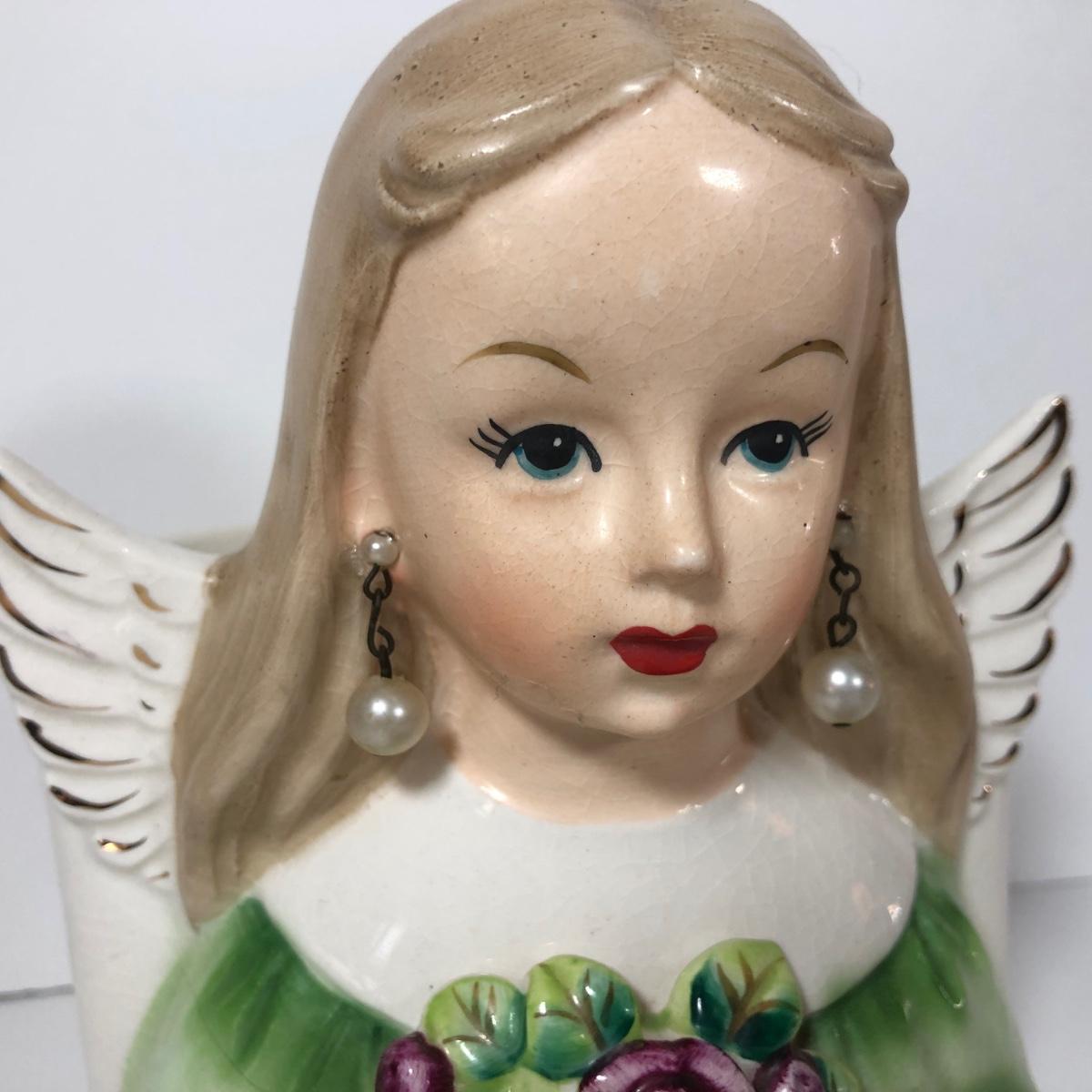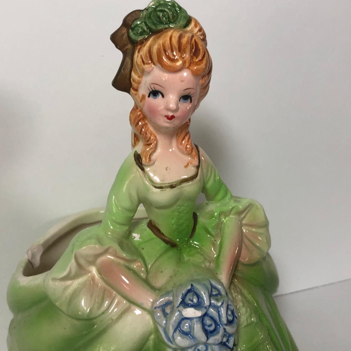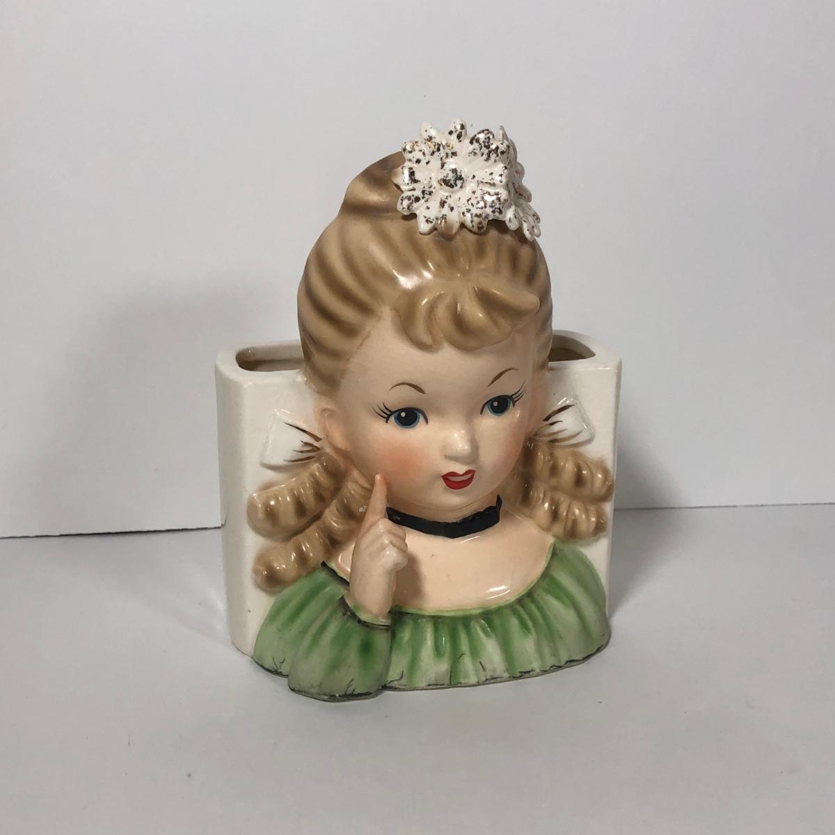 LOT 183F: Vintage Ceramic Planters - Southern Belle Girl, Joseph Originals Reading Girl, Relpo Girl w/ Sausage Curls & Angel Girl w/ Earrings