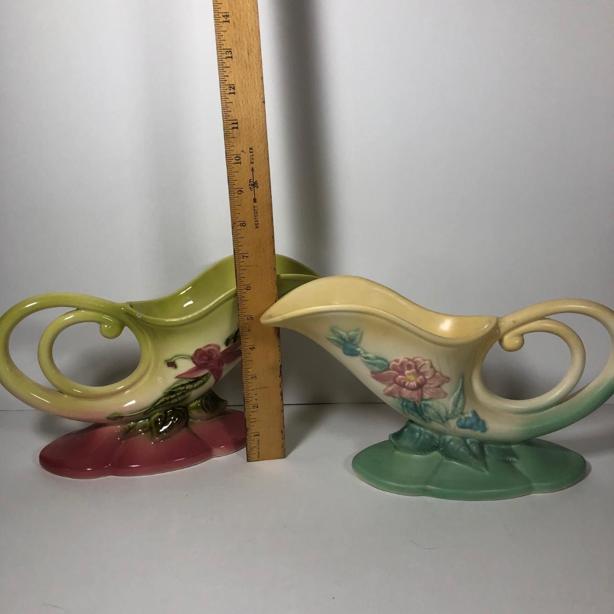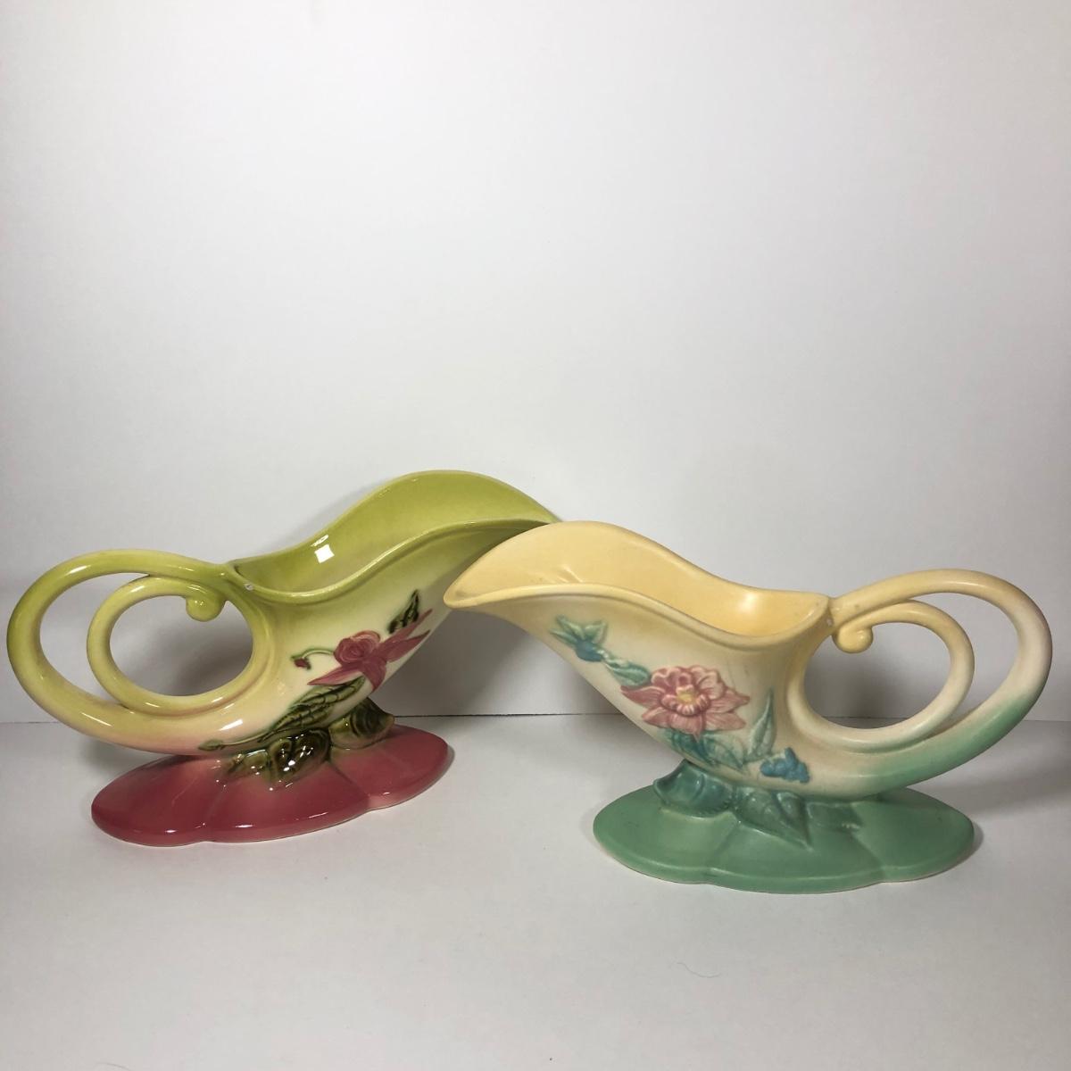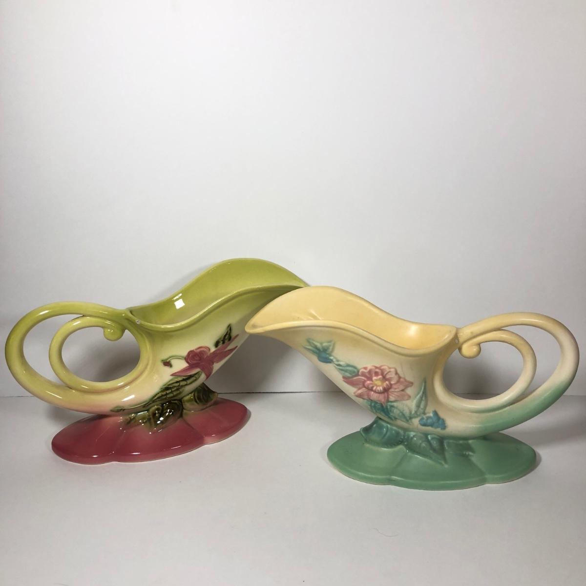 LOT 184F: Vintage Hull Pottery - Woodland Cornucopia Vases W10-11" - Matte & Gloss Finishes