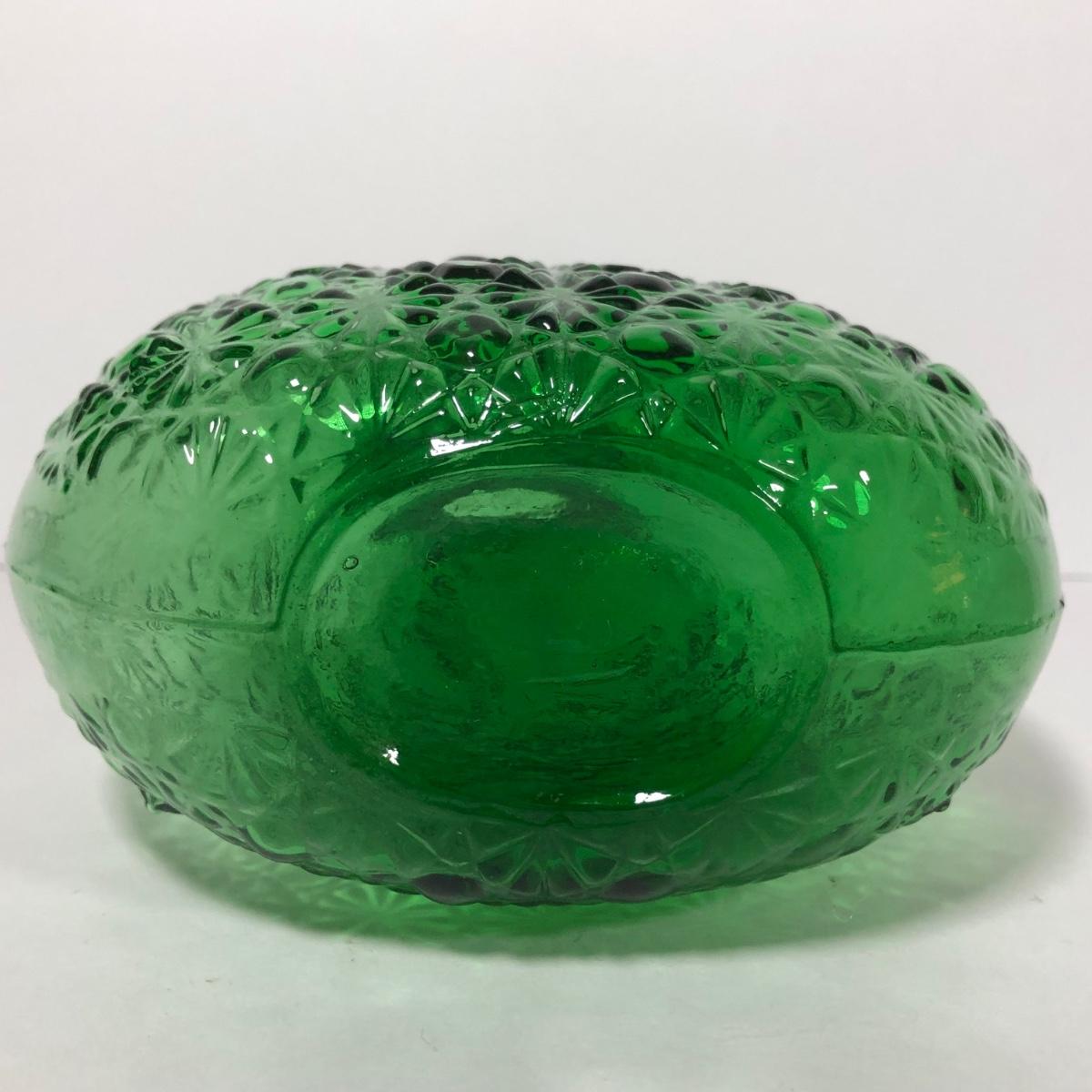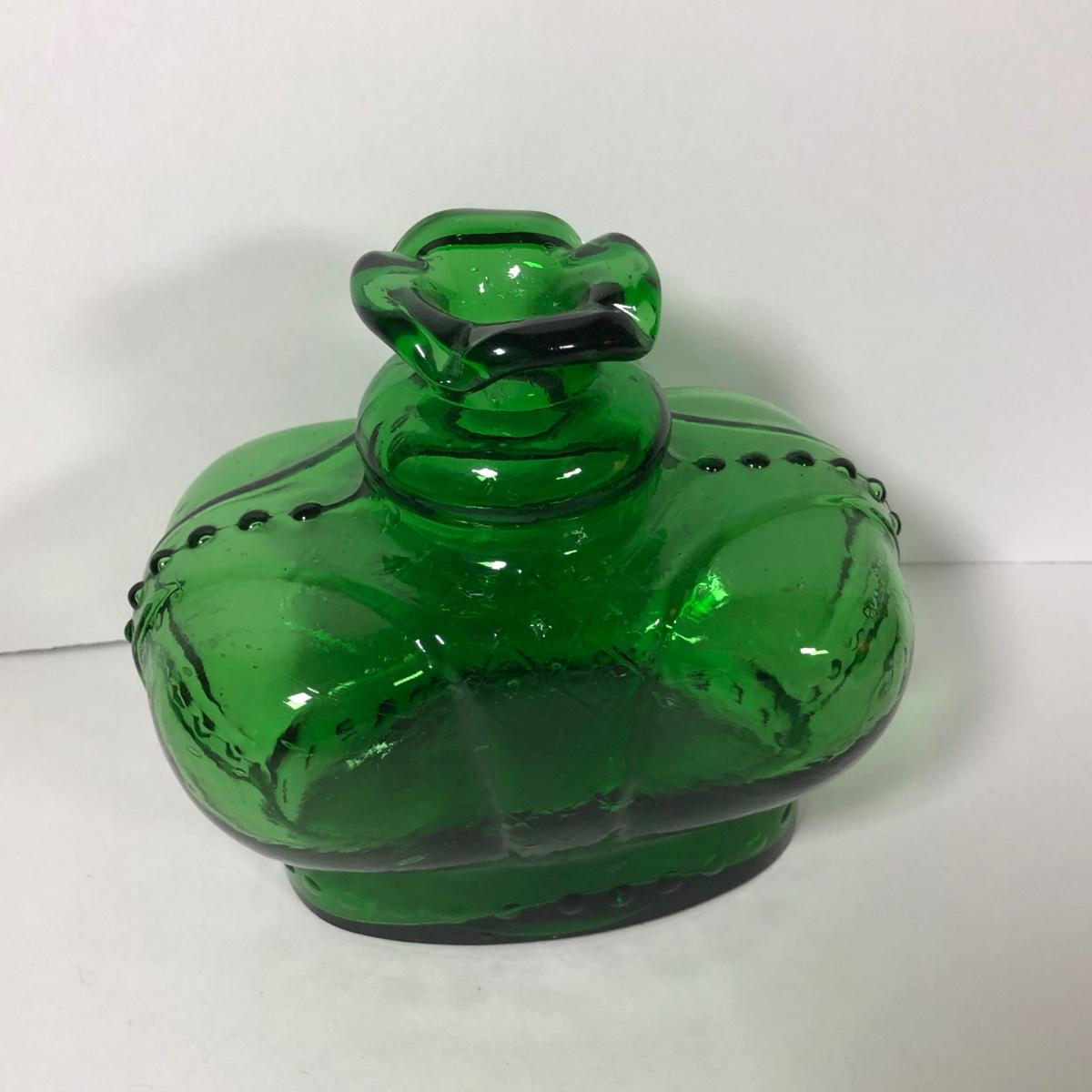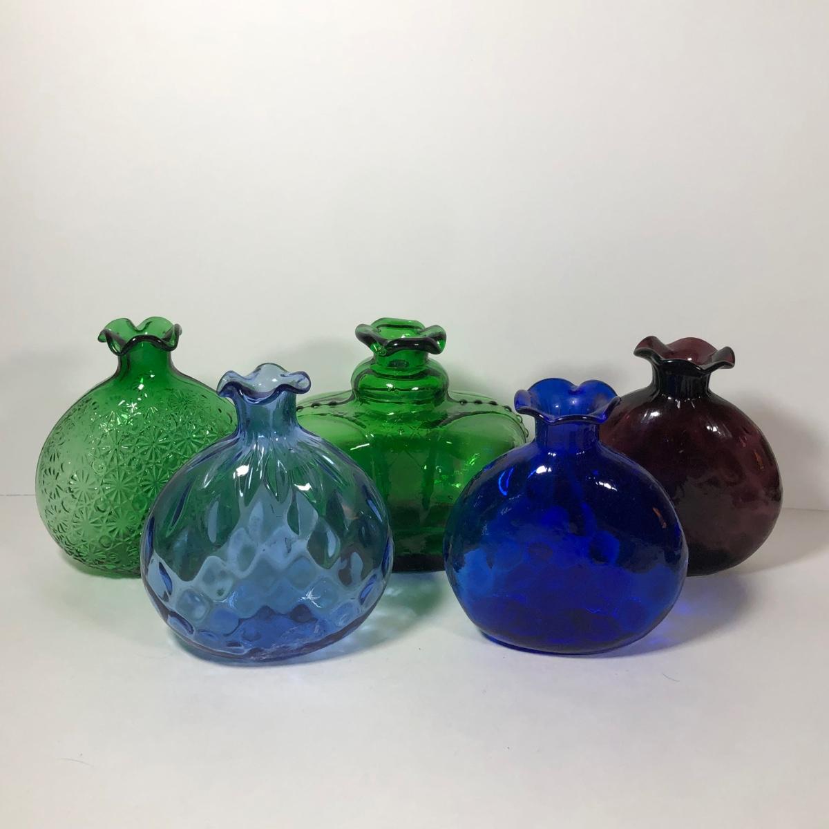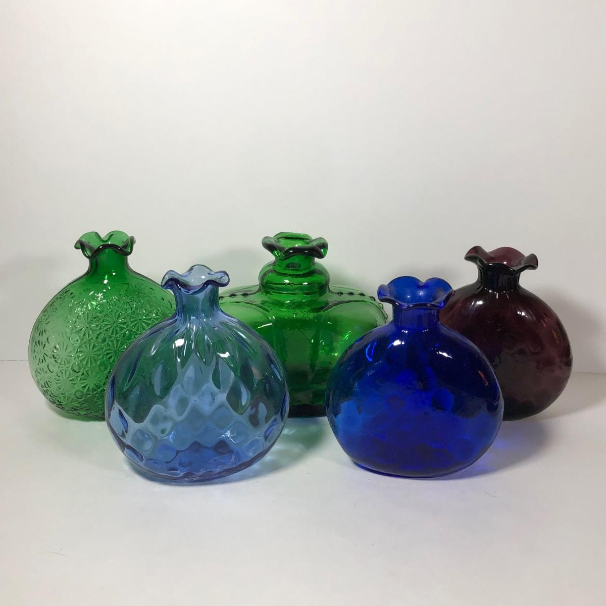 LOT 197F: Vintage Glass Optic Vases, Emerald Green Crown Bottle Vase & Daisy Button Green Glass Vase
