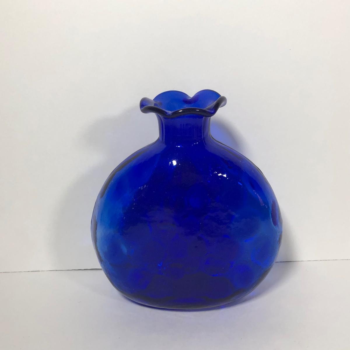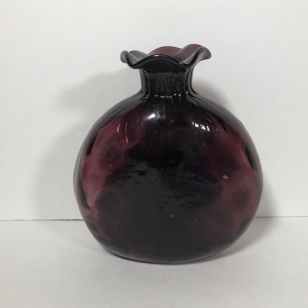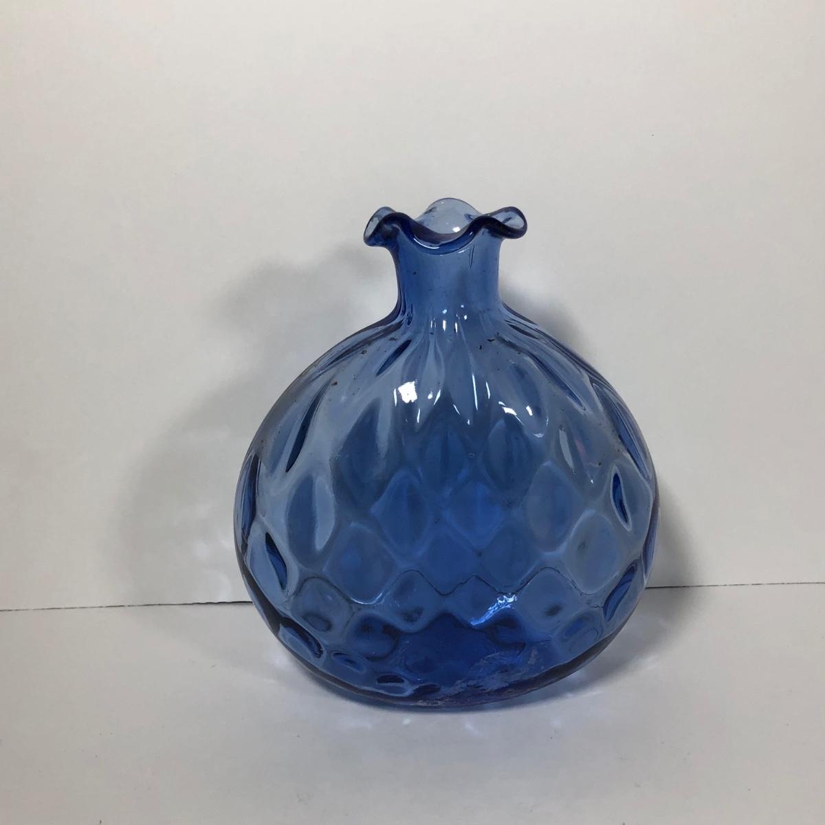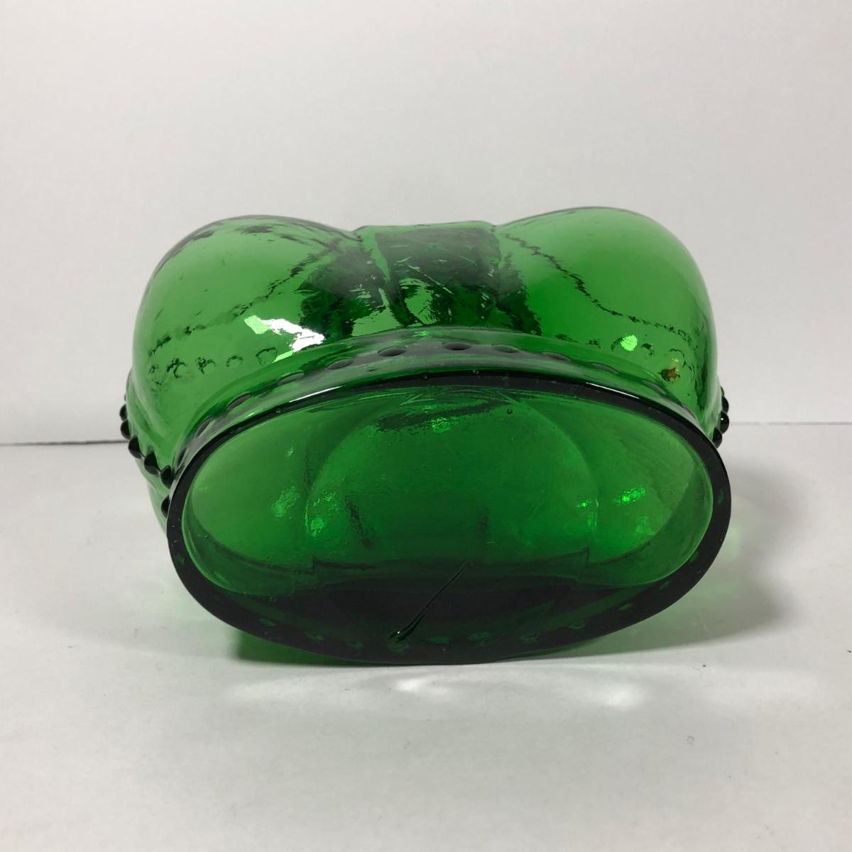 LOT 197F: Vintage Glass Optic Vases, Emerald Green Crown Bottle Vase & Daisy Button Green Glass Vase