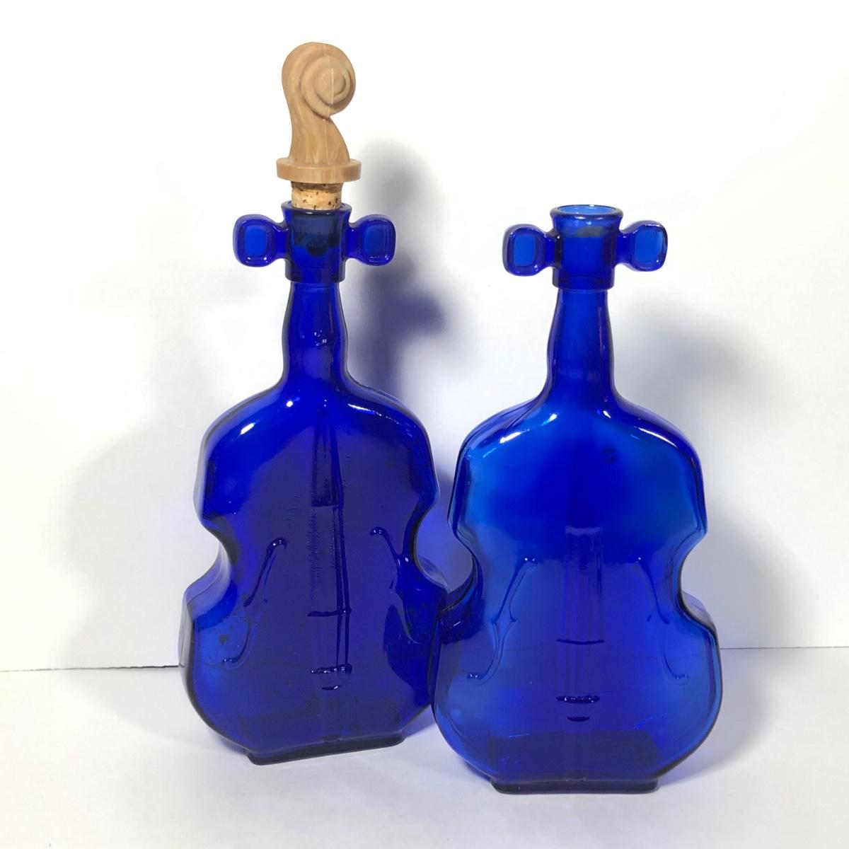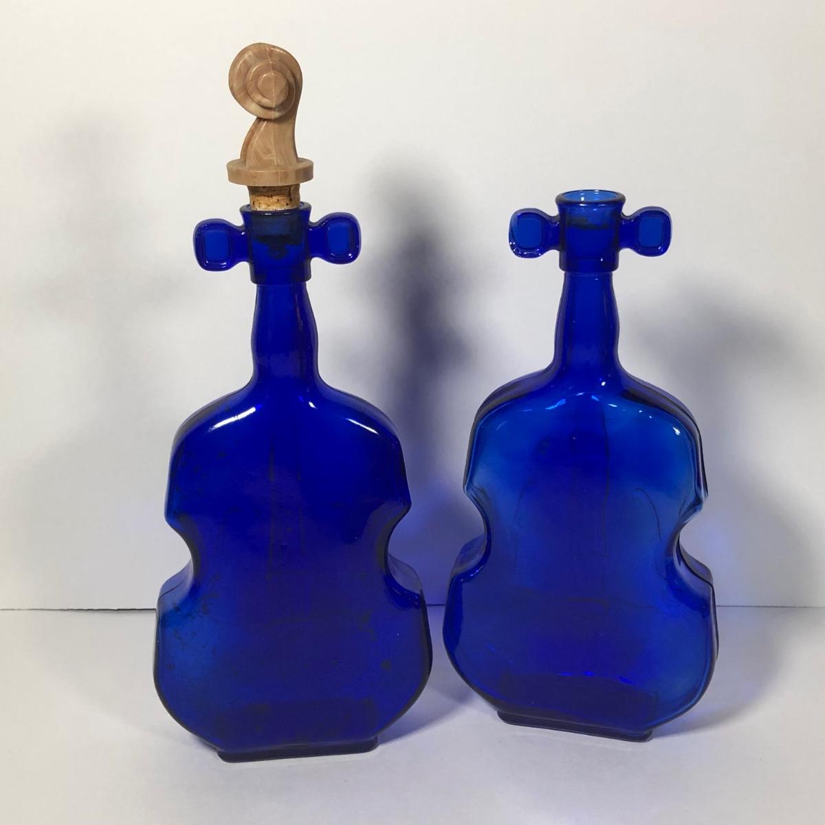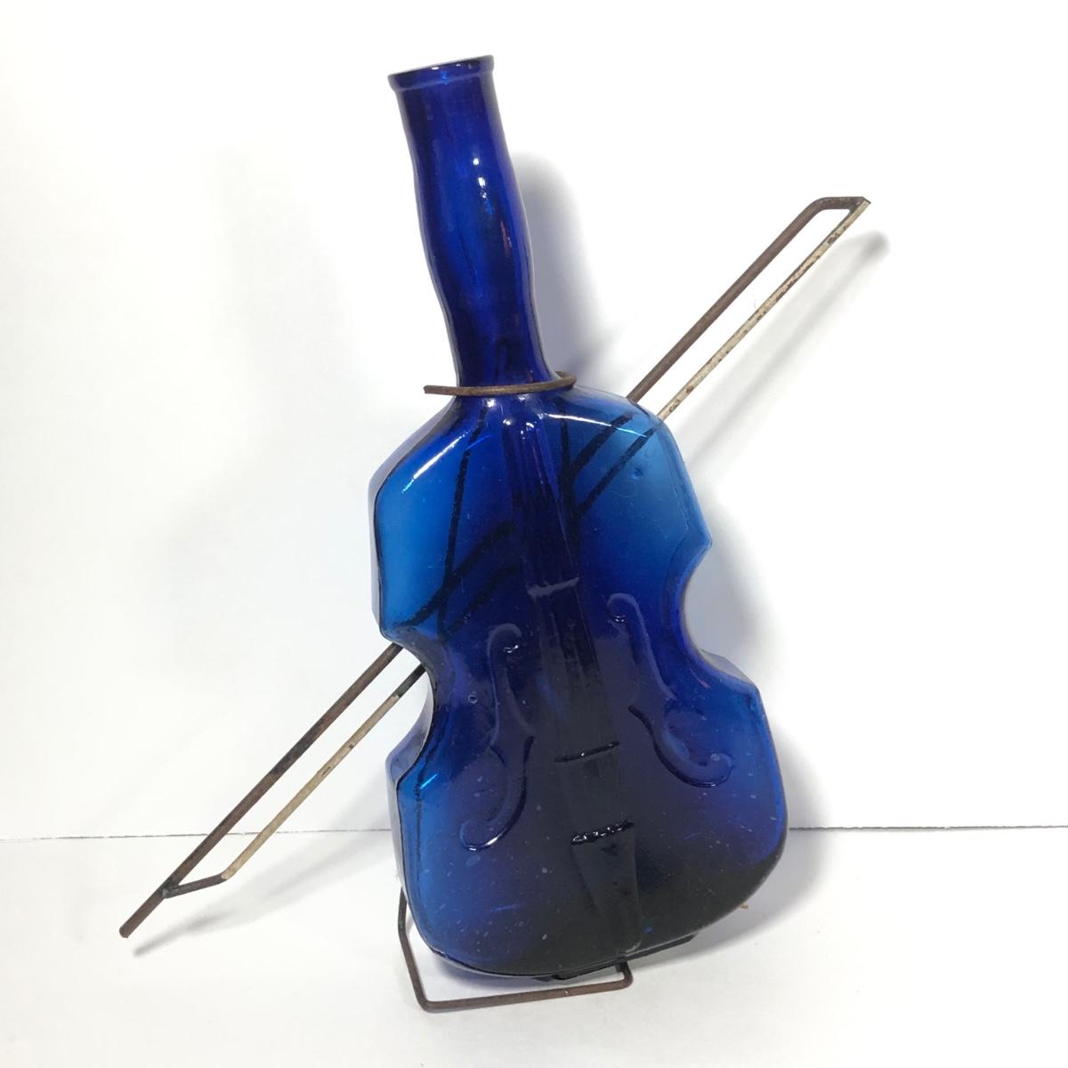 LOT 199F: Vintage Wheaton Glass Violin Bottle & 1940s-50s Cobalt Clevenger Brothers Glass Violin