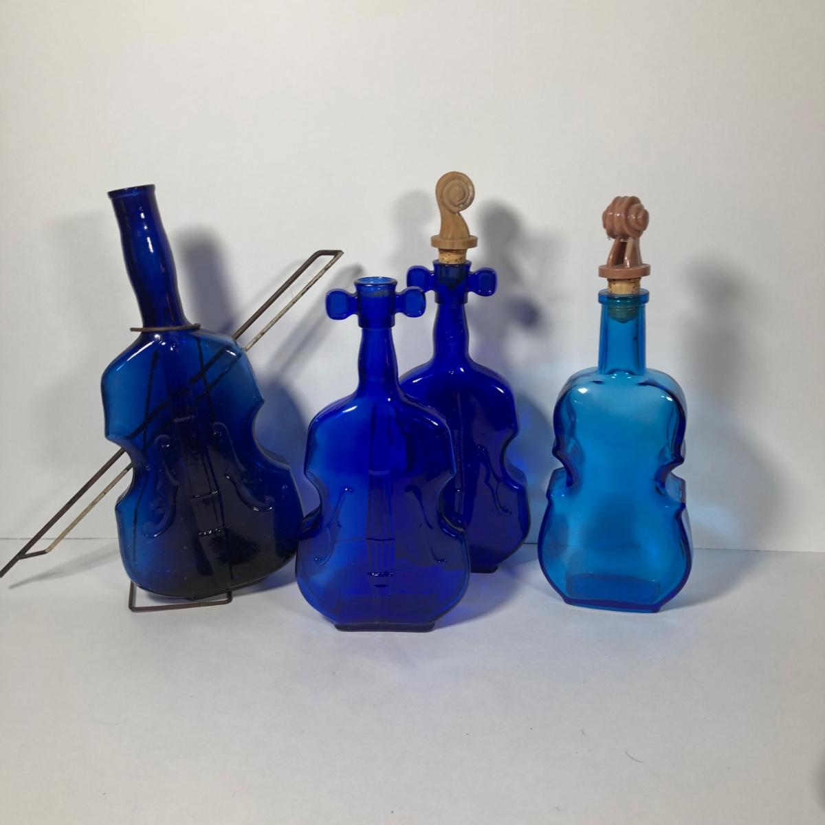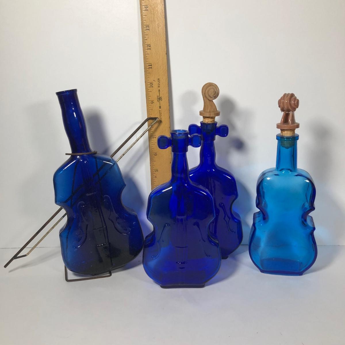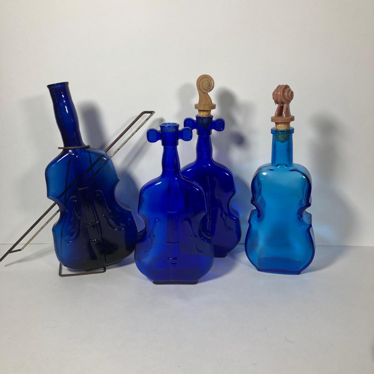 LOT 199F: Vintage Wheaton Glass Violin Bottle & 1940s-50s Cobalt Clevenger Brothers Glass Violin