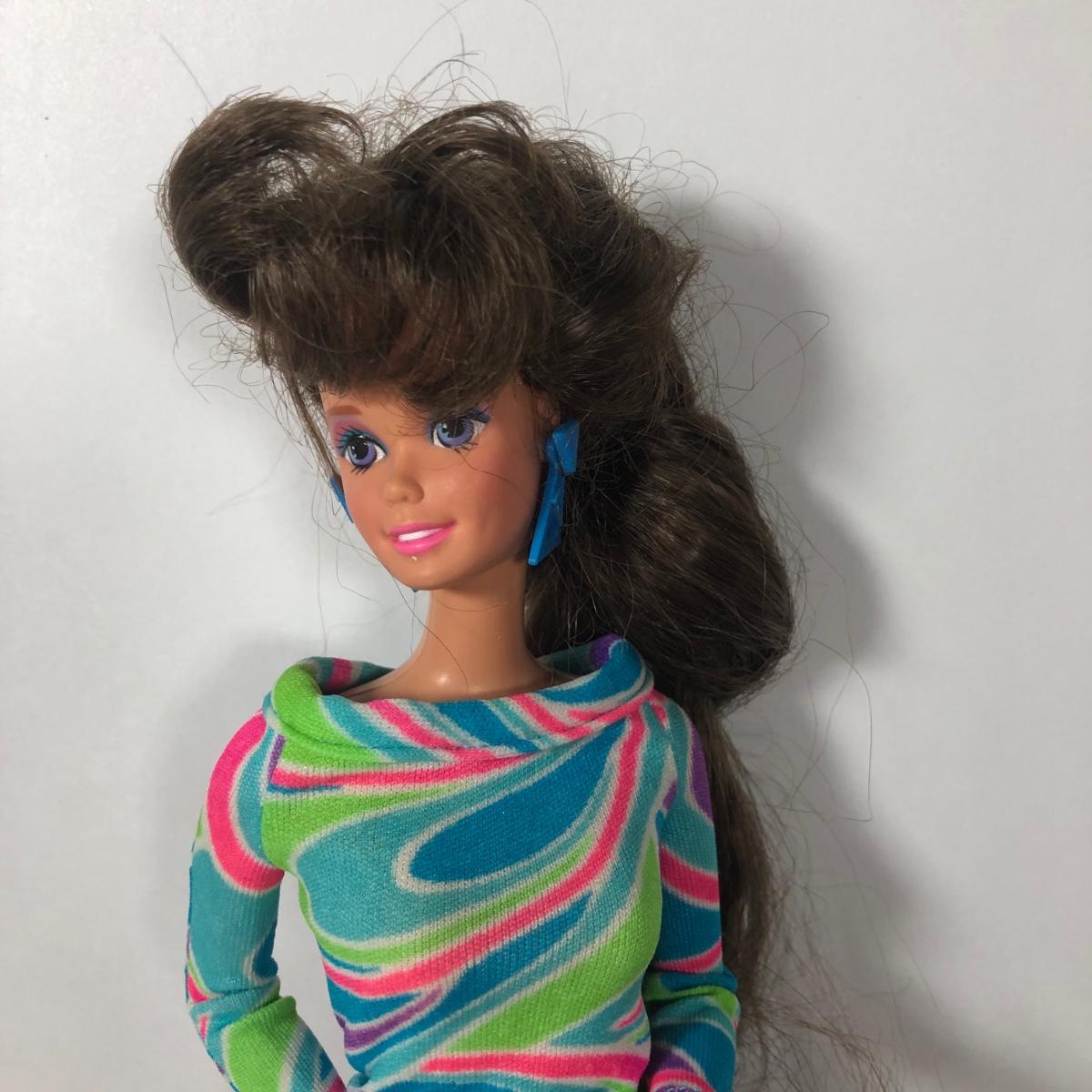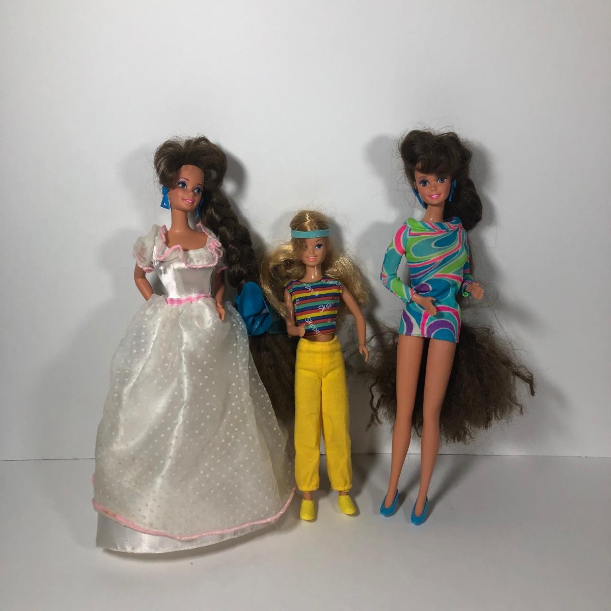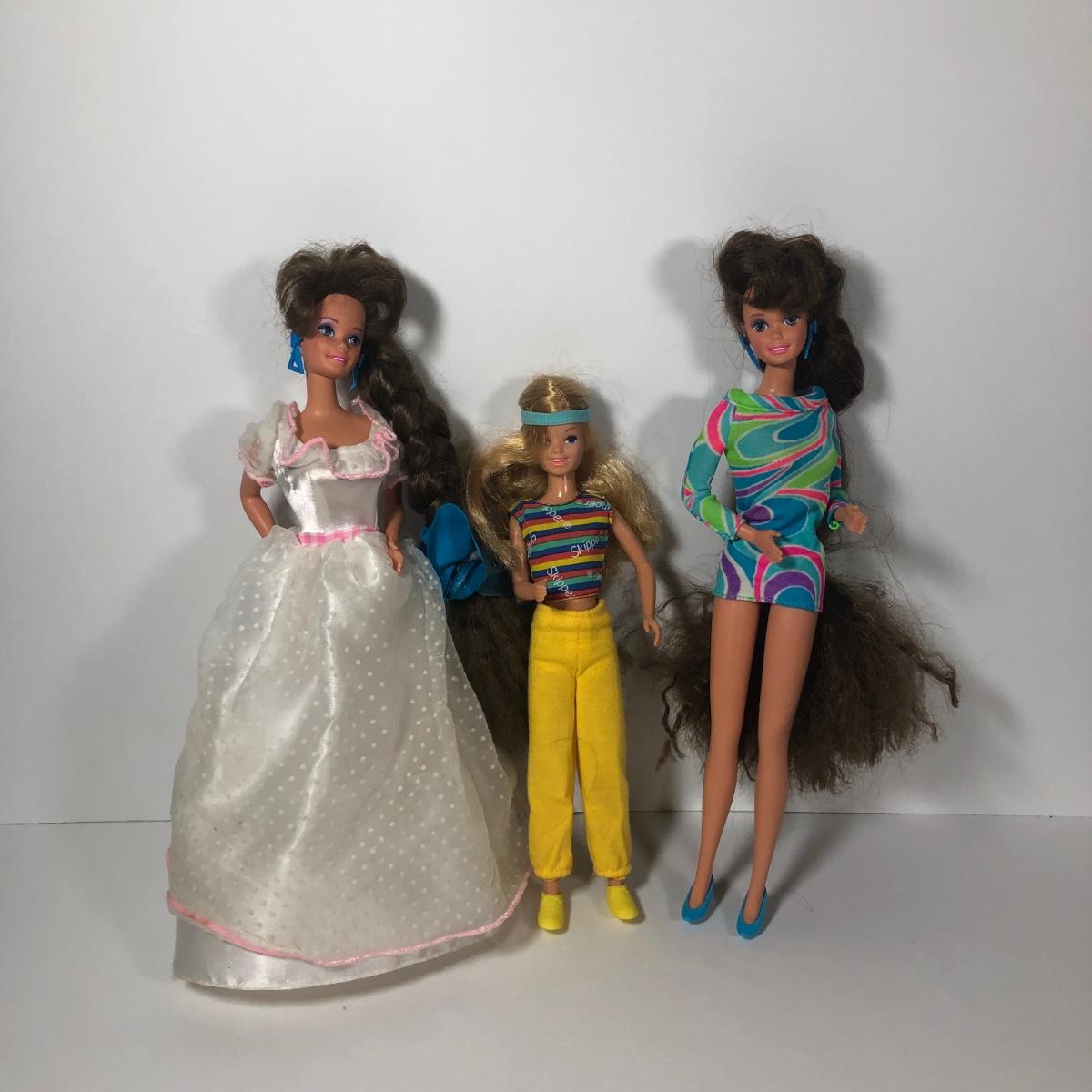 LOT 205K: Two 1990s Totally Hair Teresa/Brunette Barbies (One in Original Dress & One in Country Bride Dress) & Vintage Teen Skipper Doll in 80s Workout Clothes