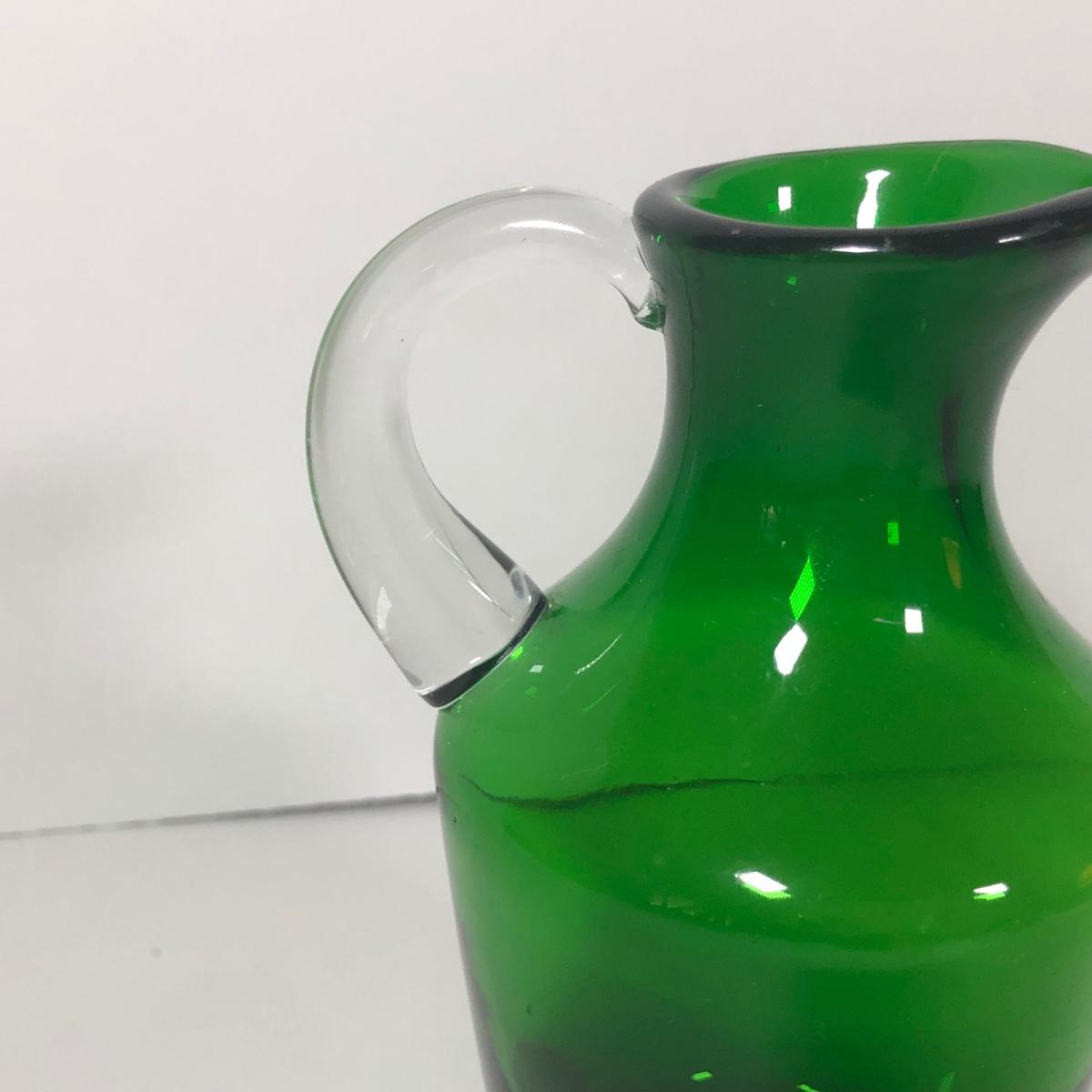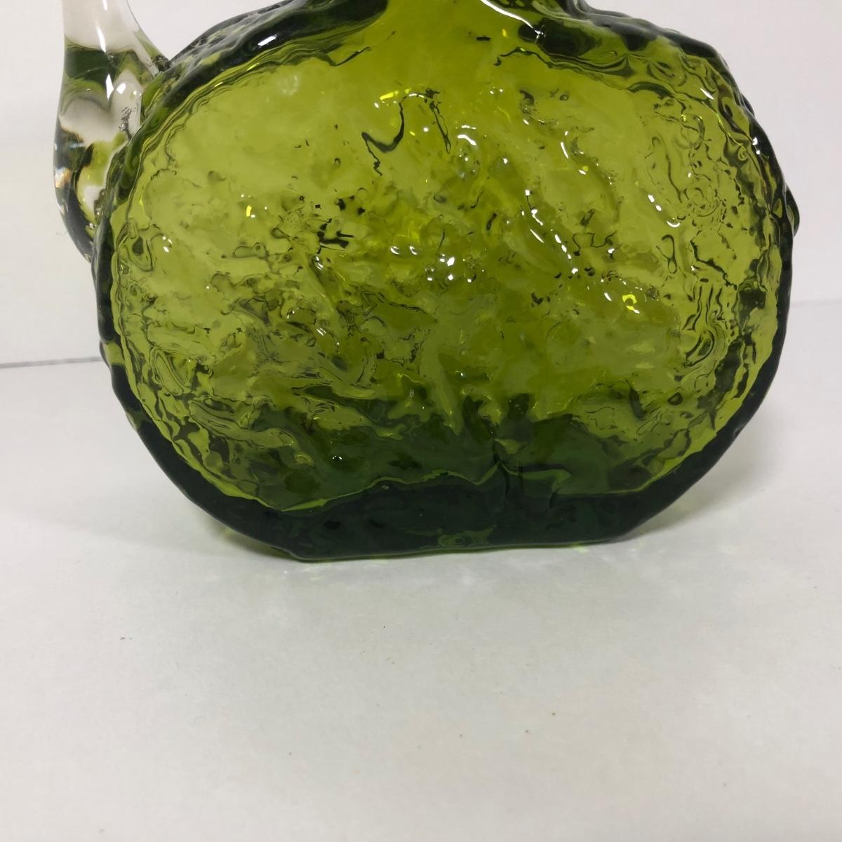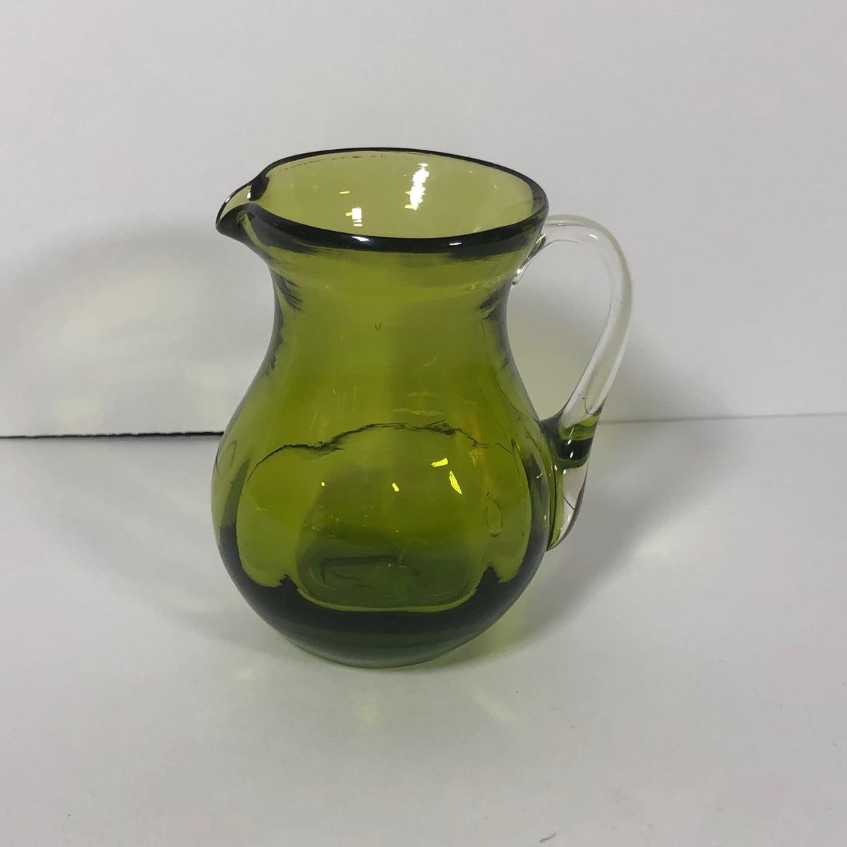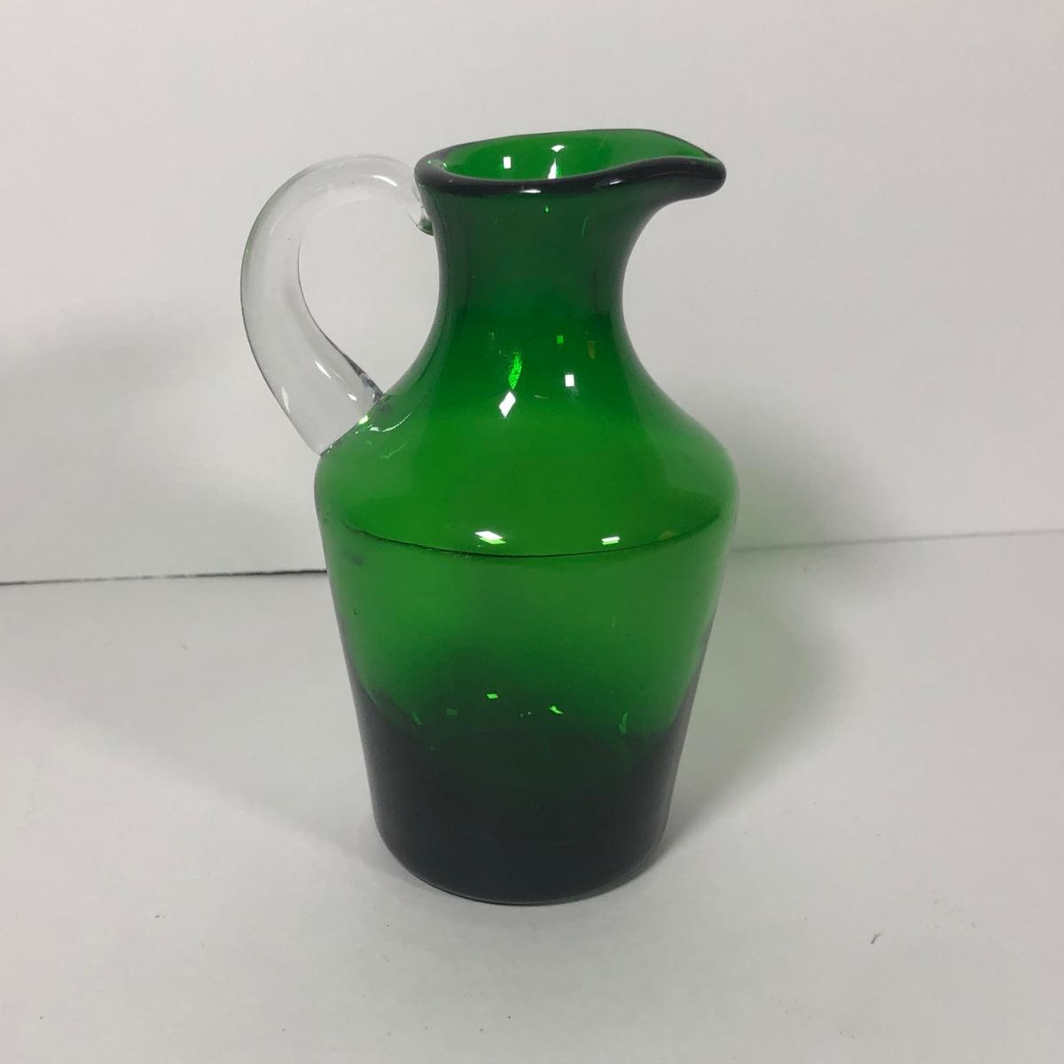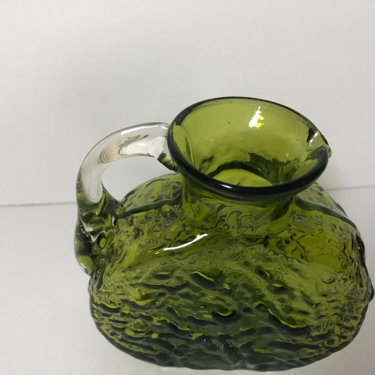 LOT 211K: Fenton Style Colonial Green Thumbprint Hanky Vase, Emerald Depression Glass Ornate Press Cut Pedestal Vase, Rippled Avocado Glass Pitcher, Anchor Hocking Glass Swirl Ruffle Vase & More