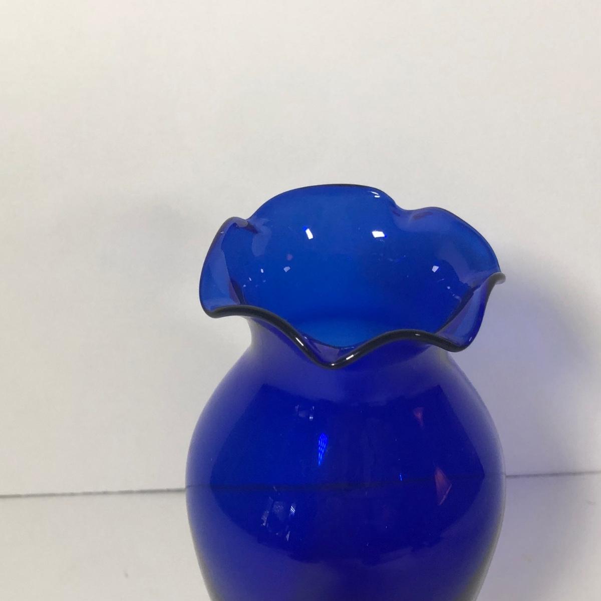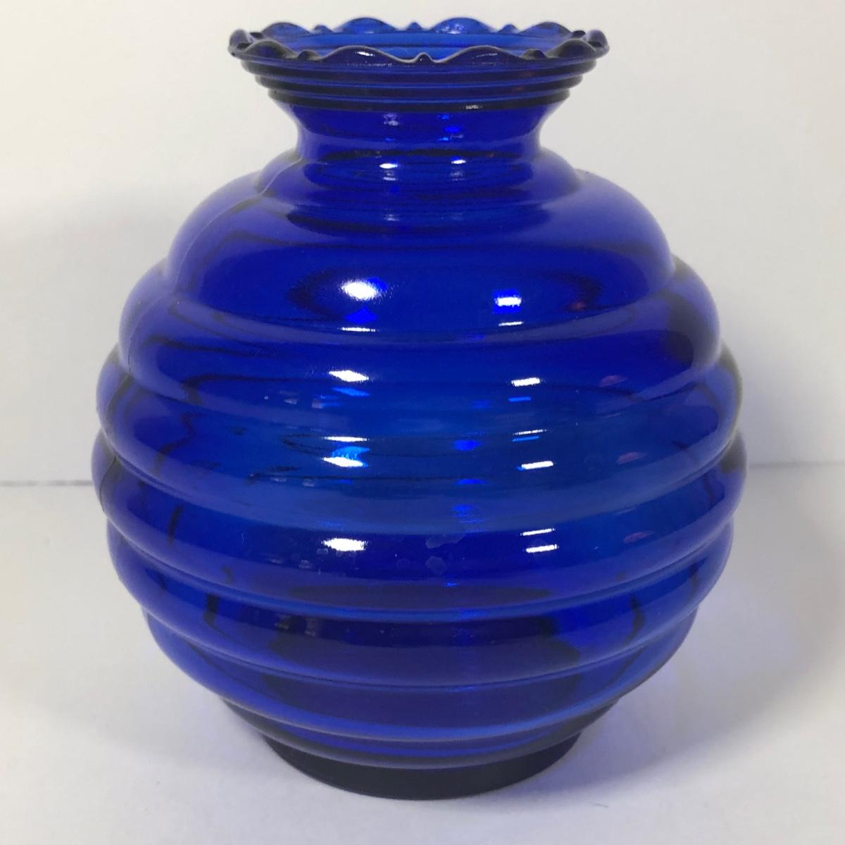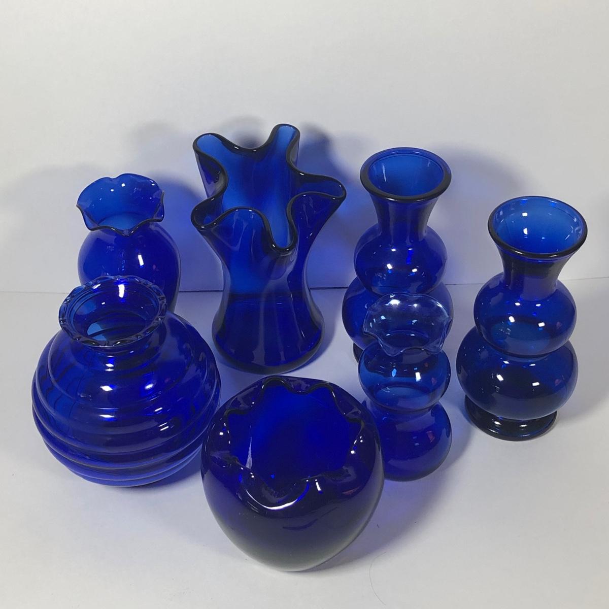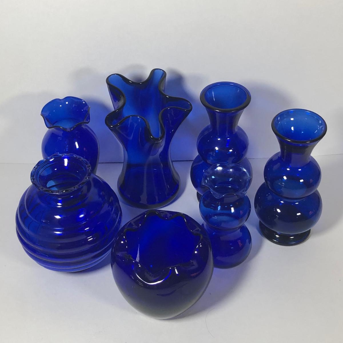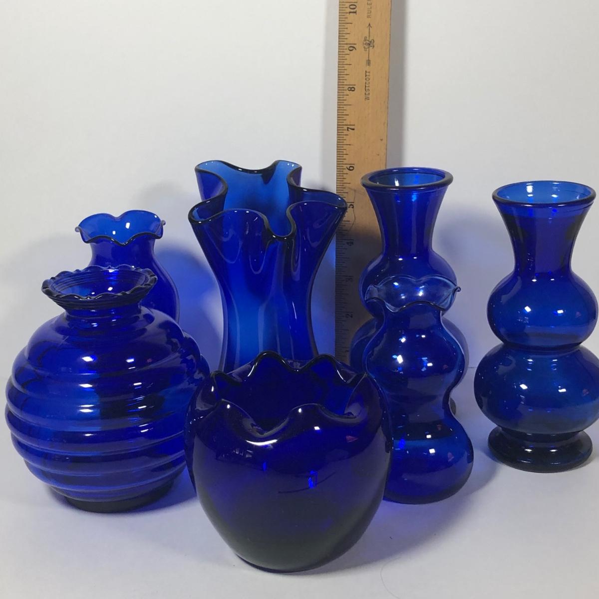 LOT 212K: Vintage Cobalt Blue Glass Vases - Handkerchief Ruffled Edge, Ribbed Beehive, Scalloped, Bubble