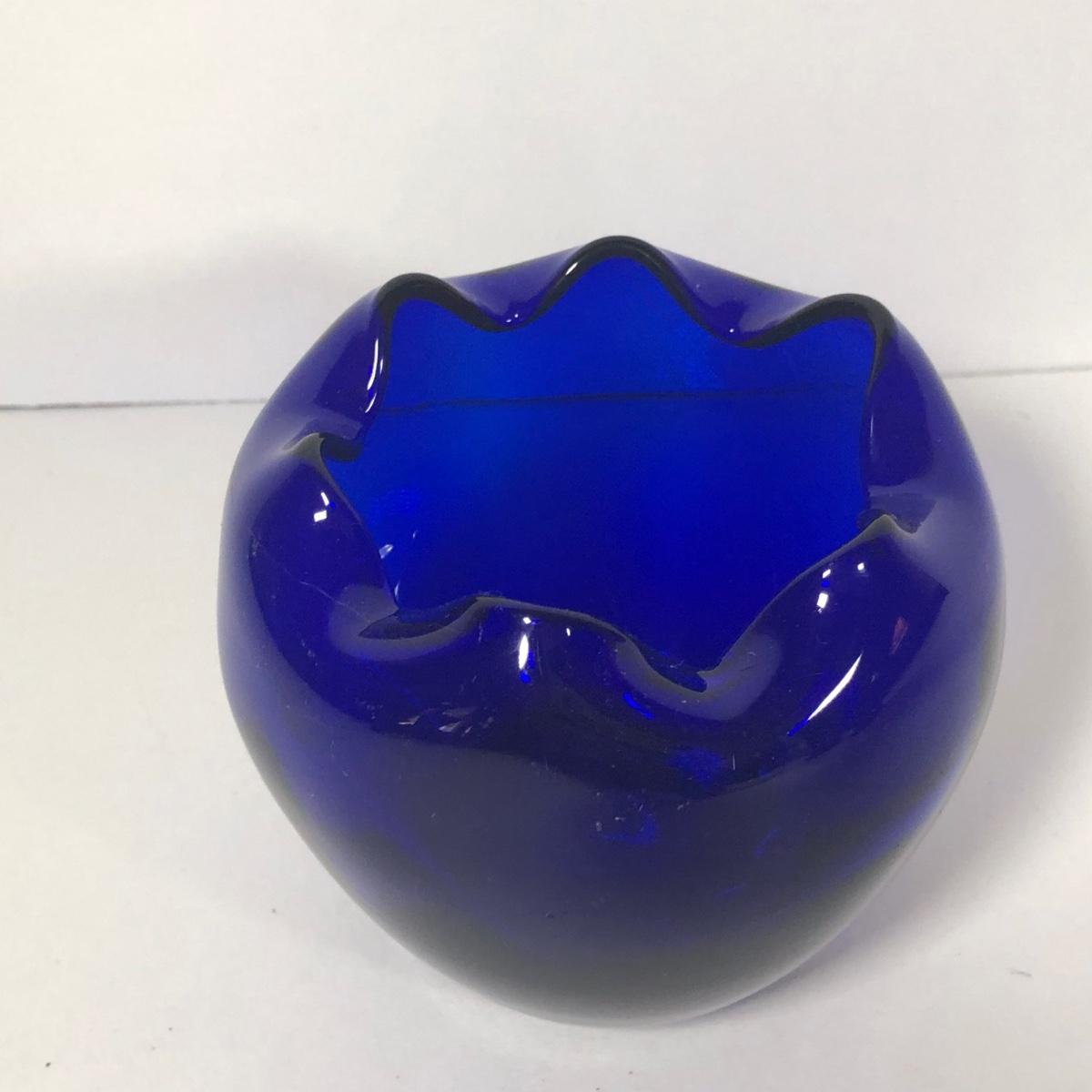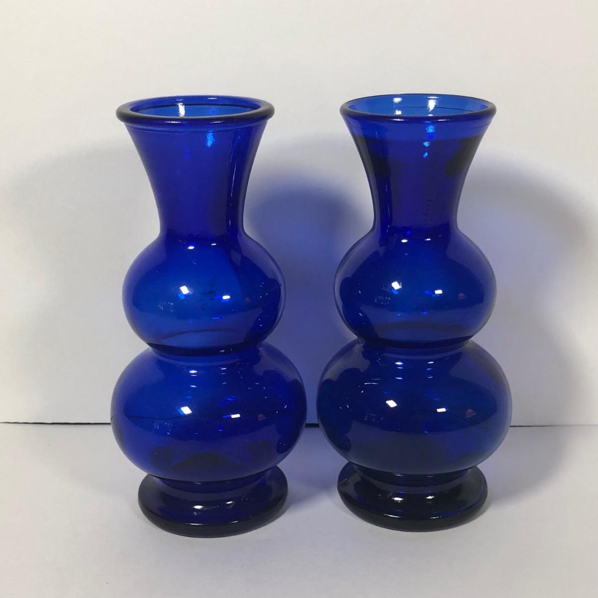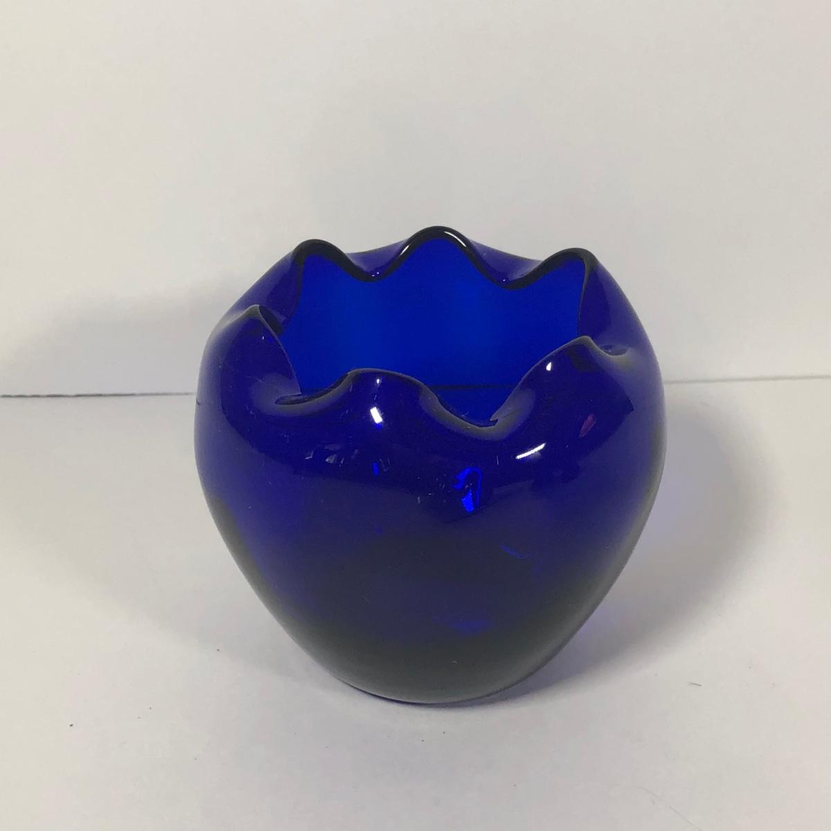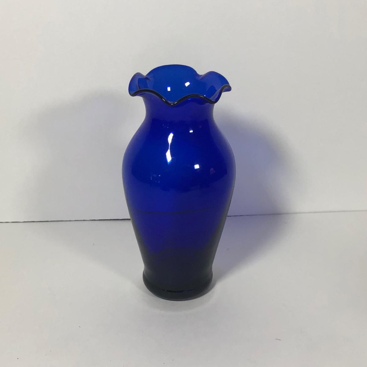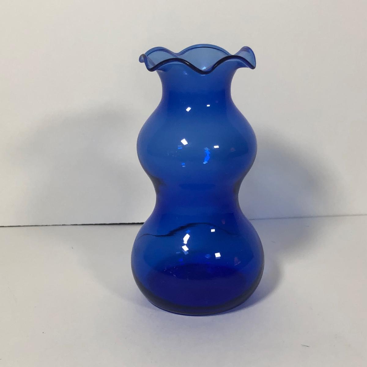 LOT 212K: Vintage Cobalt Blue Glass Vases - Handkerchief Ruffled Edge, Ribbed Beehive, Scalloped, Bubble